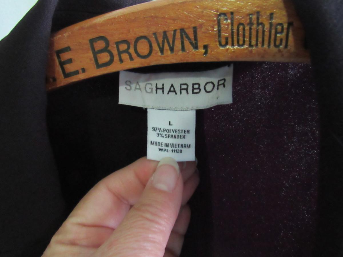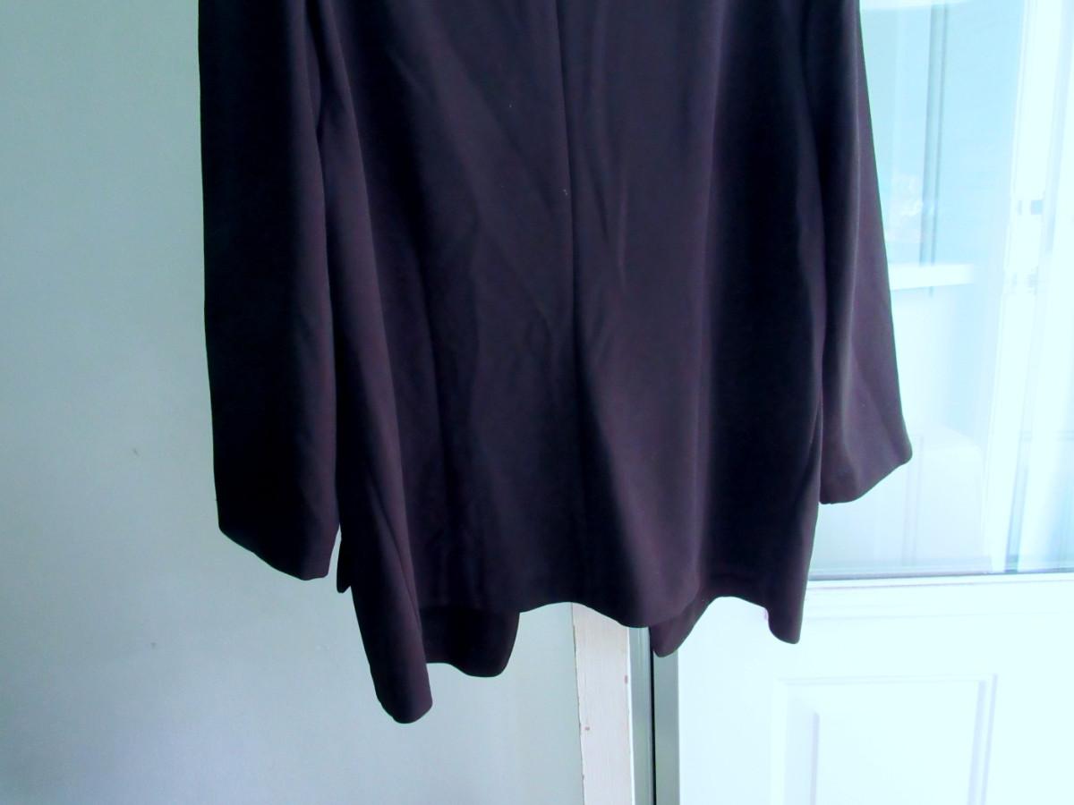 Nice shape, I don't see any issues. One button front, long v-neck notched collar. Poly/spandex. Shipping is available at actual shipping cost plus $5.00 handling fee per box for supplies/labor. See our terms for details. All sales are final. Condition notes may not be all inclusive, we may miss some issues as most vintage items are not in mint condition and have some degree of wear, paint loss, etc, but we always try to note obvious damage.
