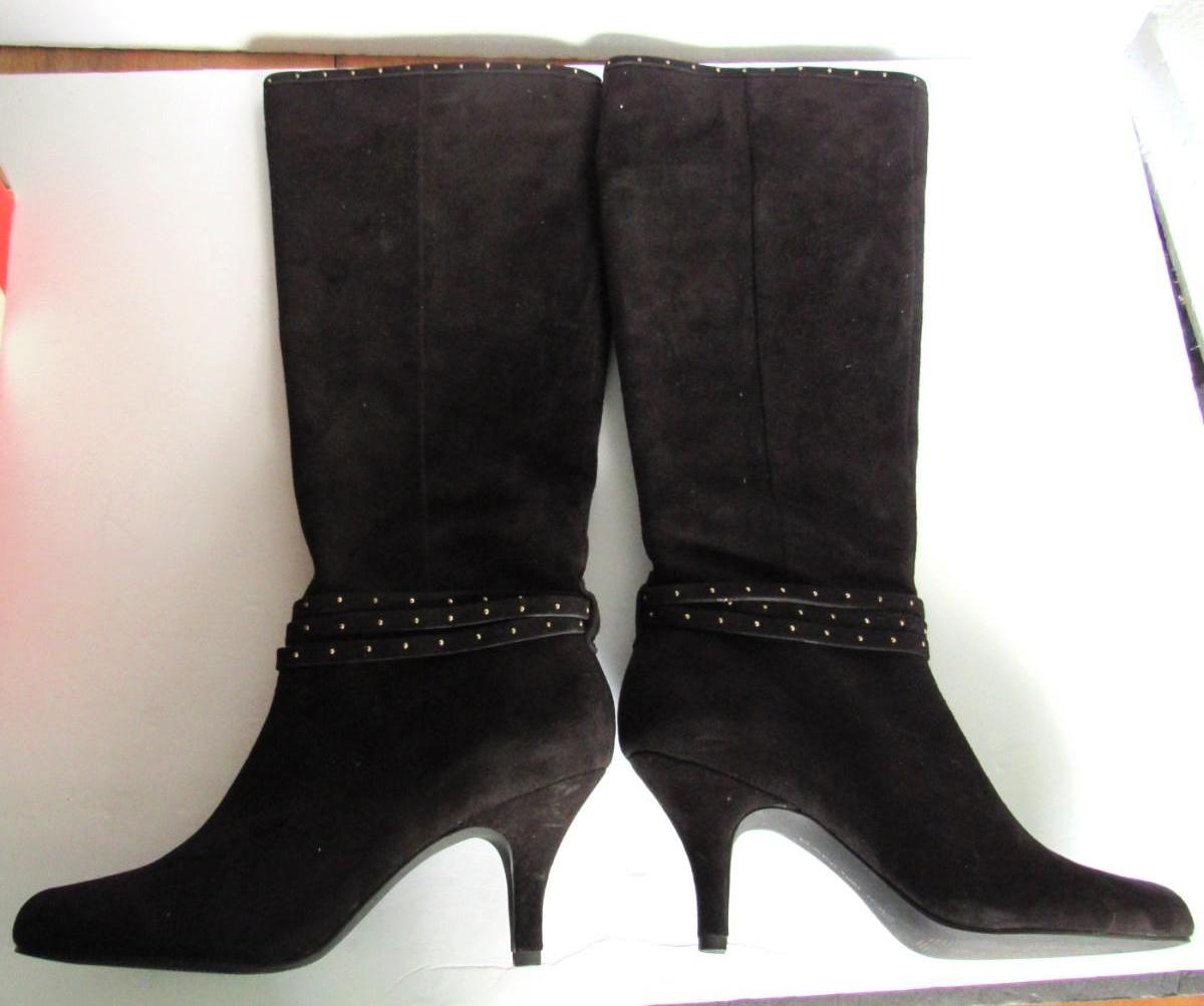 Women's Black Suede High Heeled Boots, Bandolino, 9M