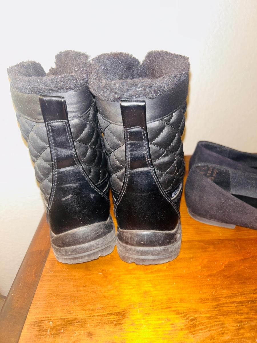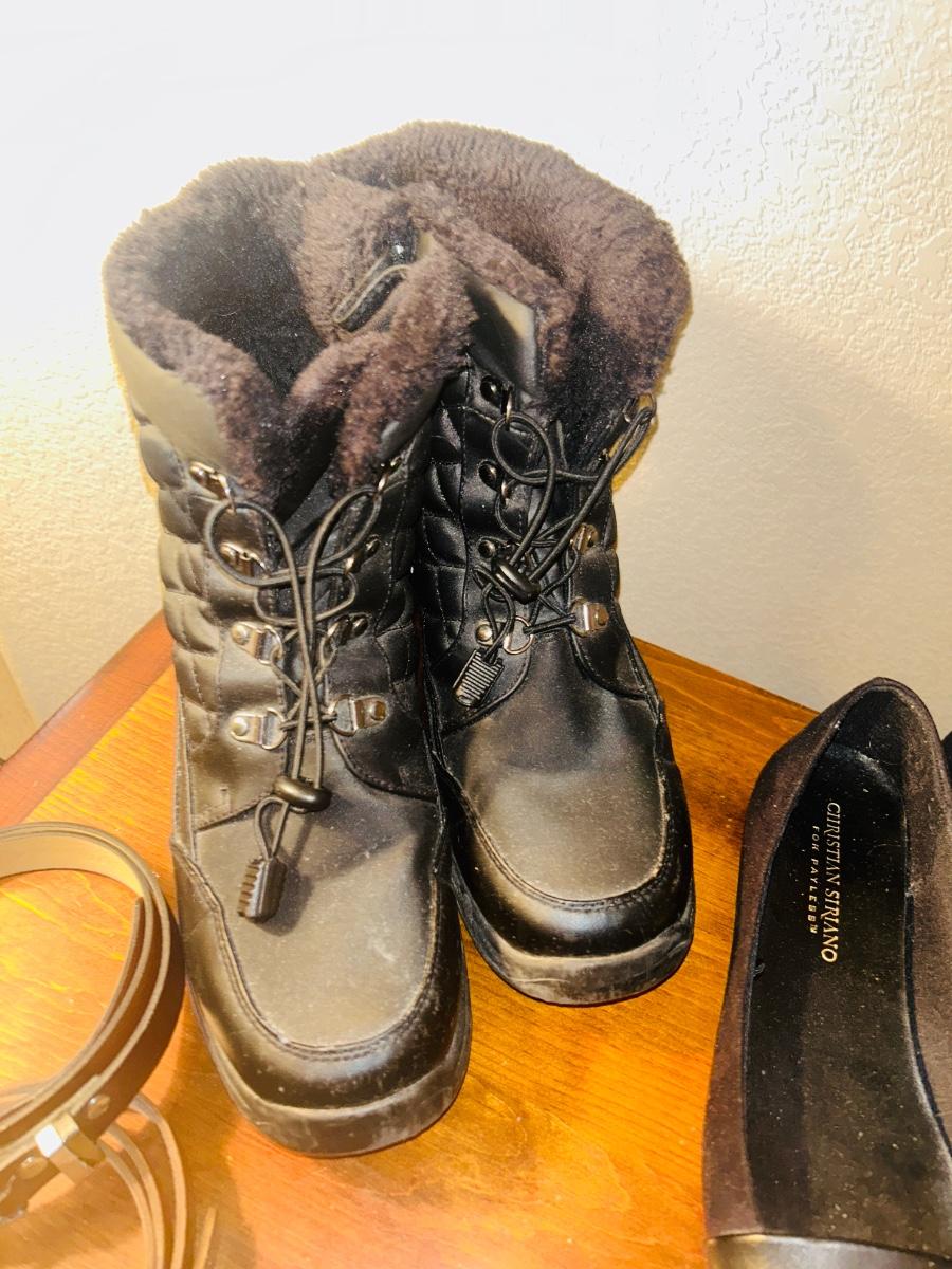 WOMENS BLACK W/P By TOTES SNOW BOOTS, SLIP ON SHOES AND BELTS