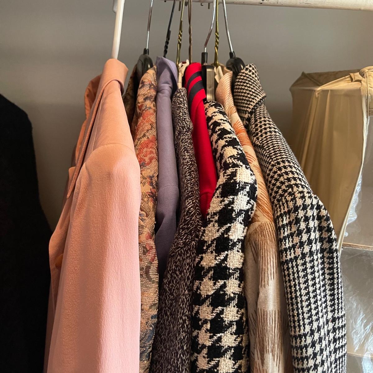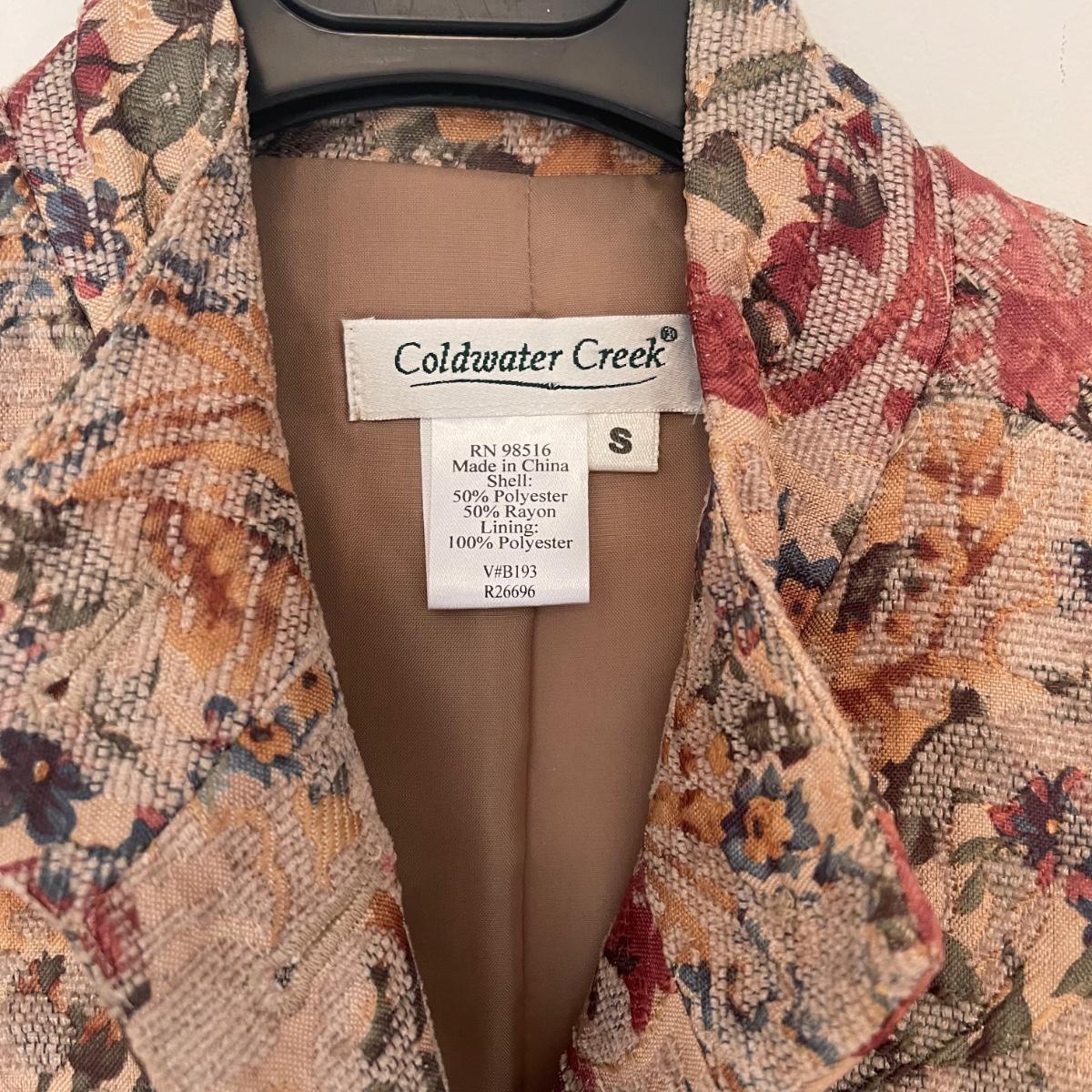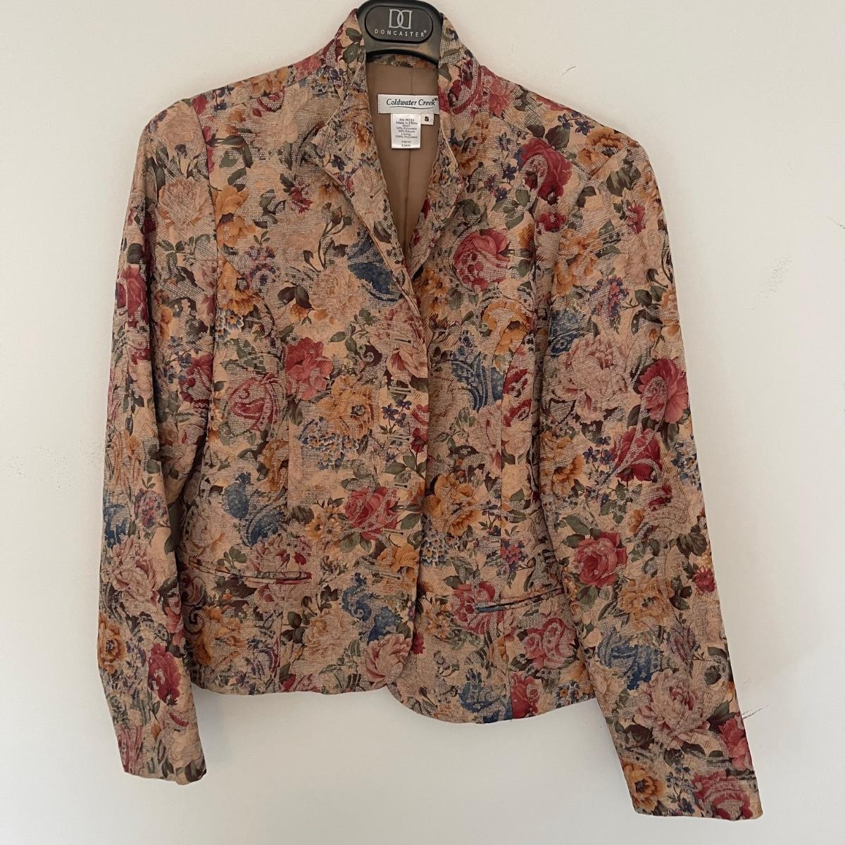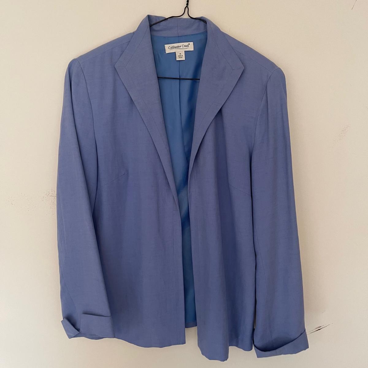 Eight women’s small and medium blazers. There are three by Cold Water Creek, one by Chaus, another by Liz Claiborne, one Jessica Howard, one Don Castile, and the last by Tanner.