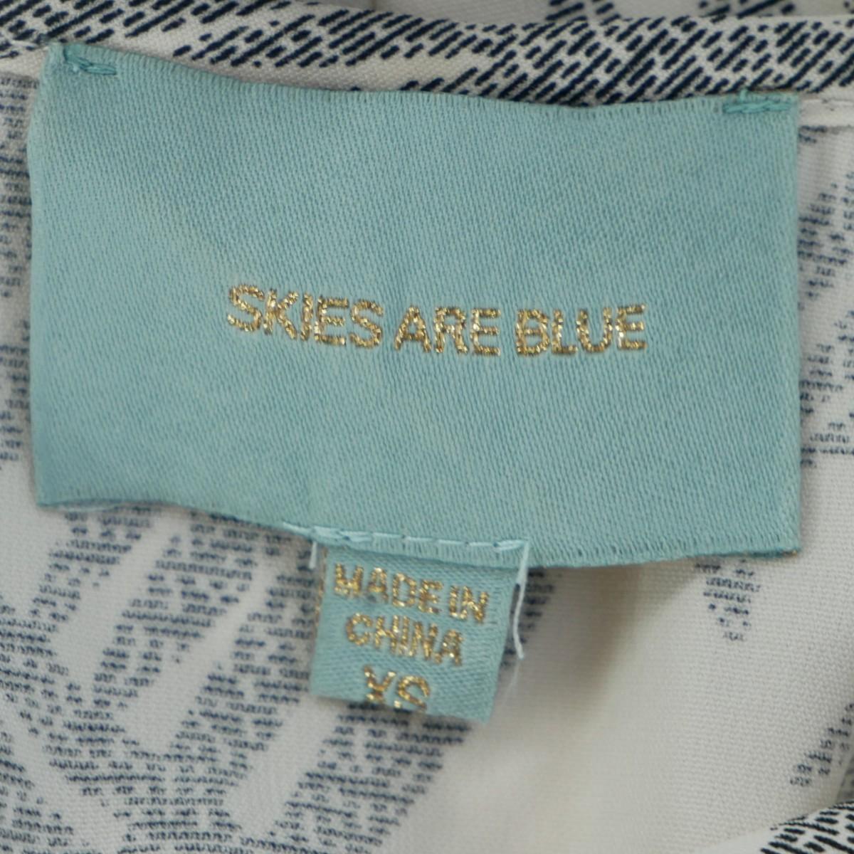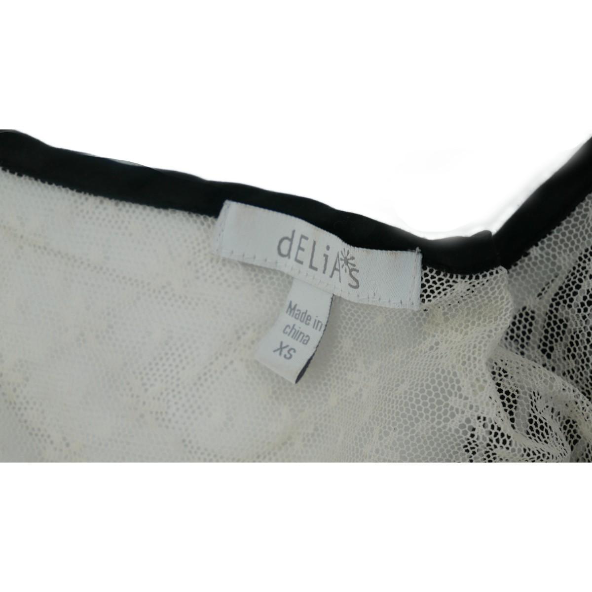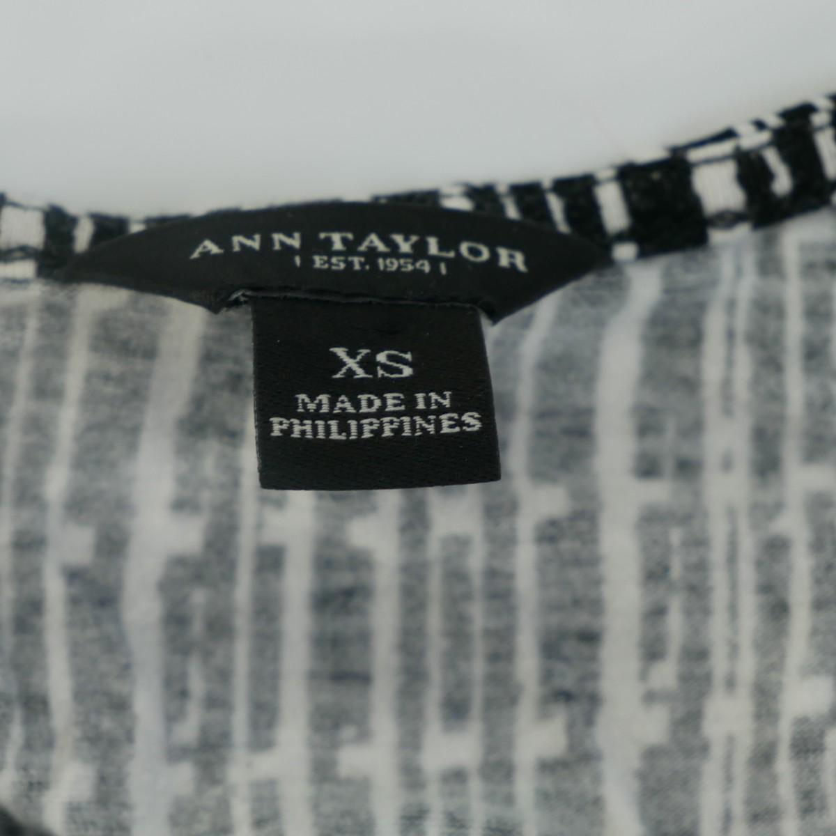 Three women's blouses in size XS. Long sleeve frilled leaf design blouse by Skies are Blue, black and white blouse by Ann Taylor, Sheer blouse by DeLiA*s.