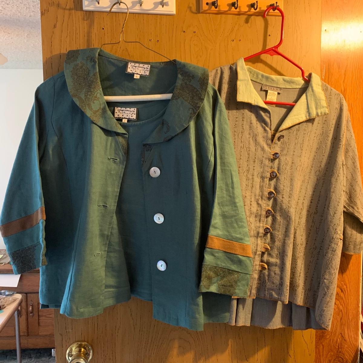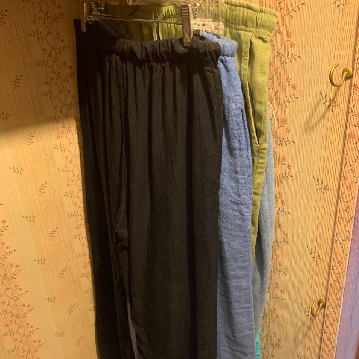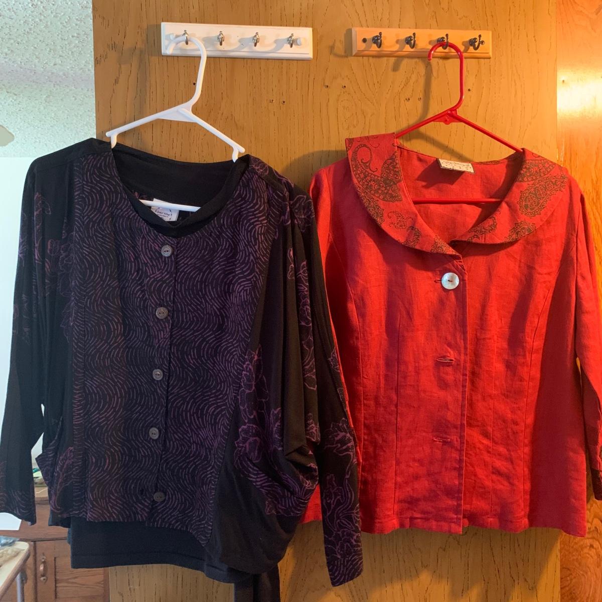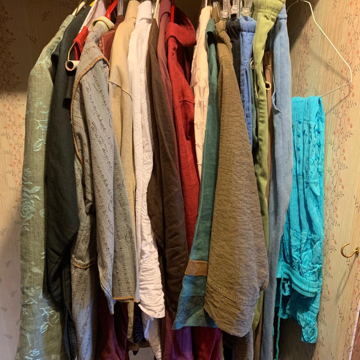 Women’s shirts, pants, sets, and a skirt. Many bohemian style internationally made artsy items, as well as casual linen pieces. Approximately 30 items are included. Brands include: Cottage Clothing Inc., Tribe, Global Village, Eucalyptus, Focus, and more. All items appear to be in very good condition. Shipping available.