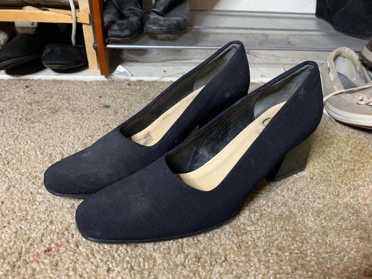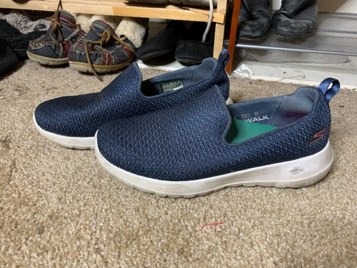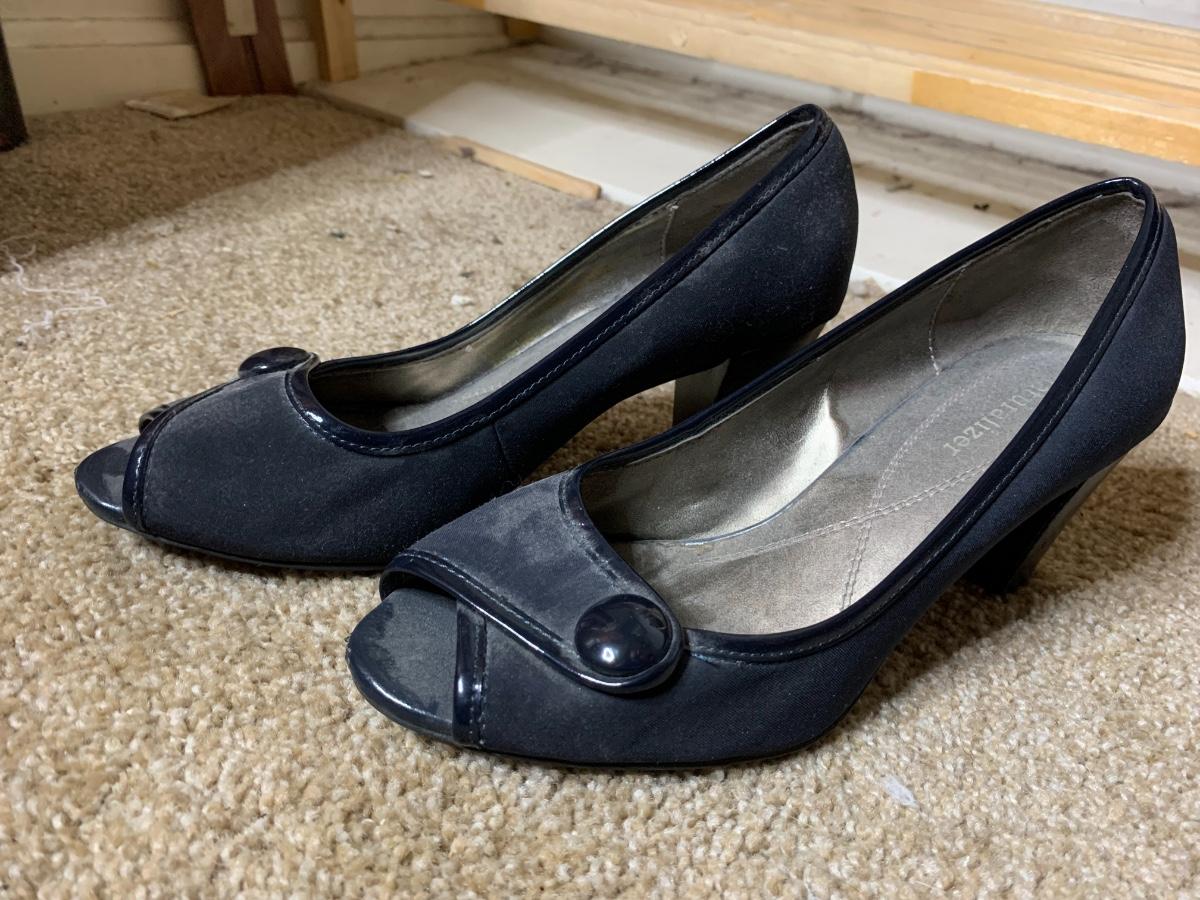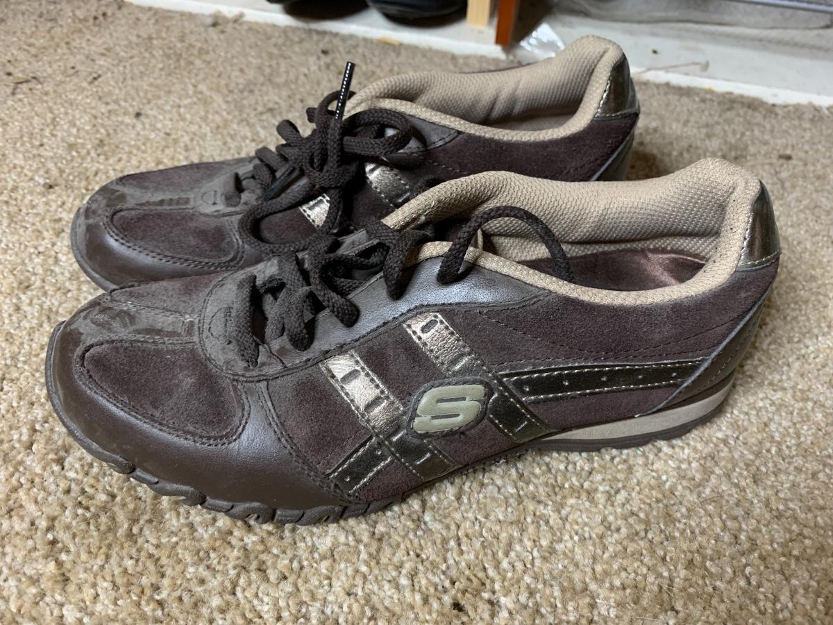 Size 6.5 to 7. Assorted shoes and boots brand names including Calvin Klein, Bobs and Sketchers in lightly used to very used condition. *Shoe racks not included*