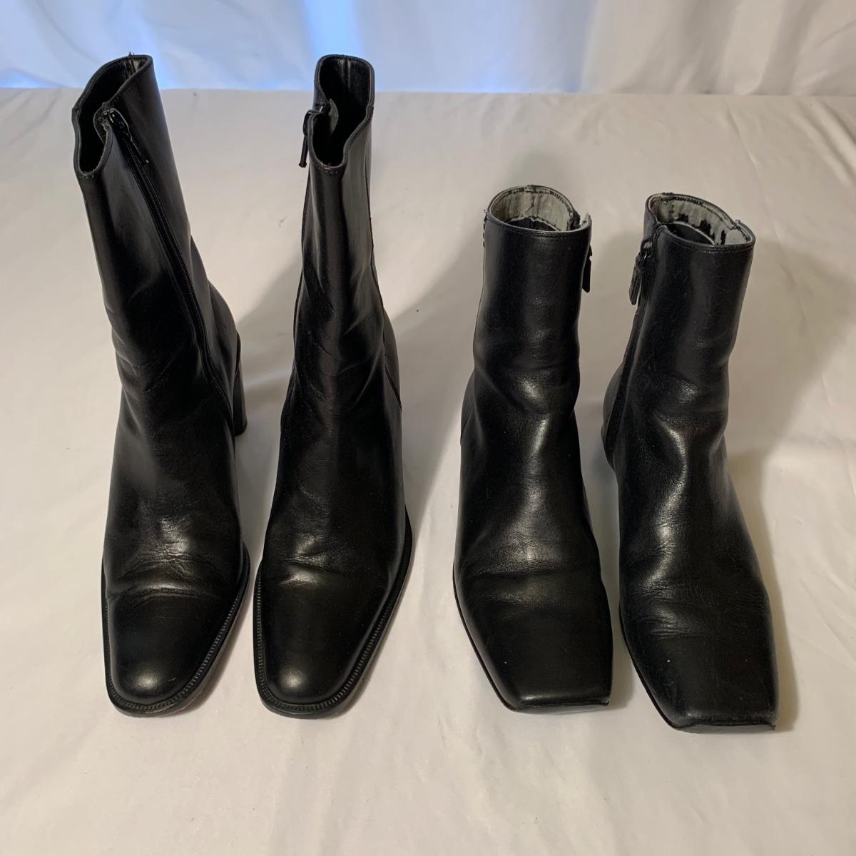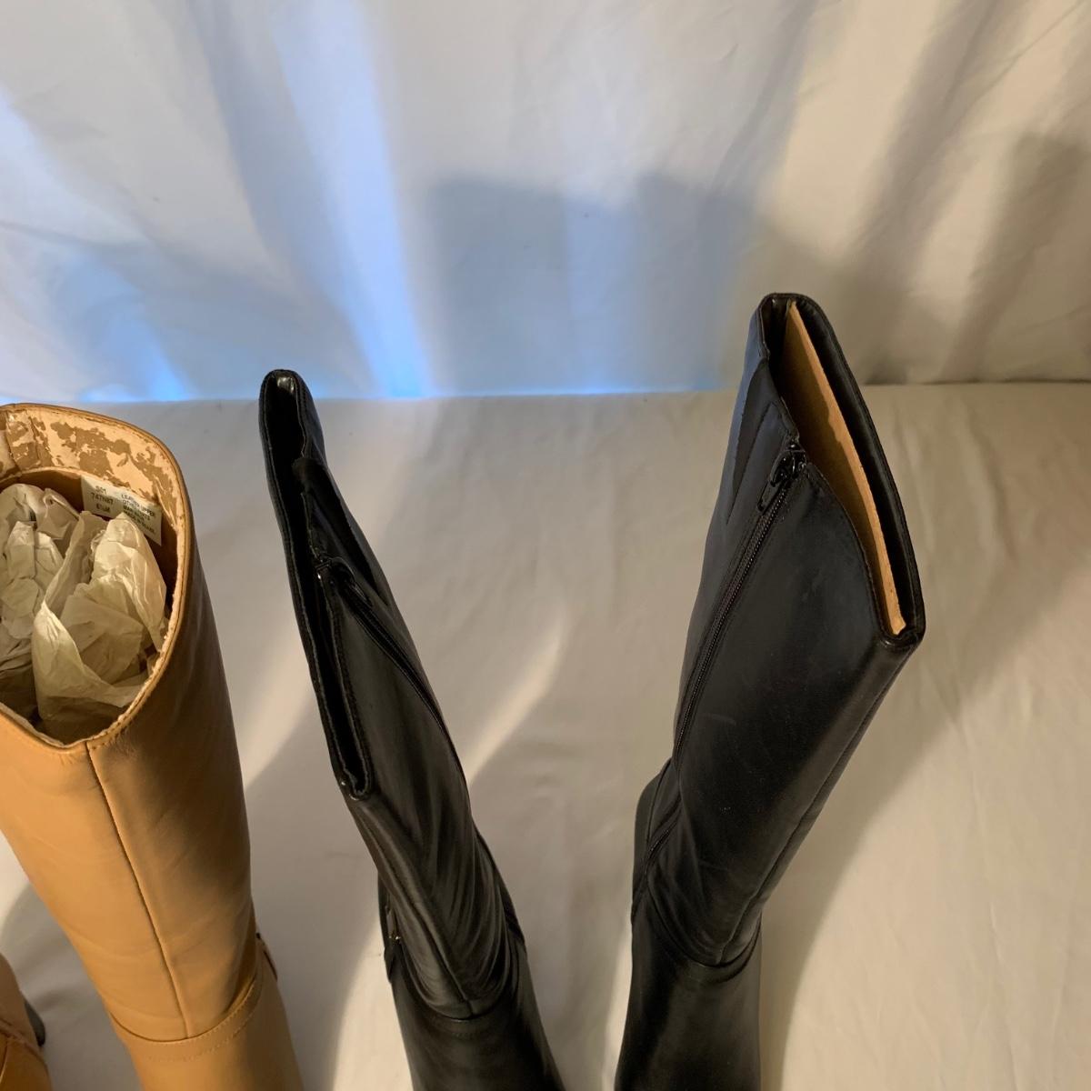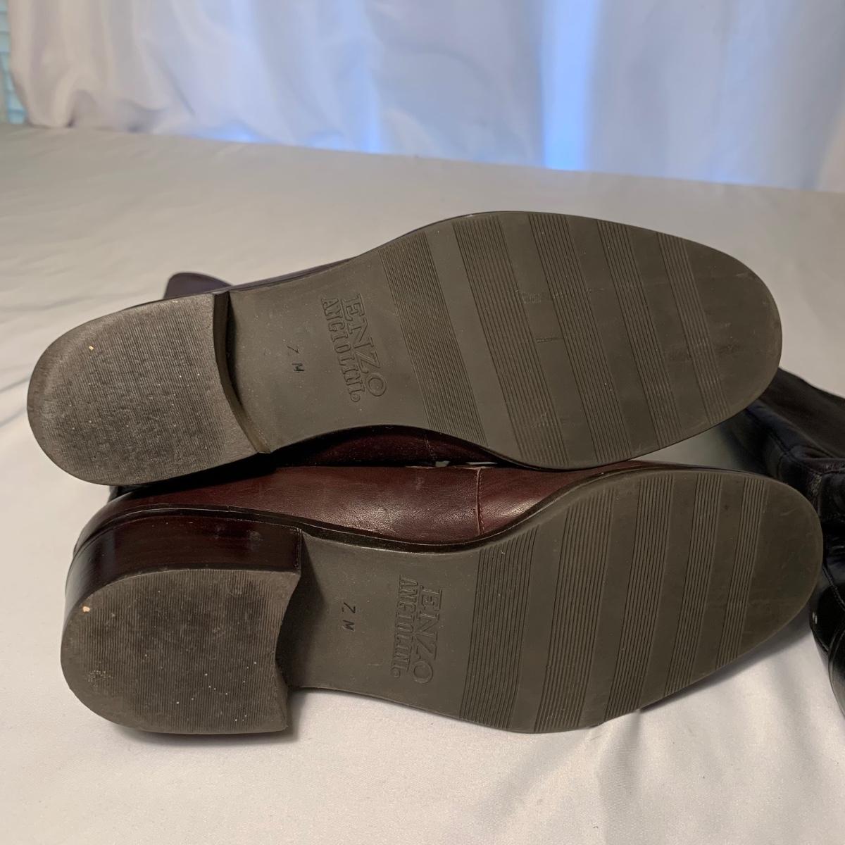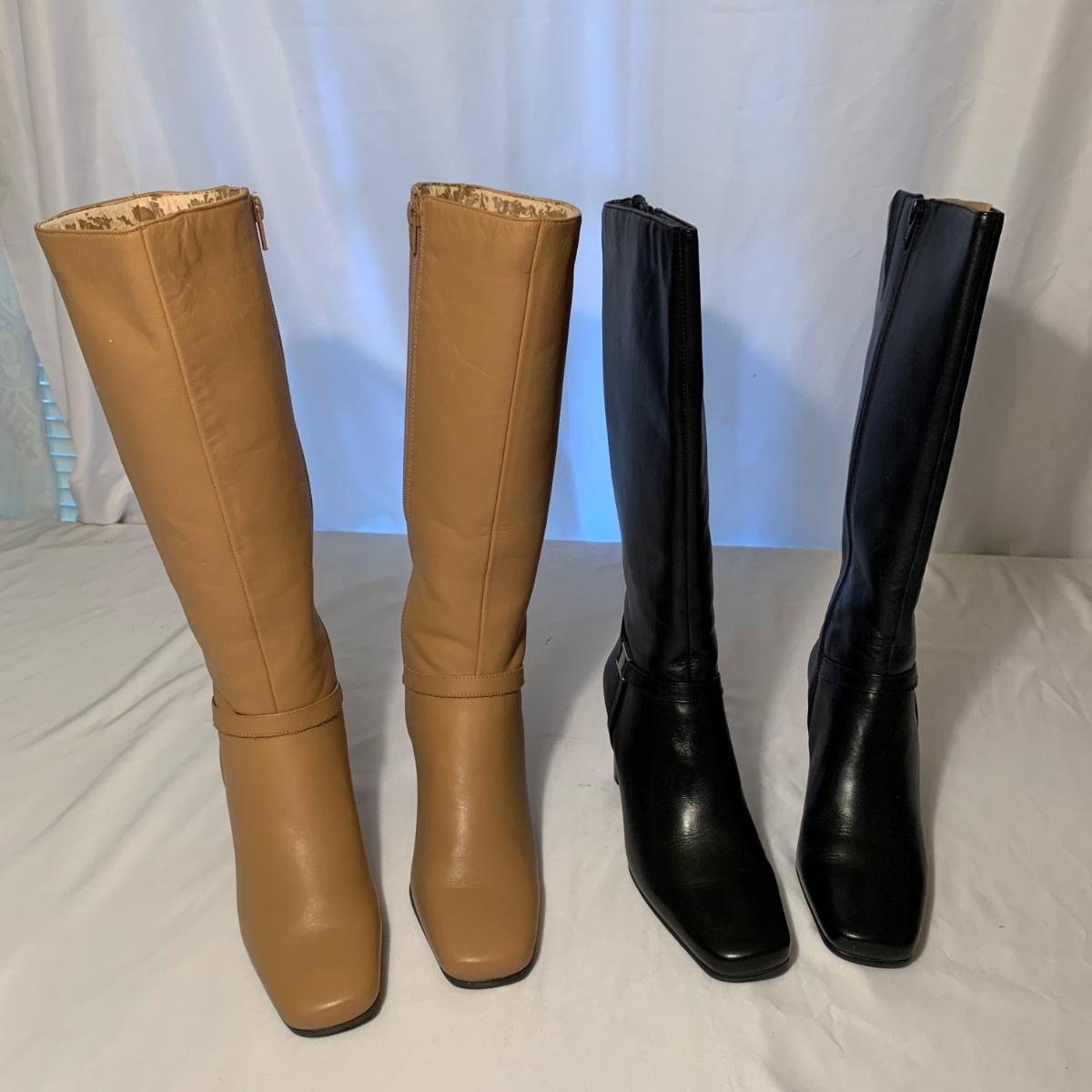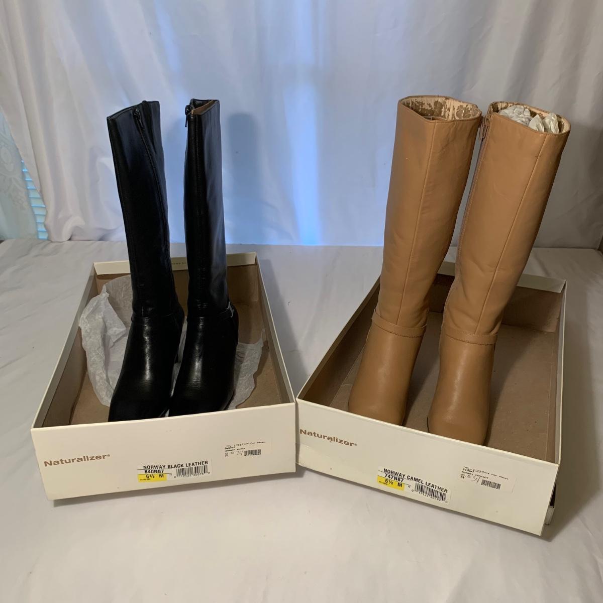 Nine pairs of women’s boots, all size 6.5-7. All boots appear to be leather. Some are in their original boxes. They have been stored and kept in very good condition, with most looking new or very gently used. Six pairs are black, one pair is dark brown, one pair is camel, and one pair is white. Brands included are Enzo Angolini, Bloomingdale’s, Nine West, Ralph Lauren, Banana Republic, Reaction for J. Jill, and Naturalizer. Local pickup only.