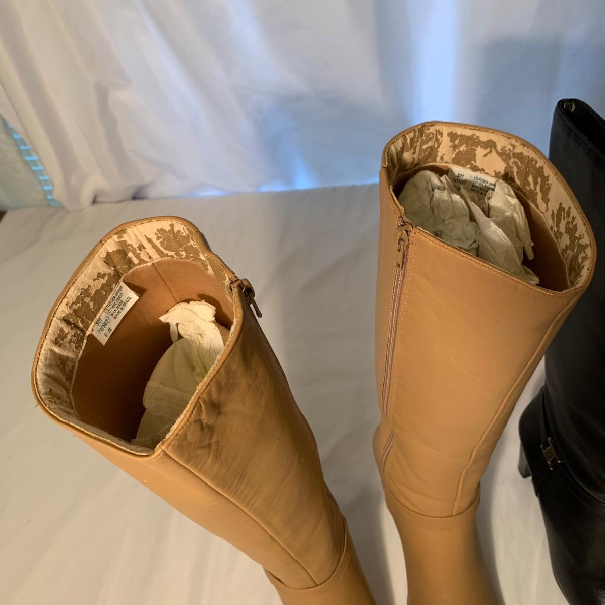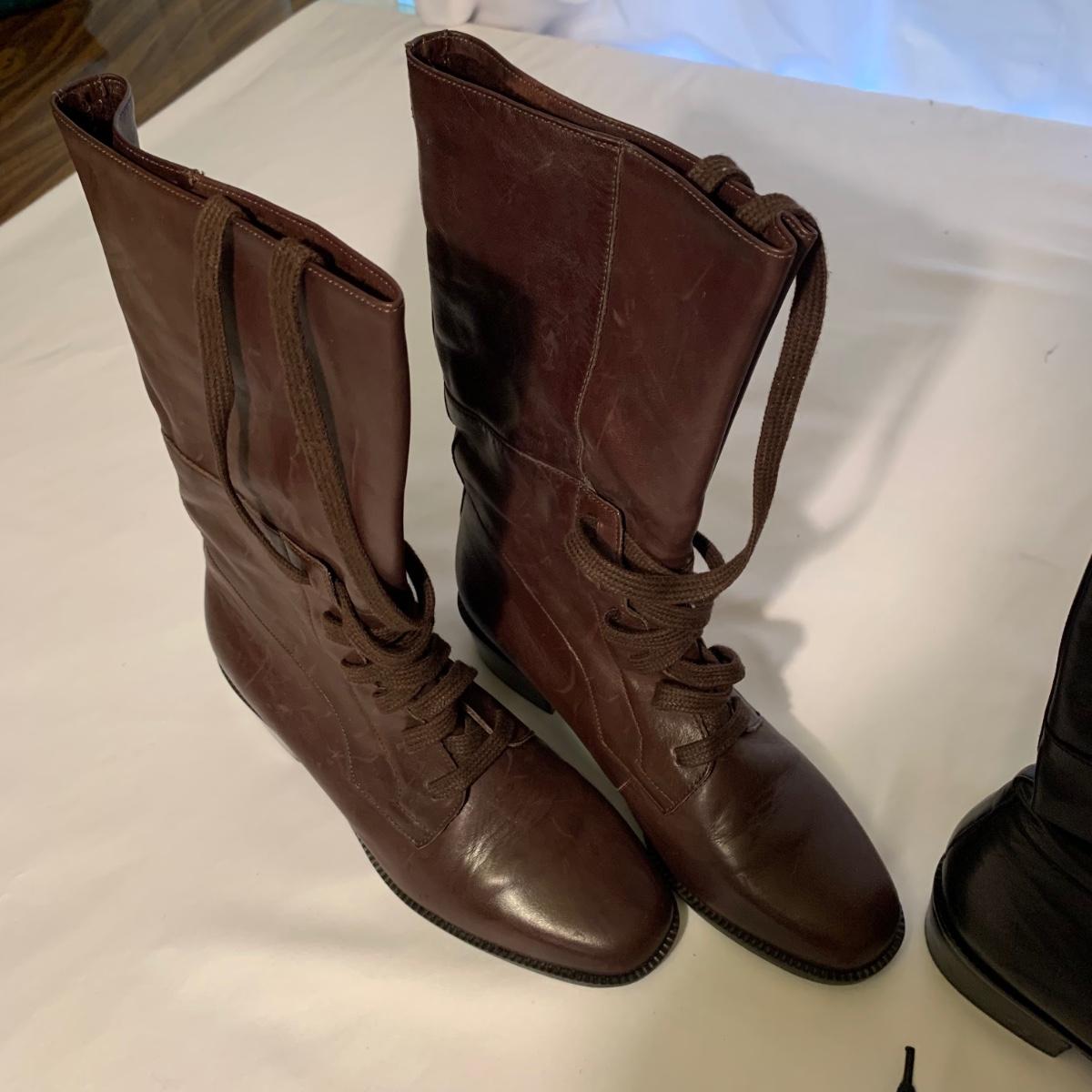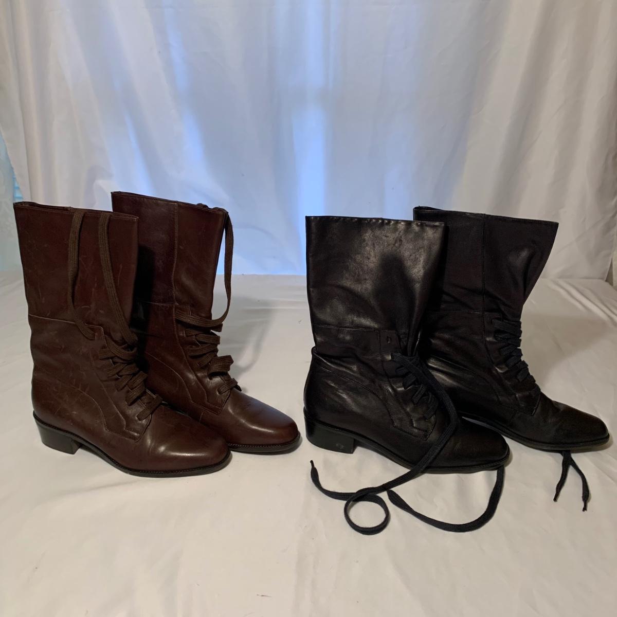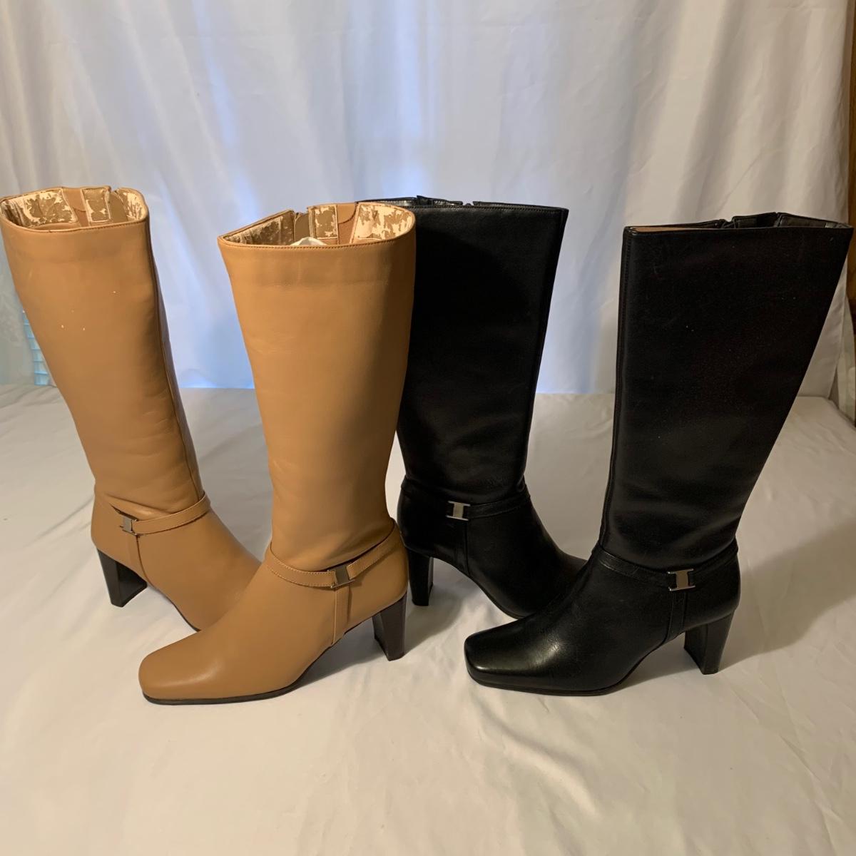 Nine pairs of women’s boots, all size 6.5-7. All boots appear to be leather. Some are in their original boxes. They have been stored and kept in very good condition, with most looking new or very gently used. Six pairs are black, one pair is dark brown, one pair is camel, and one pair is white. Brands included are Enzo Angolini, Bloomingdale’s, Nine West, Ralph Lauren, Banana Republic, Reaction for J. Jill, and Naturalizer. Local pickup only.