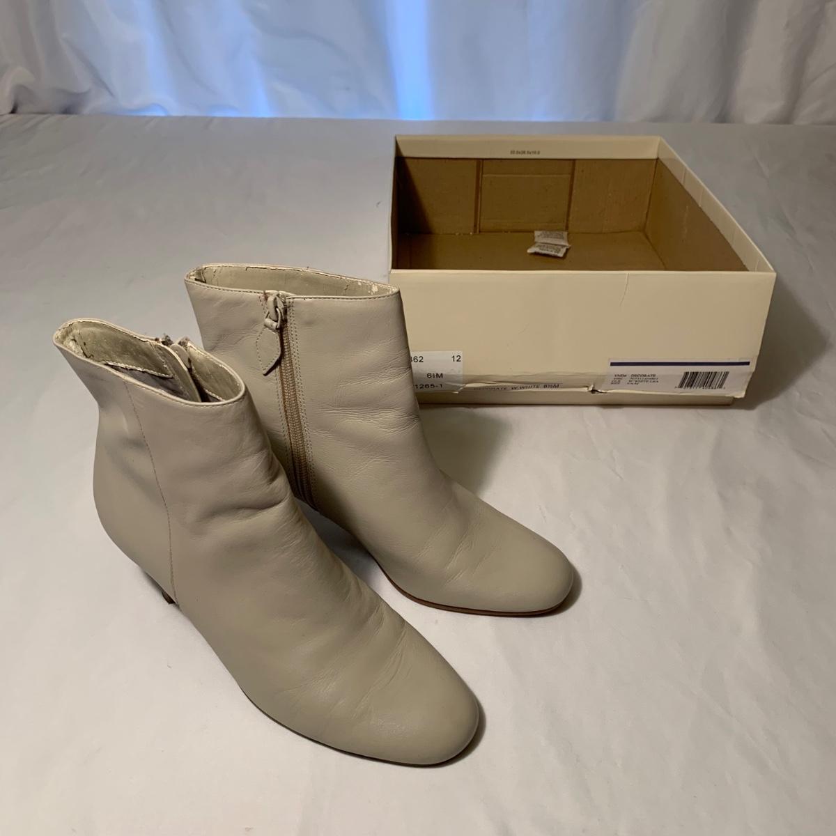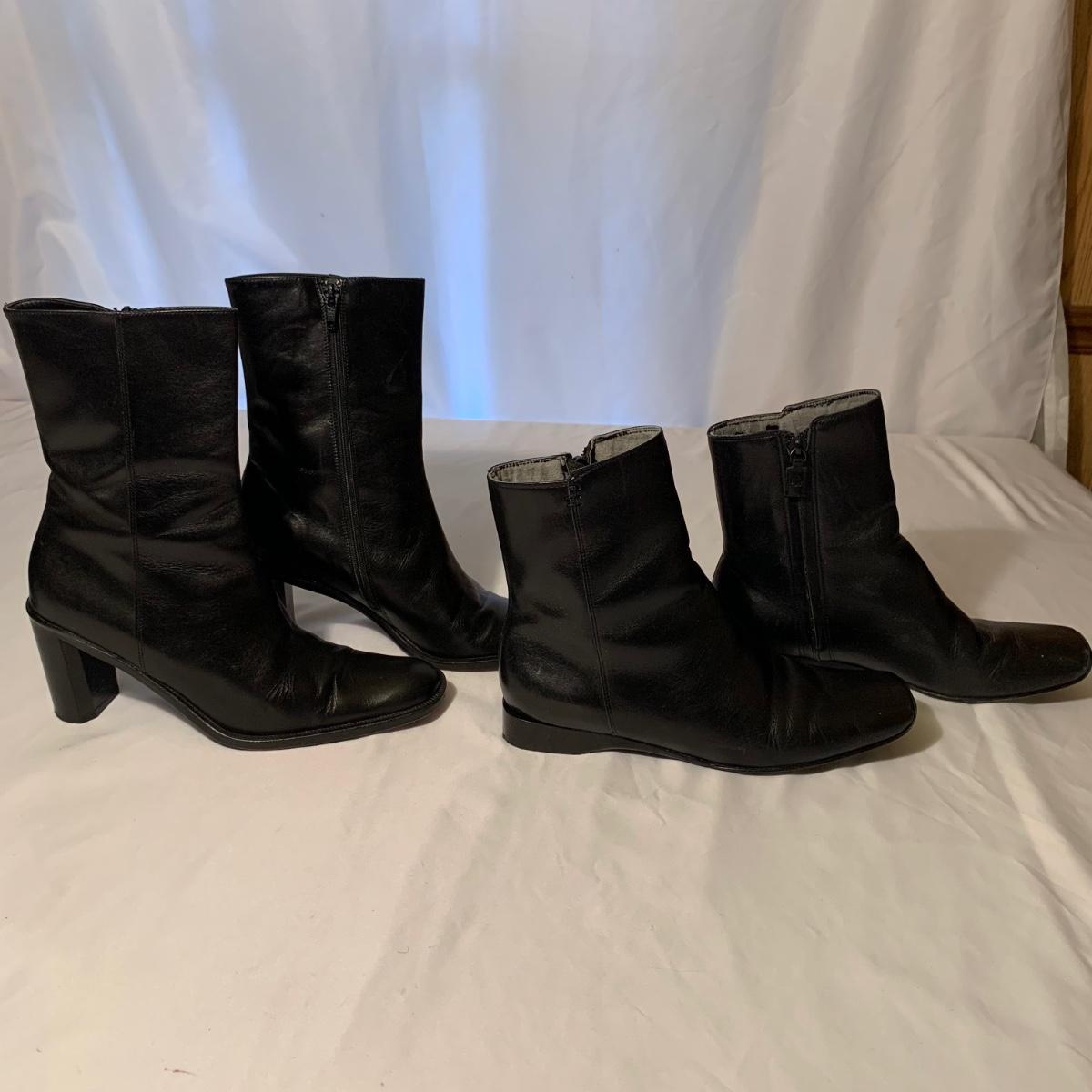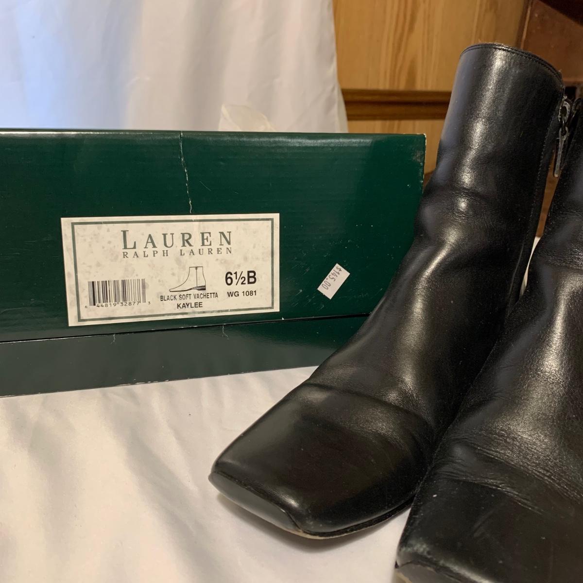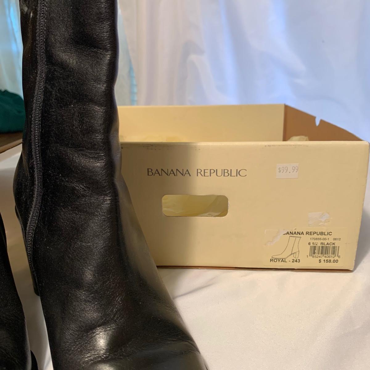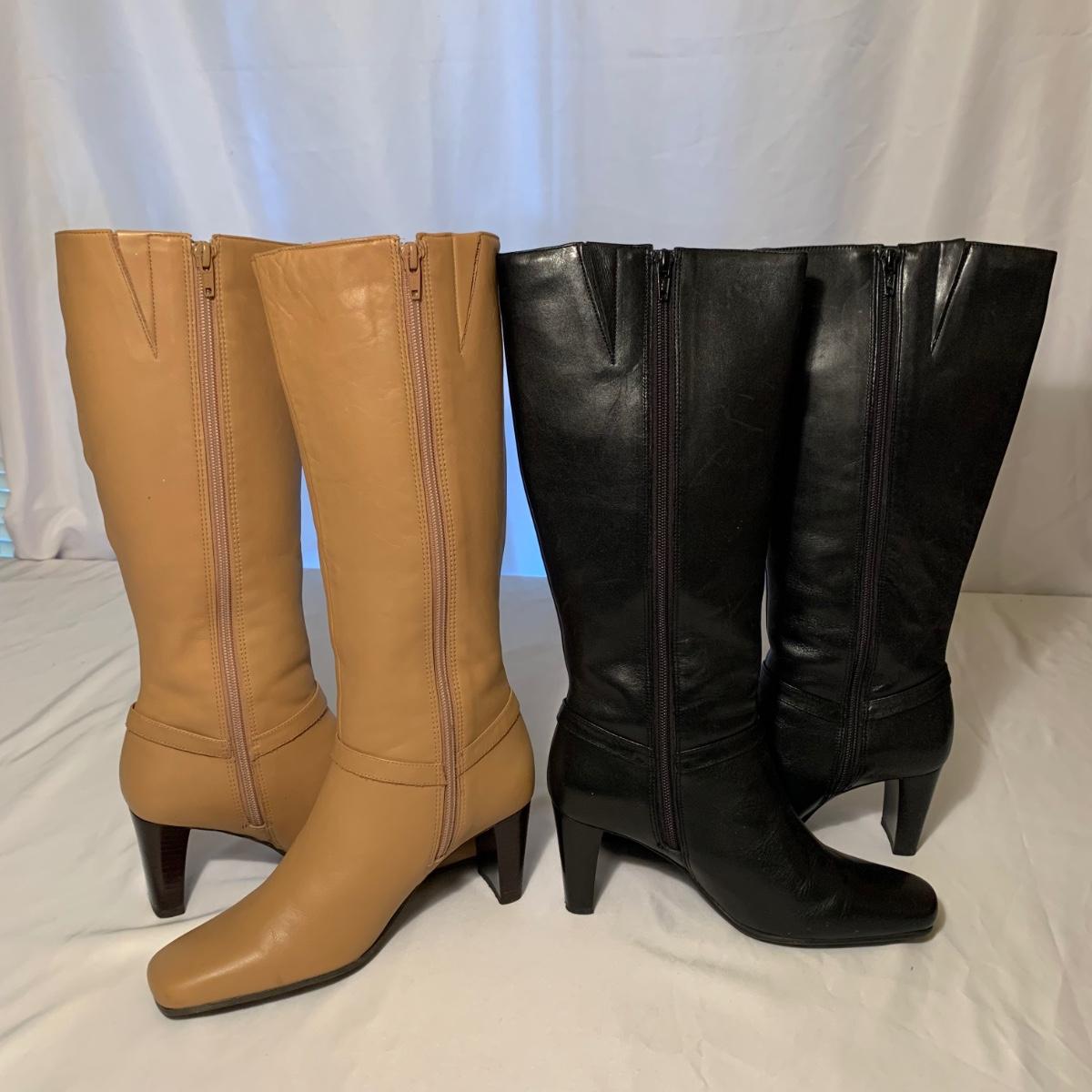 Nine pairs of women’s boots, all size 6.5-7. All boots appear to be leather. Some are in their original boxes. They have been stored and kept in very good condition, with most looking new or very gently used. Six pairs are black, one pair is dark brown, one pair is camel, and one pair is white. Brands included are Enzo Angolini, Bloomingdale’s, Nine West, Ralph Lauren, Banana Republic, Reaction for J. Jill, and Naturalizer. Local pickup only.