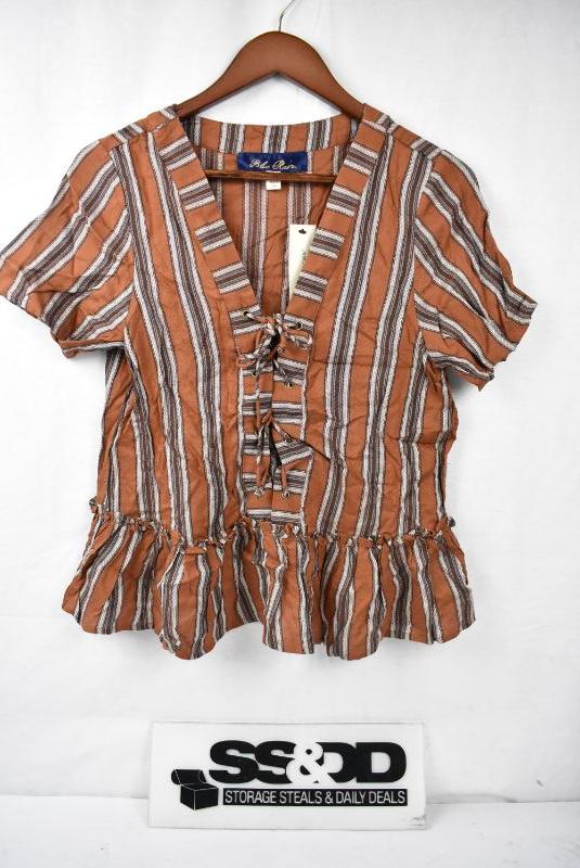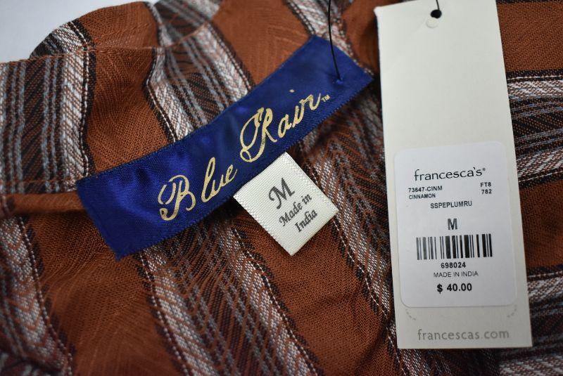 Women's Brown Striped Blouse by Blue Rain, Size Medium - New