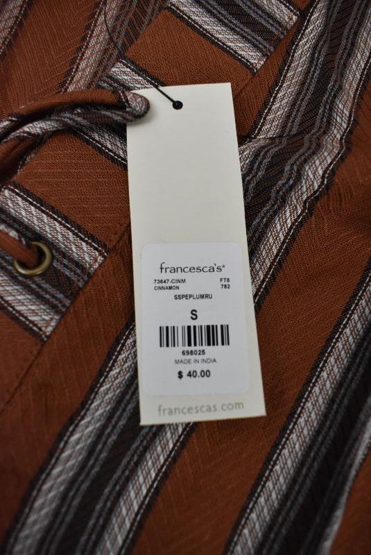 Women's Brown Stripes Shirt, Blue Rain Francesca's Size Small - Retail $40 - New