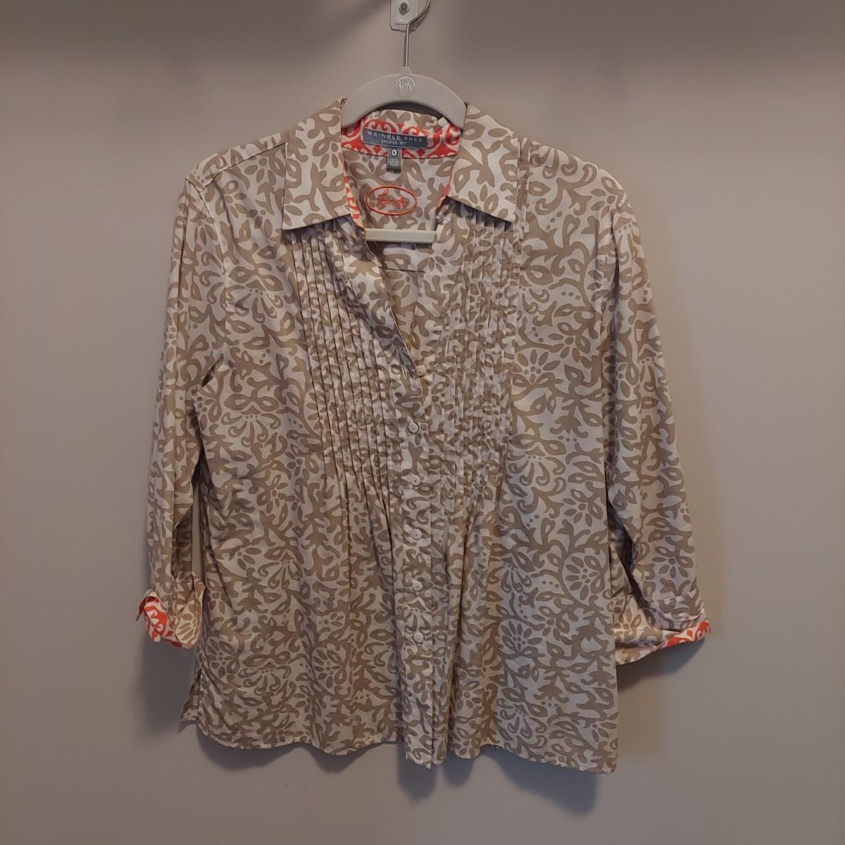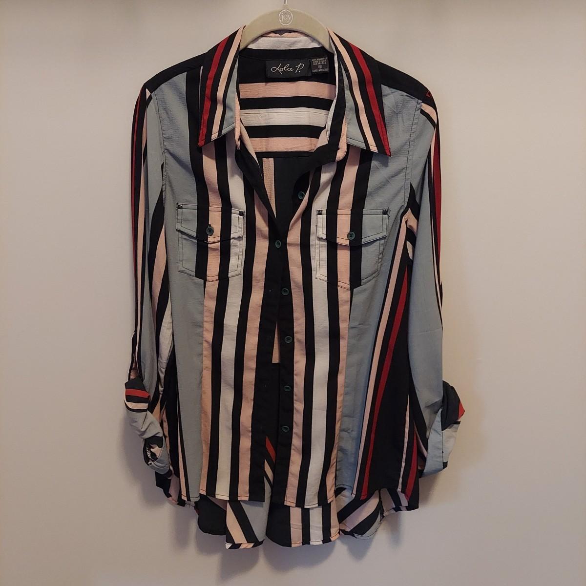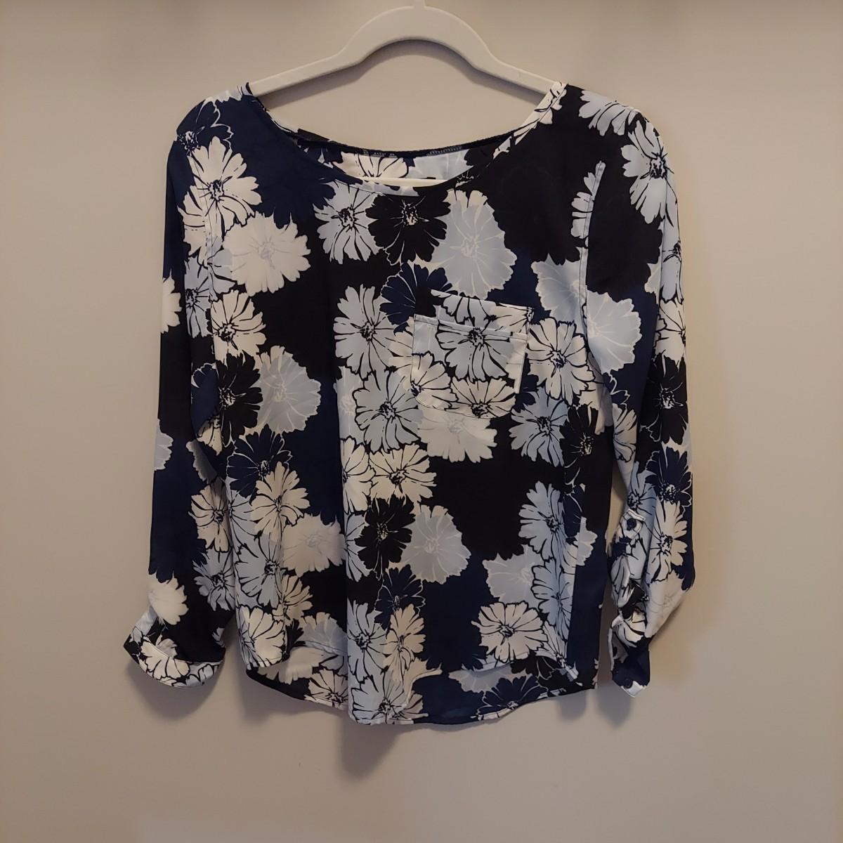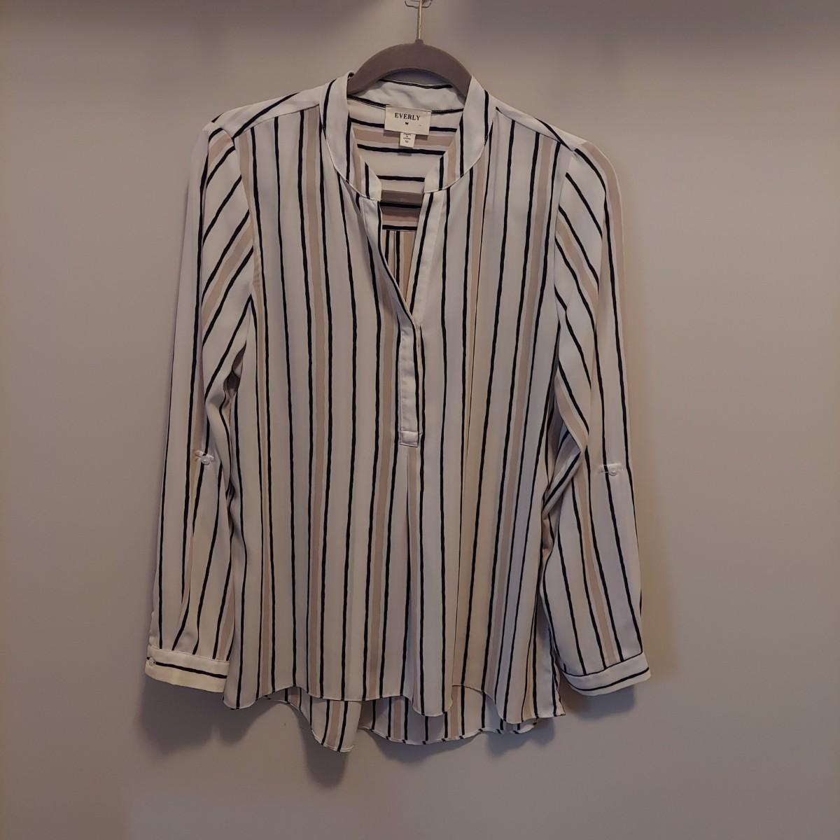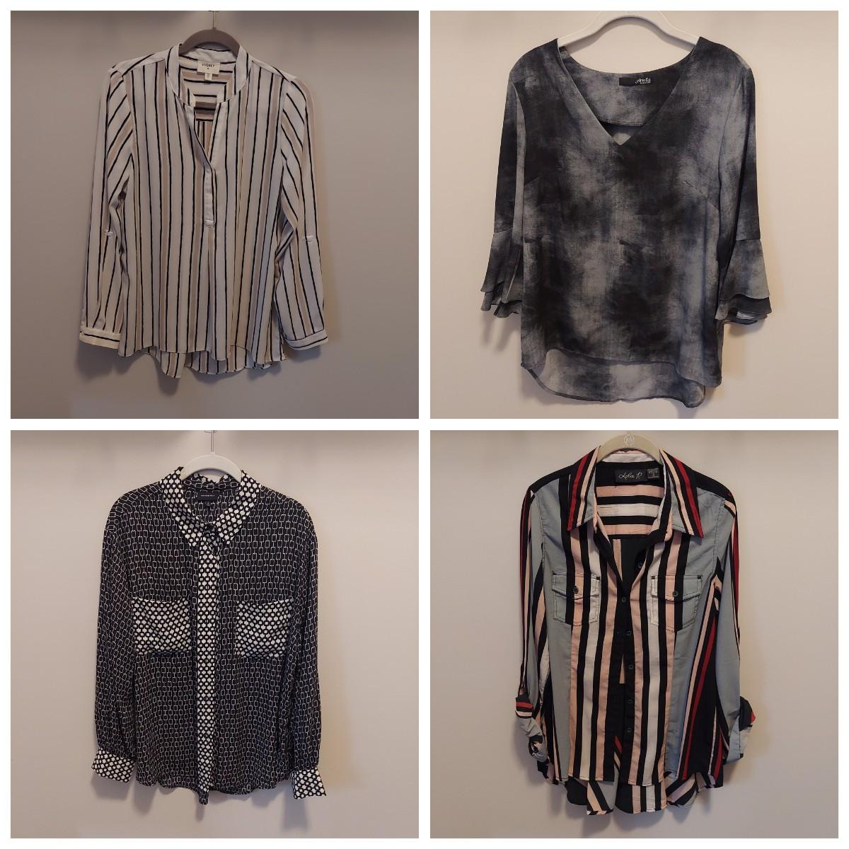 Lot includes approximately 20 business casual wear tops in various sizes by brands like Everly, Ann Taylor and more. Please see photos for details. Shipping available