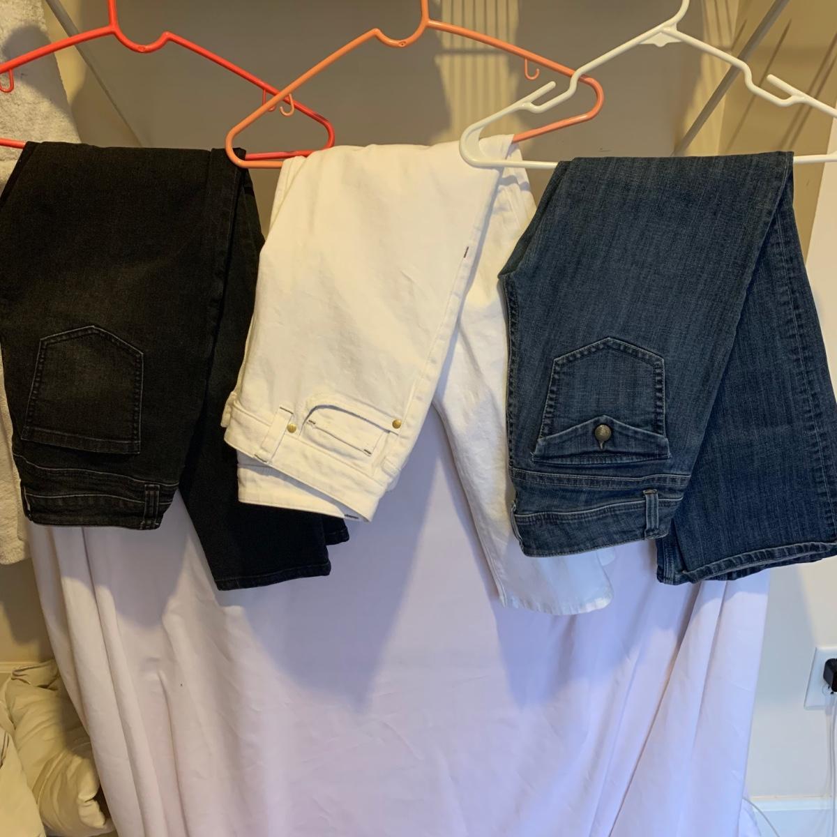 This lot includes 5 pairs of jeans and 2 skirts. All items are Cabi brand And all are size medium. The pieces in this lot appear to be in good condition with the possibility of small signs of wear. Shipping available.