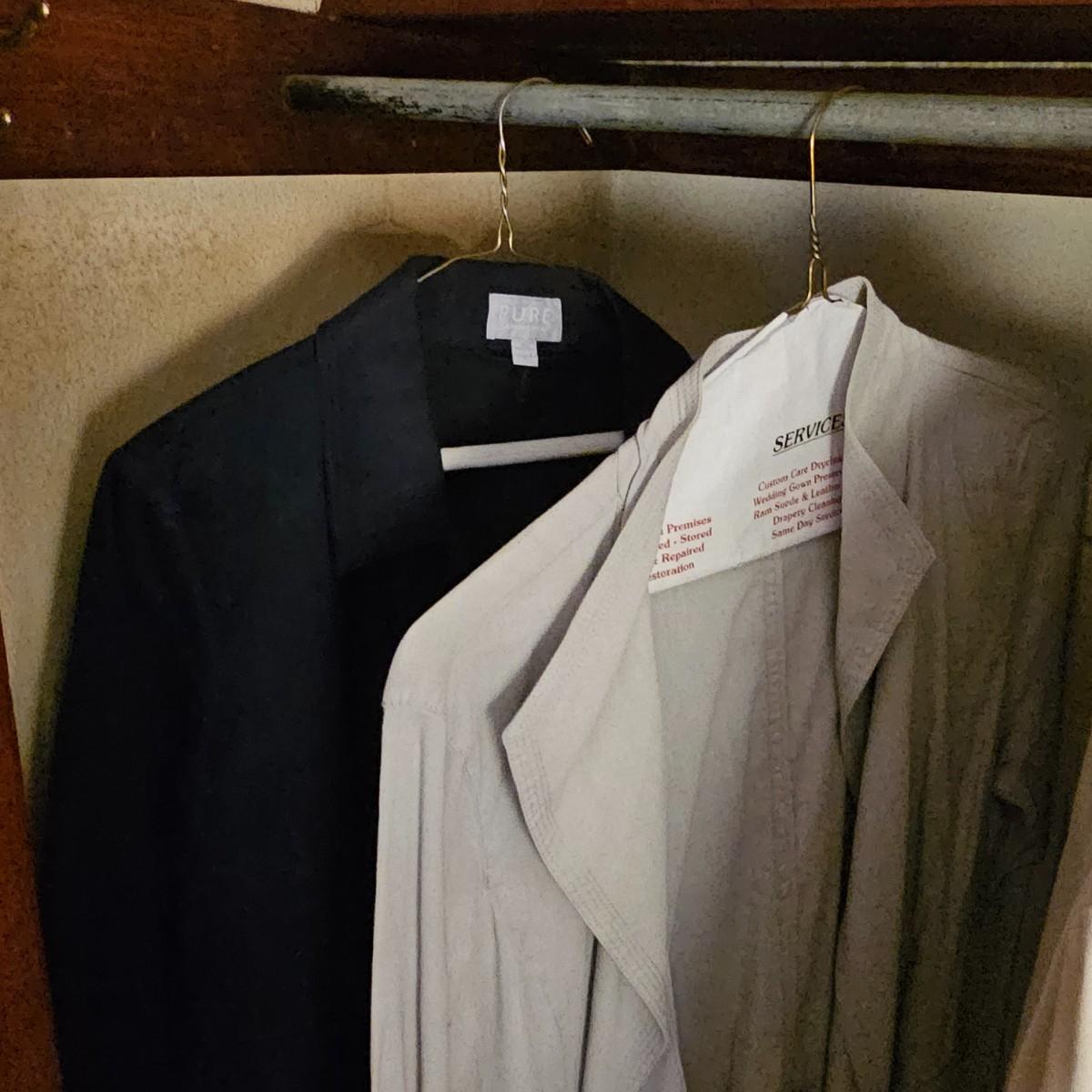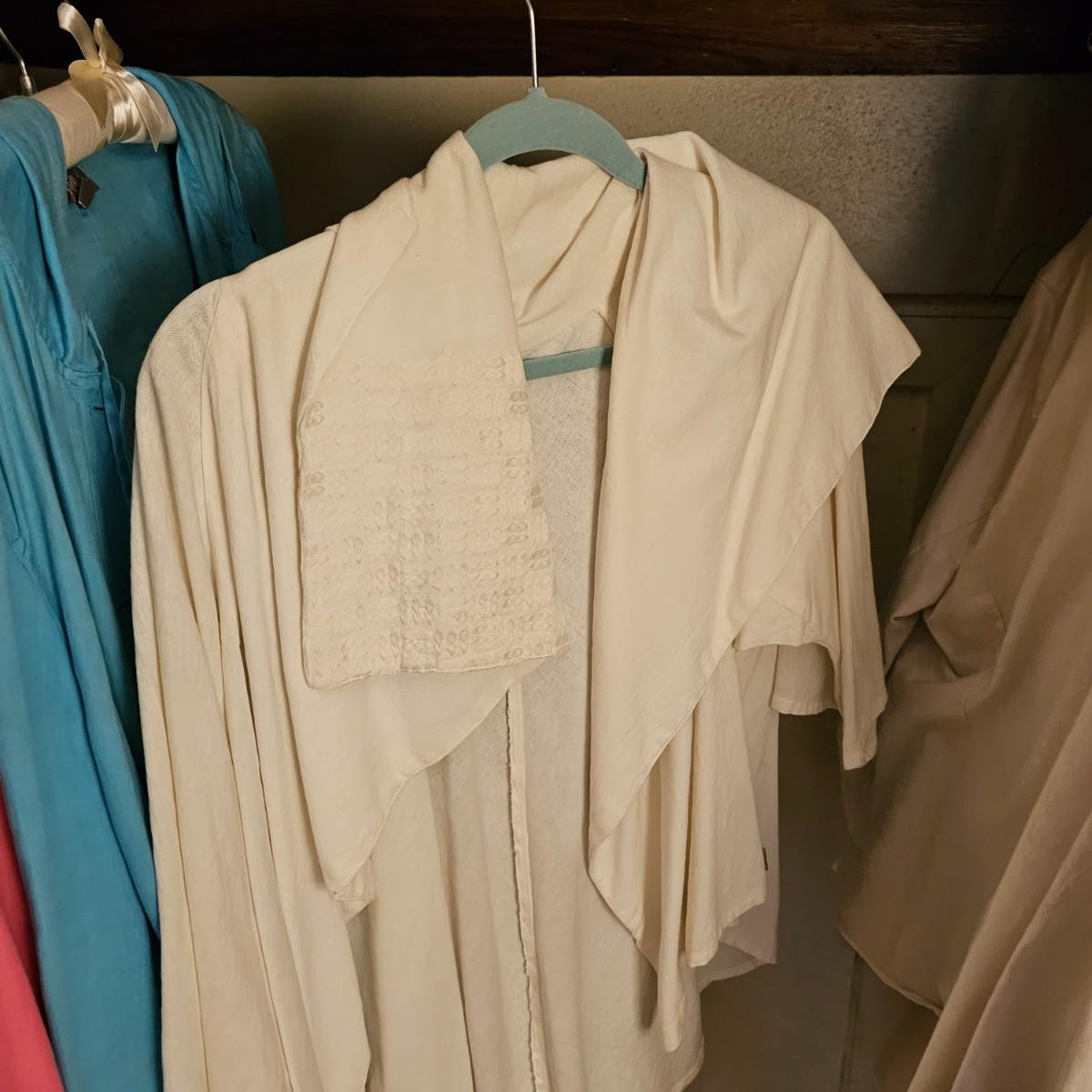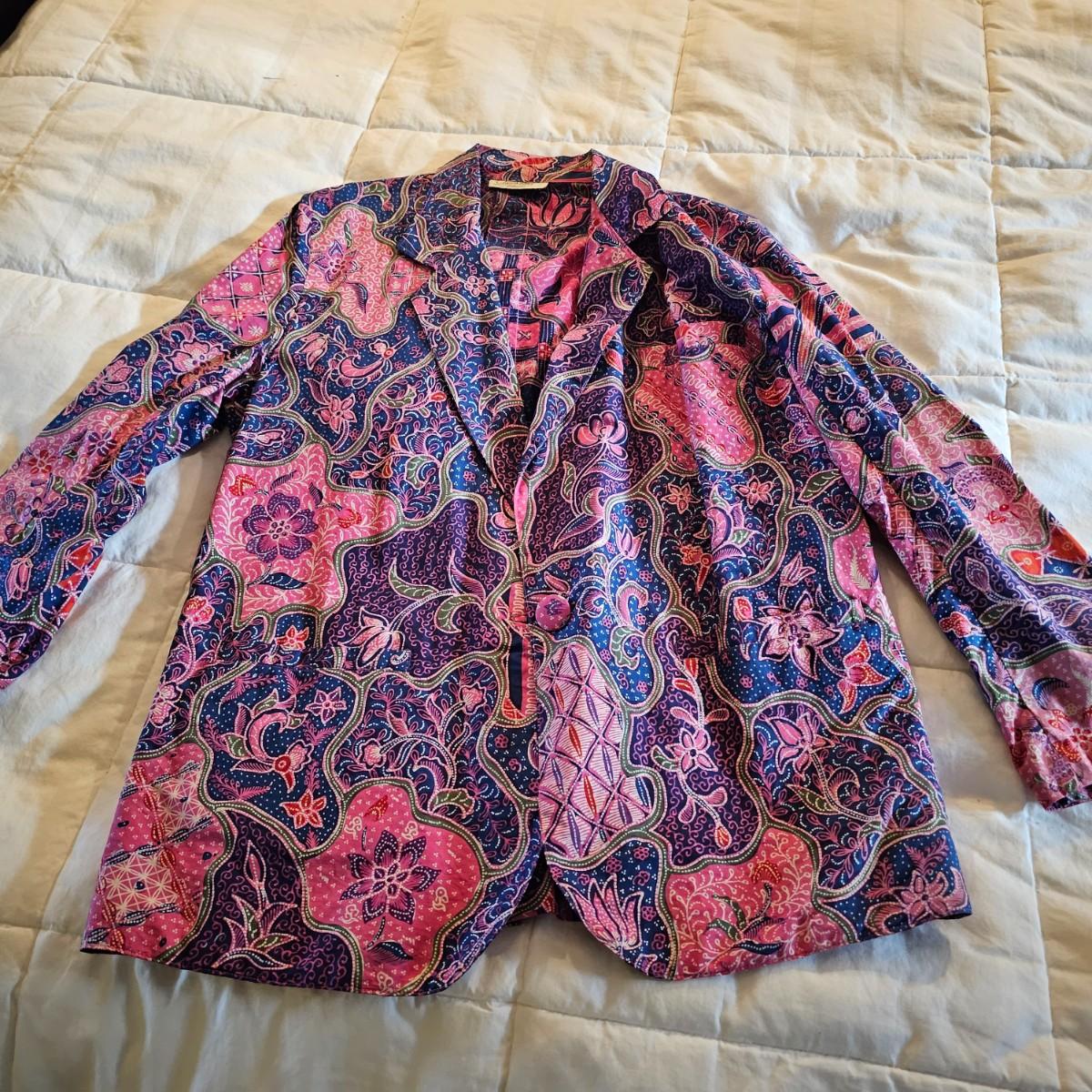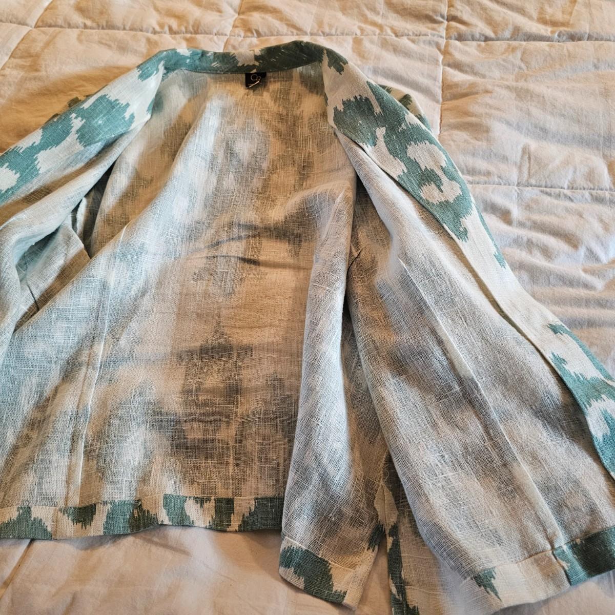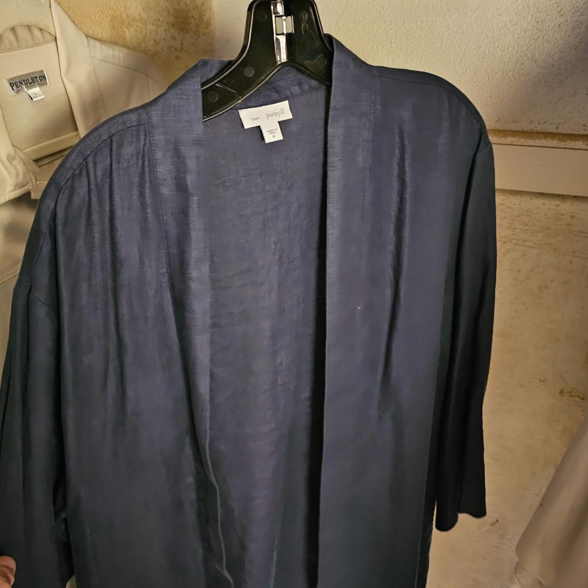 Fourteen lightweight jackets for in between seasonal wear. Solids, patterns, cotton, linens, more. Sizes range from 14 to 16, Medium, Large, X-Large. Lots of different manufacturers. See photos for details. Shipping available.