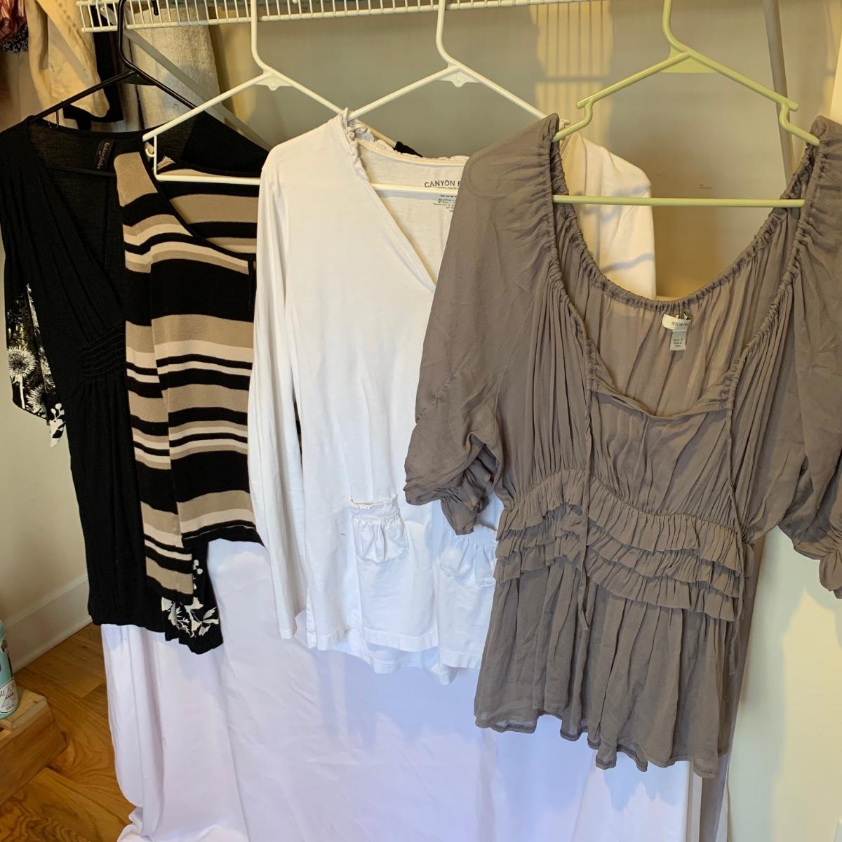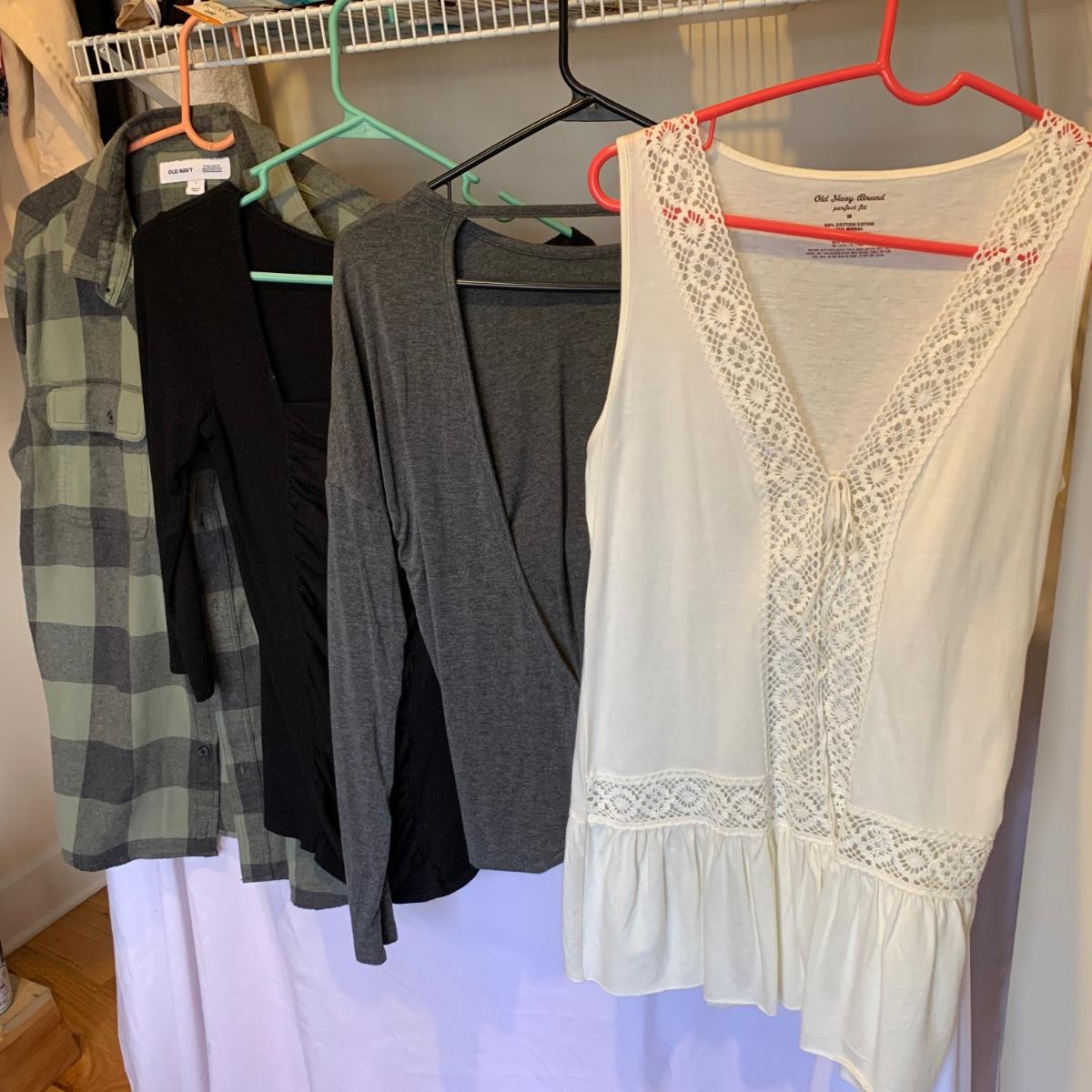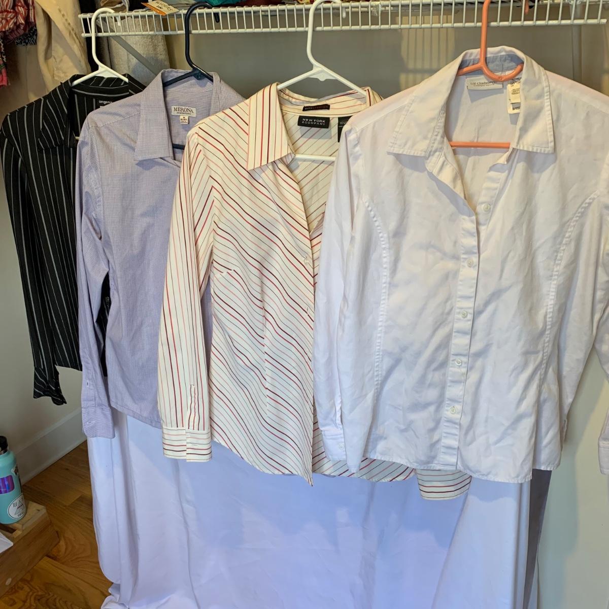 This lot includes 23 casual women’s tops. This includes a variety of long sleeves, button downs, tank tops, and more. Brands include Old Navy, Liz Claiborne, Boston Proper, INC, Tangents, and more. Sizes range from small to large. Shipping available.