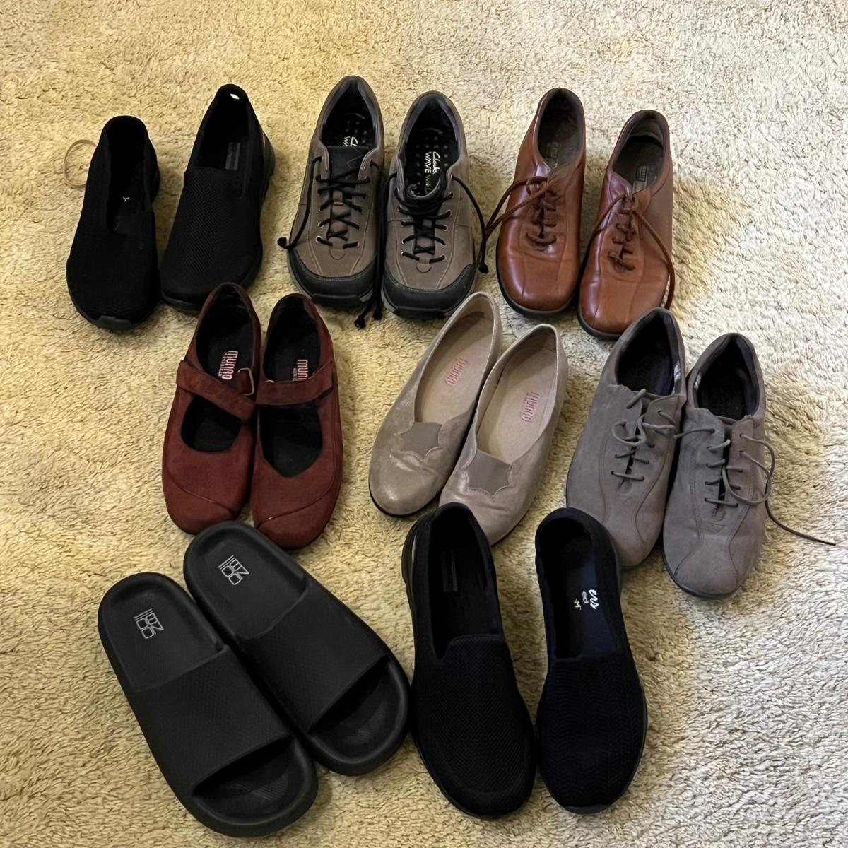 This lot of women’s shoes includes Clarks, Ecco, Munro, Skechers and more, ranging from sizes 8 to 11, some narrow. Shipping available.