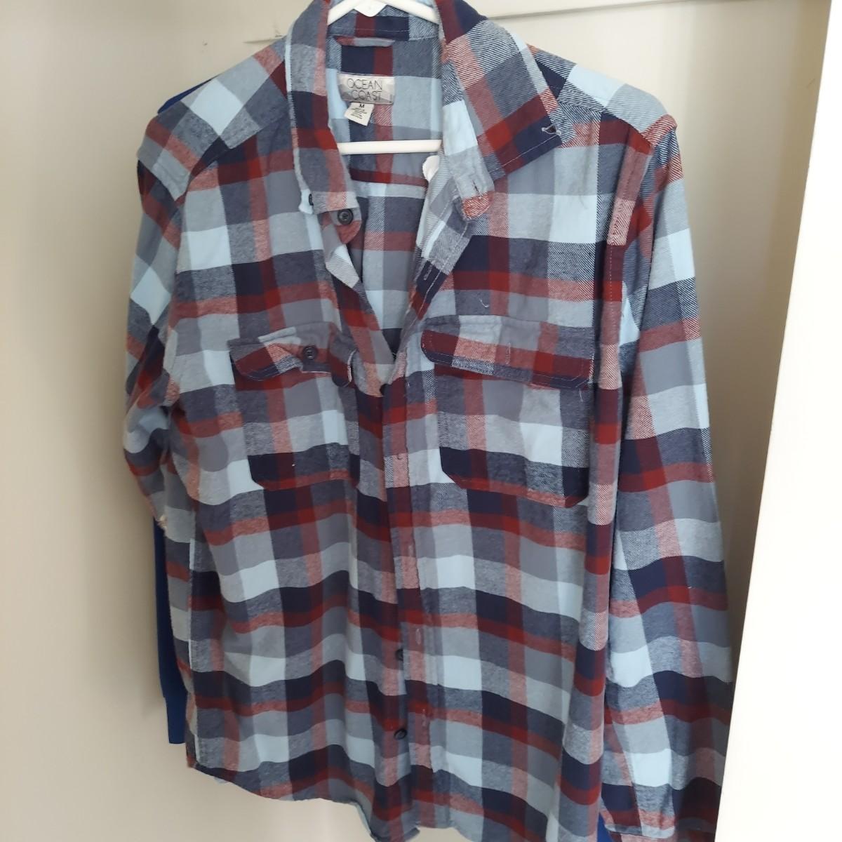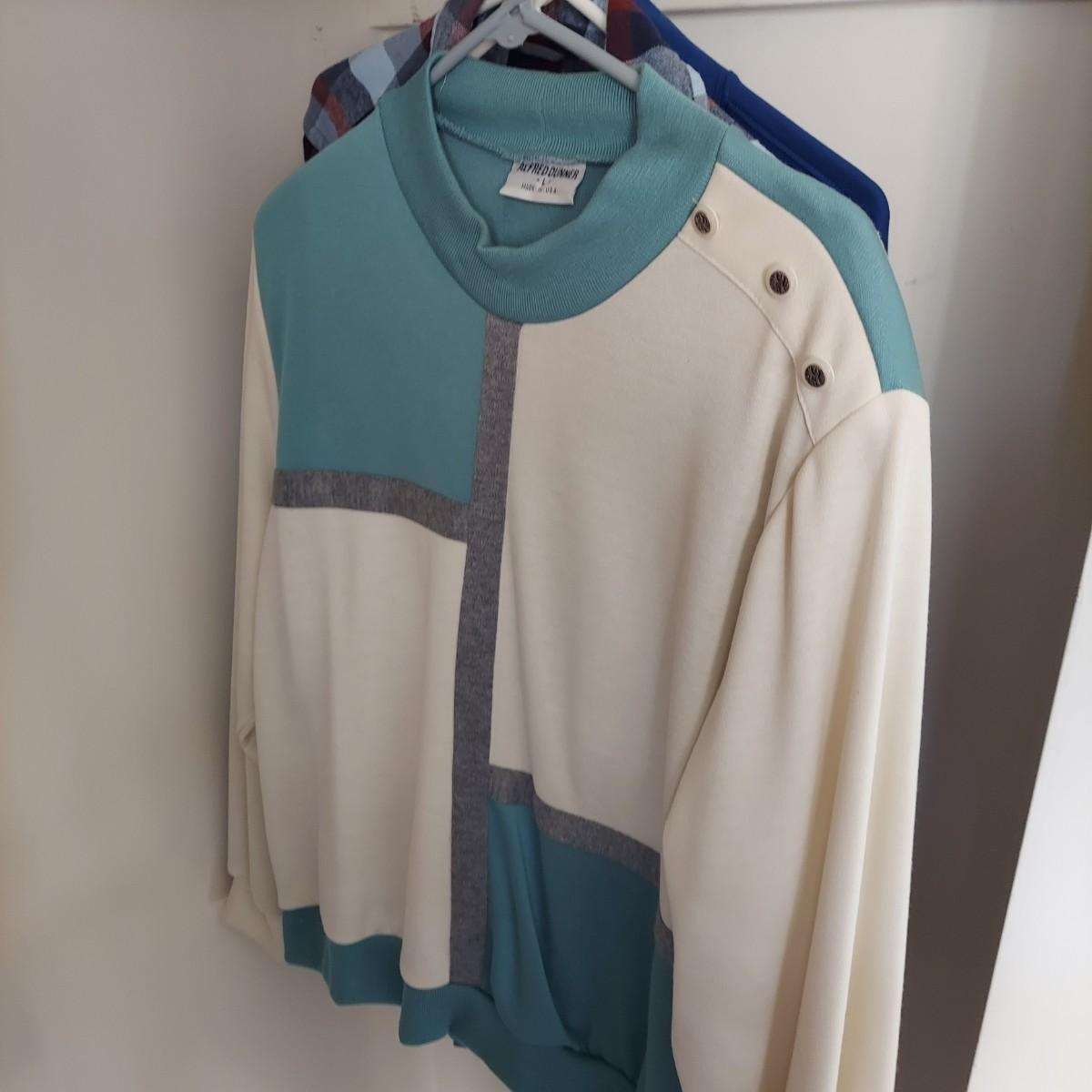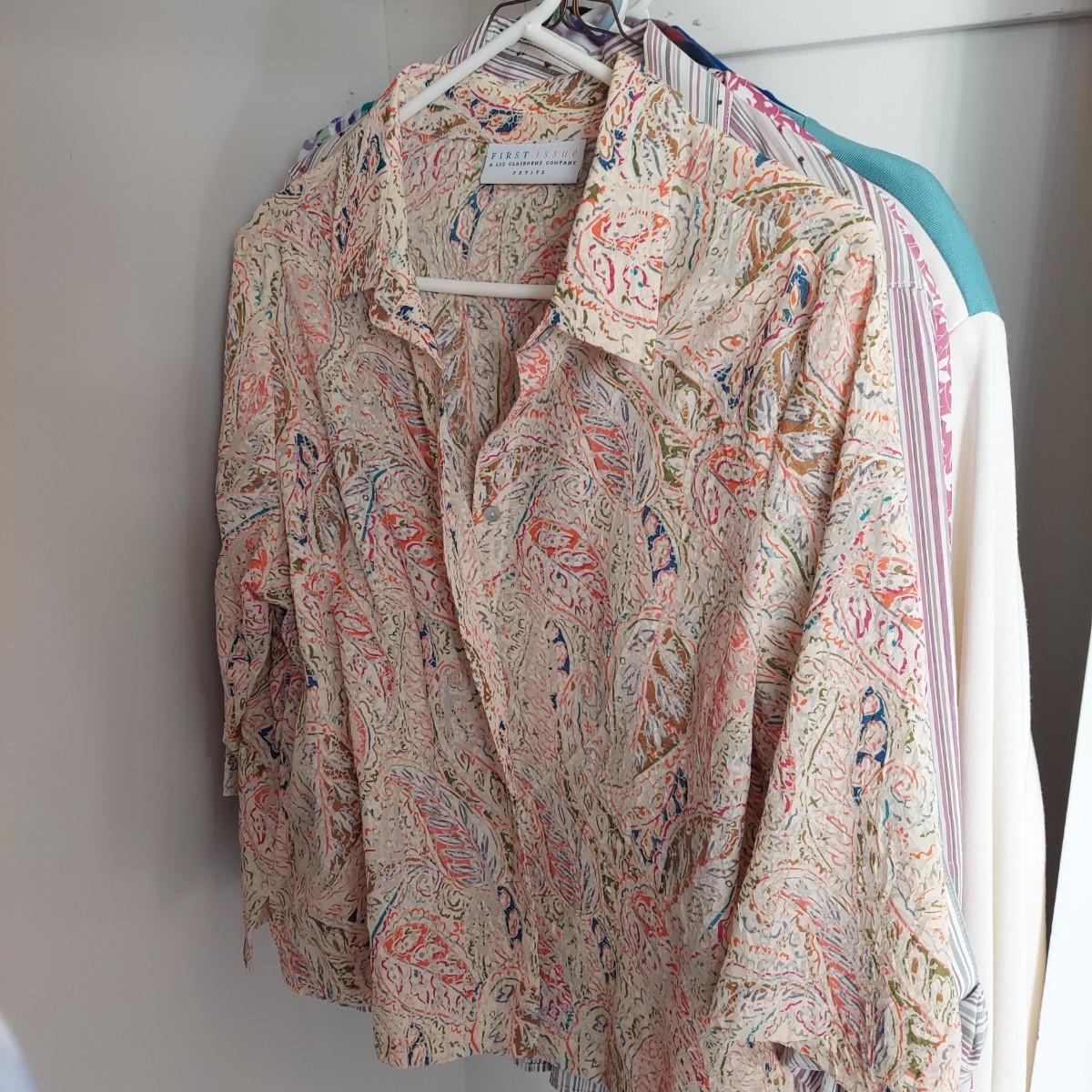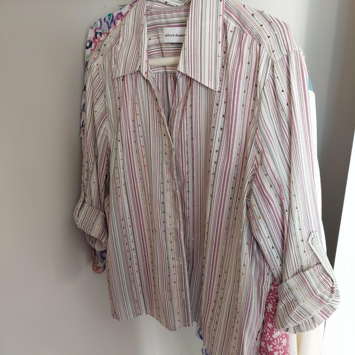 Several women's tops with summer hats and scarves. There are three long, thin head wrap scarves, four square scarves, three cloth headbands. As well as six sun hats. There are approximately 15 tops that are mostly size Large or XL. Brands include Lands End, Jaclyn Smith, Southern Lady, Liz Claiborne, Alfred Dunner and more. Shipping available