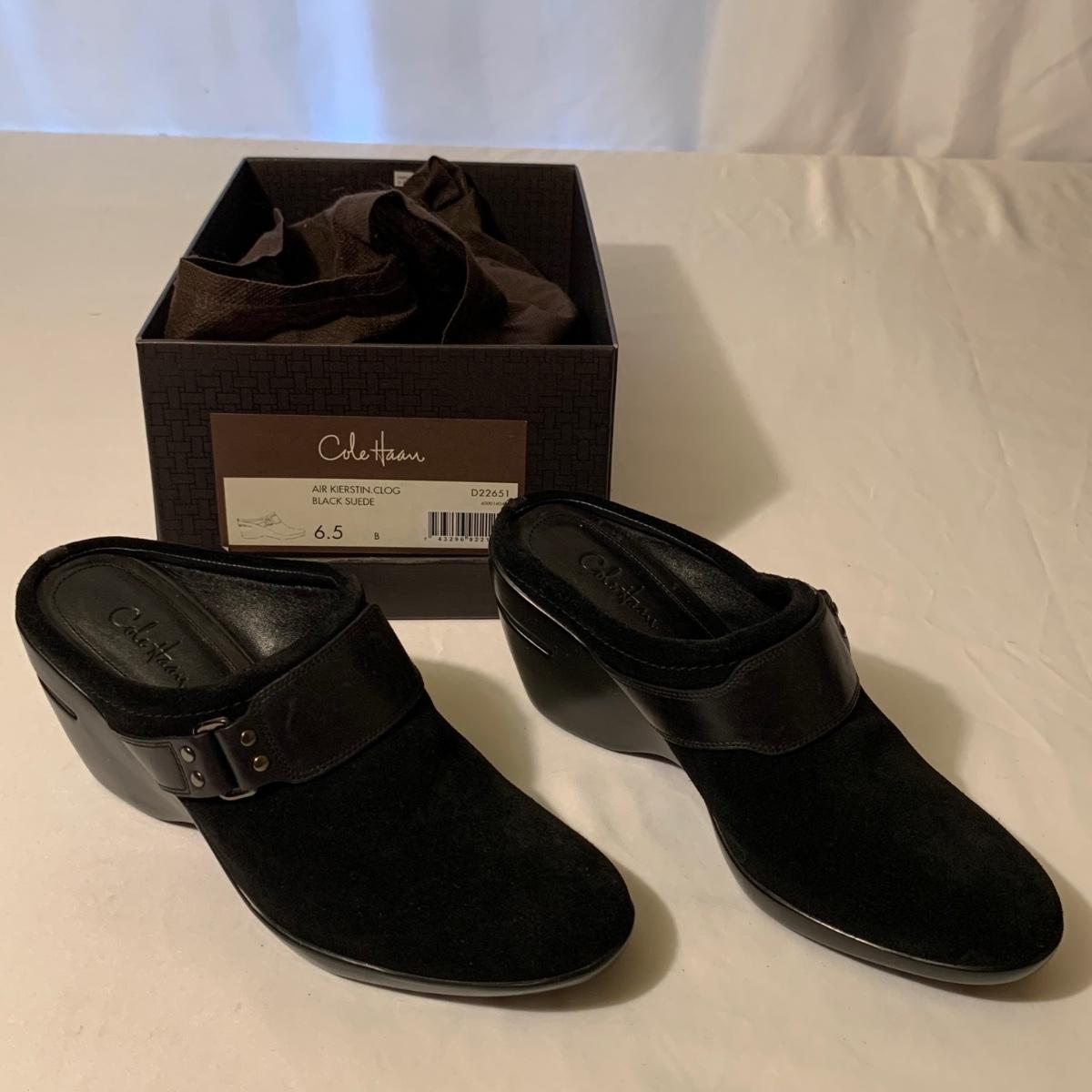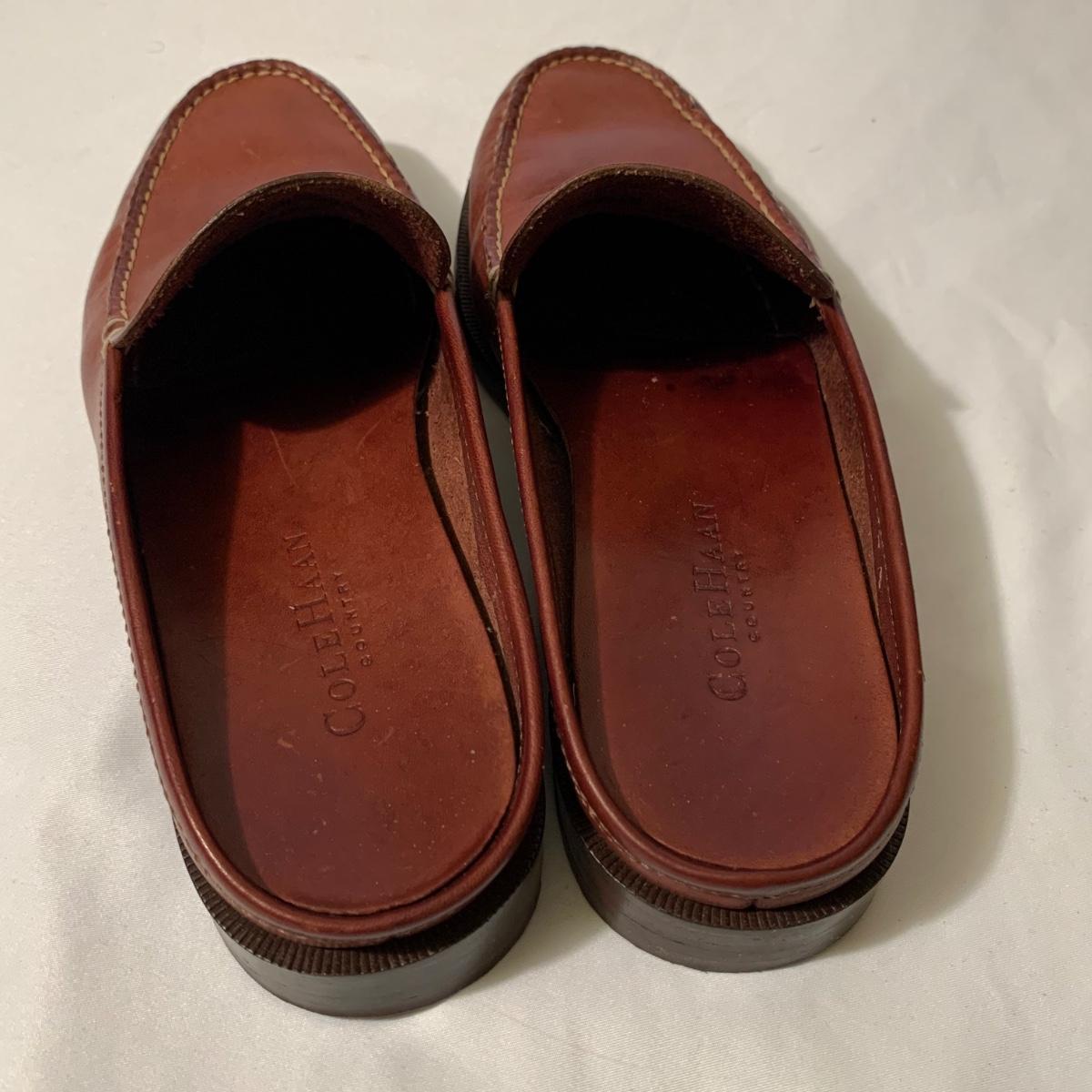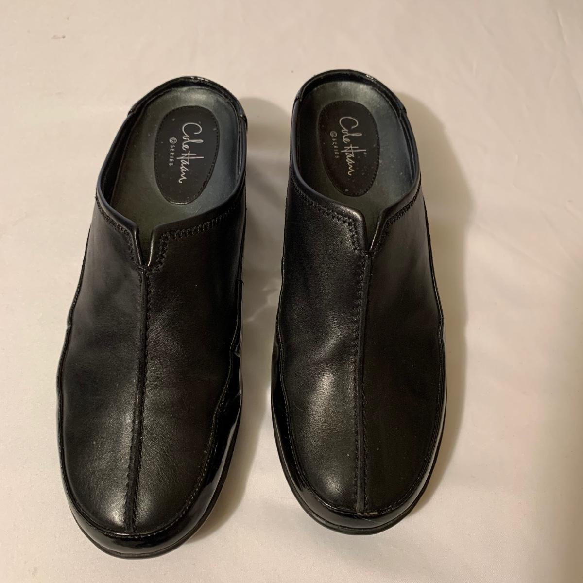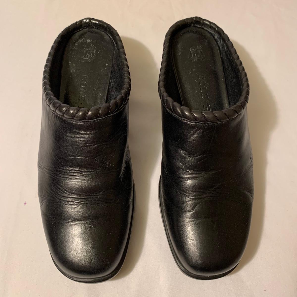 Eight pairs of women’s Cole Haan brand slides. All size 6-6.5. All are in their original boxes. They have been stored and kept in very good condition, with some looking brand new or very gently used. Shoes appear to be leather, two brown pairs and six black. Local pickup only.
