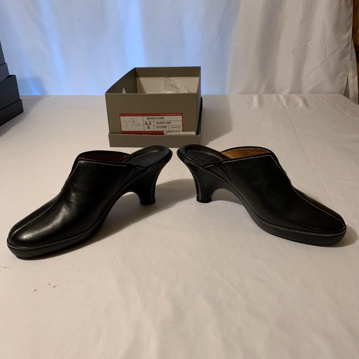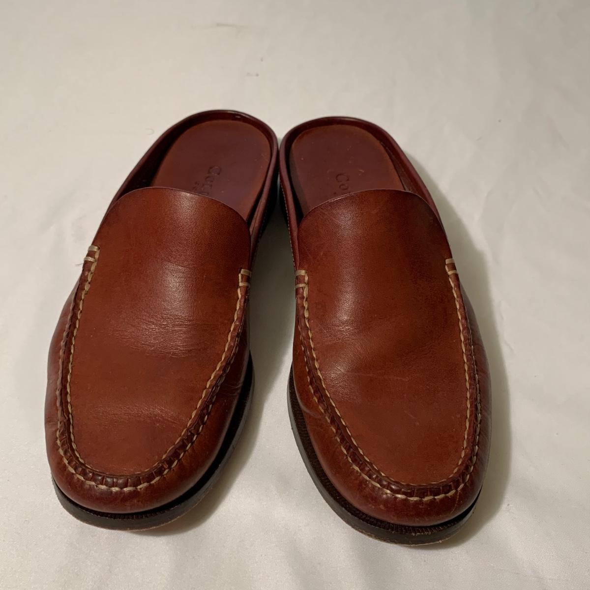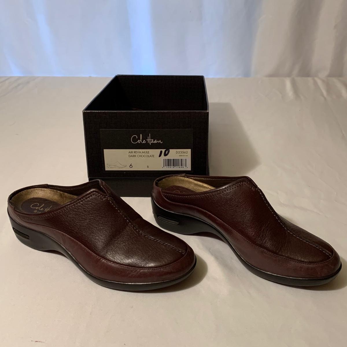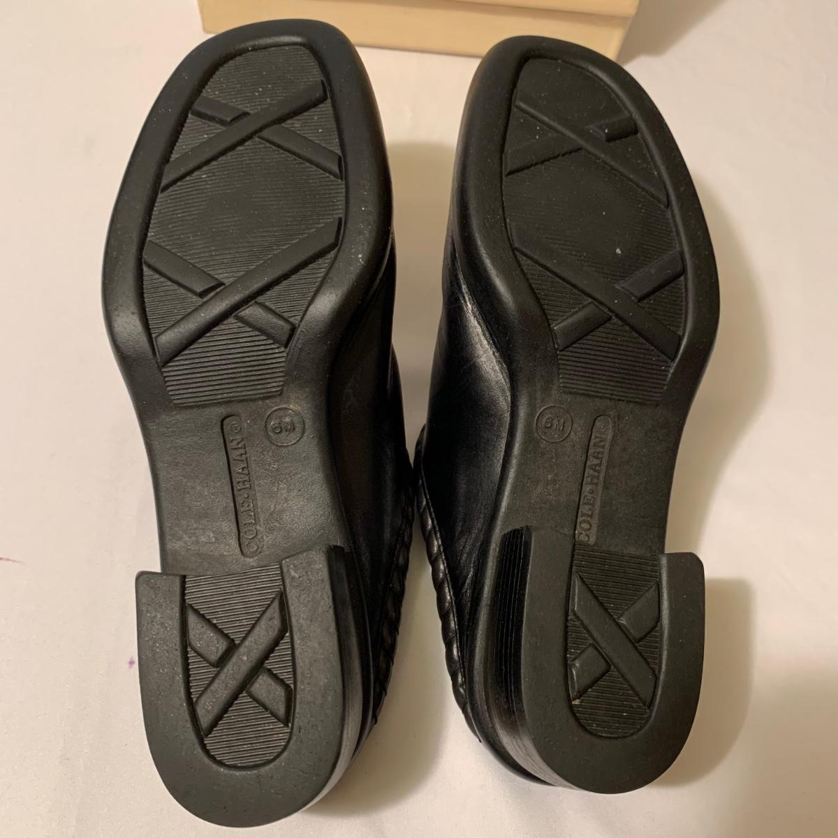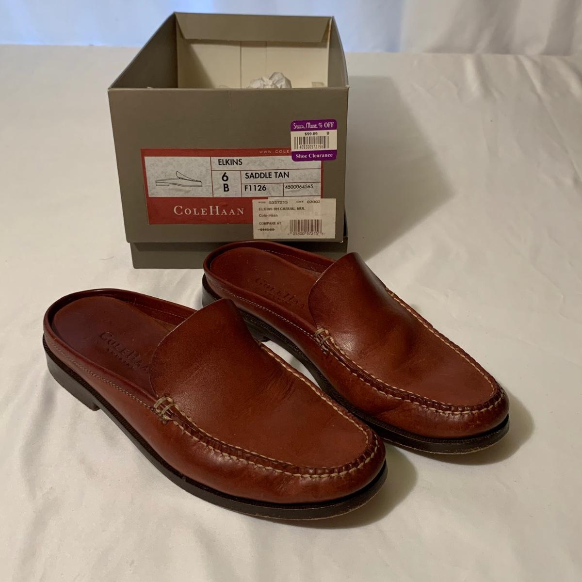 Eight pairs of women’s Cole Haan brand slides. All size 6-6.5. All are in their original boxes. They have been stored and kept in very good condition, with some looking brand new or very gently used. Shoes appear to be leather, two brown pairs and six black. Local pickup only.