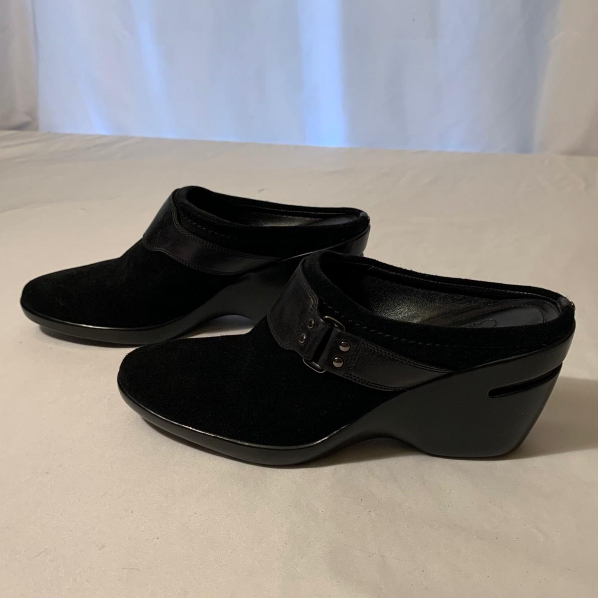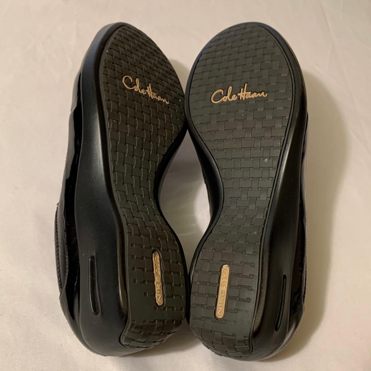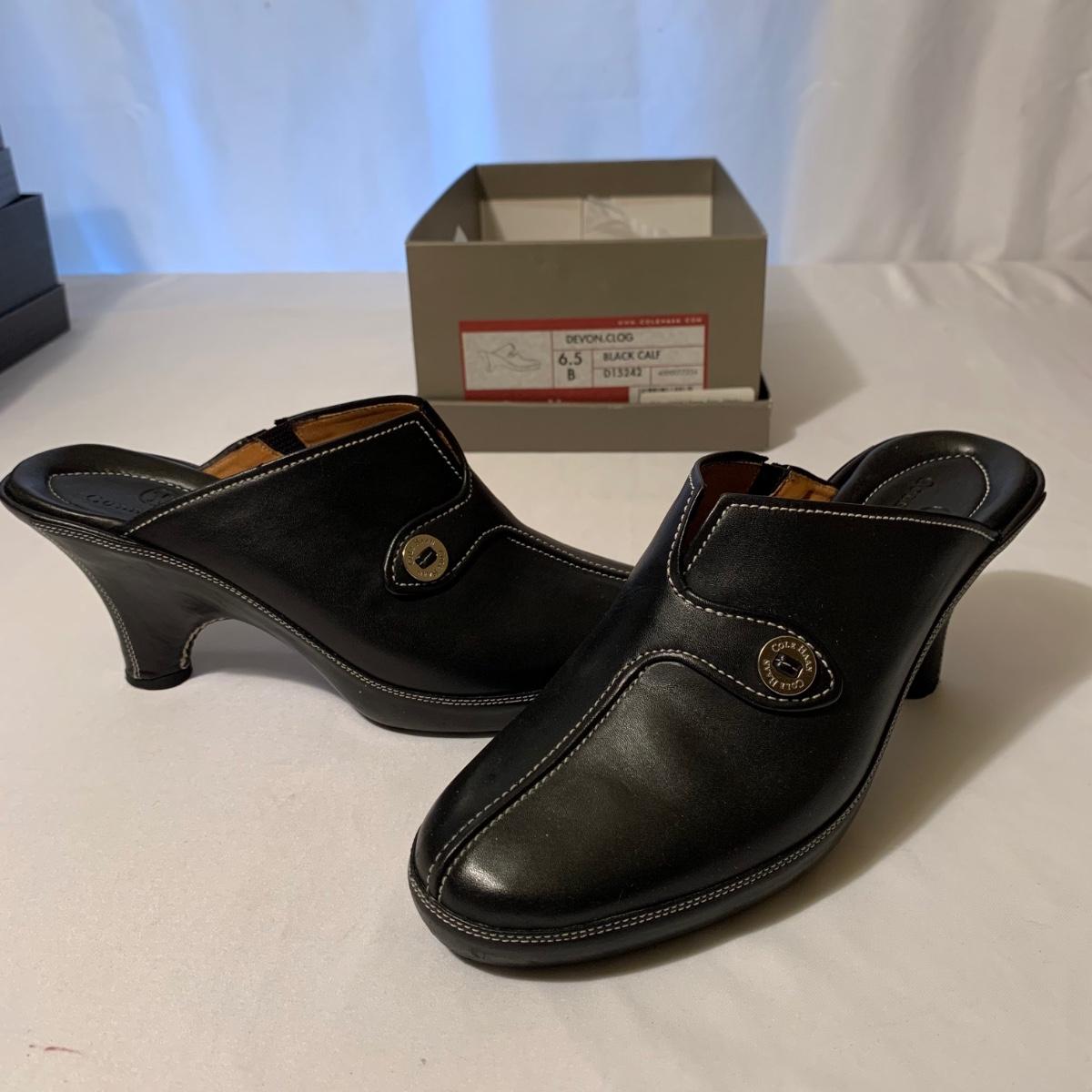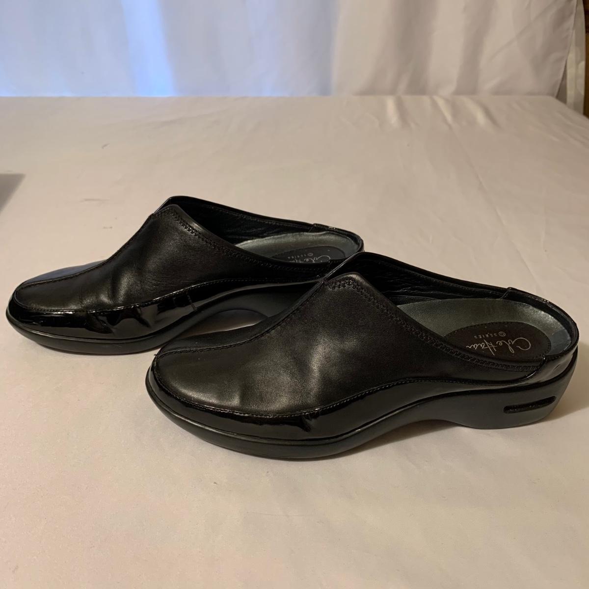 Eight pairs of women’s Cole Haan brand slides. All size 6-6.5. All are in their original boxes. They have been stored and kept in very good condition, with some looking brand new or very gently used. Shoes appear to be leather, two brown pairs and six black. Local pickup only.
