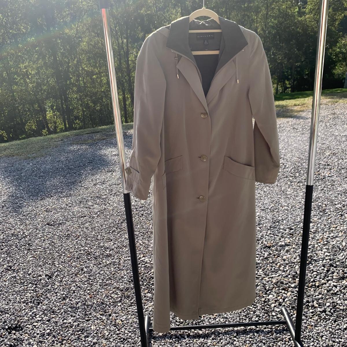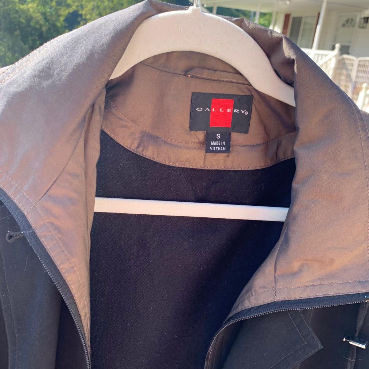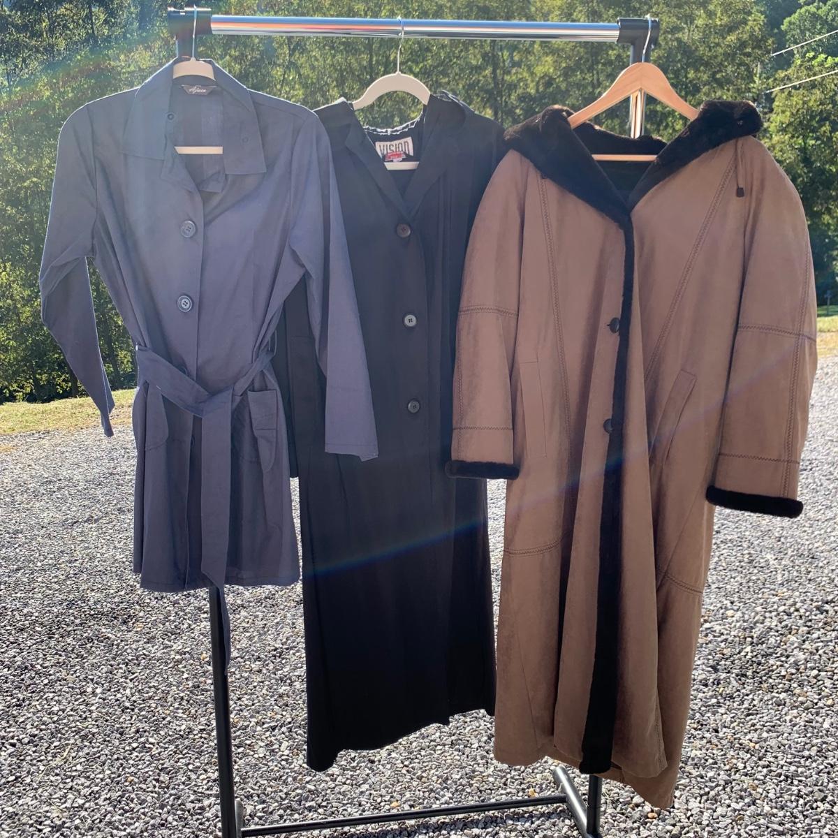 Seven women’s coats, sizes S and M. They range from shorter and lightweight styles to ankle length and heavyweight styles. All but one has a hood. Some have removable hoods. The tan/green and black/bronze Gallery jackets have a removable inner liner. Please see photos for inventory and details. Hangers are not included.
