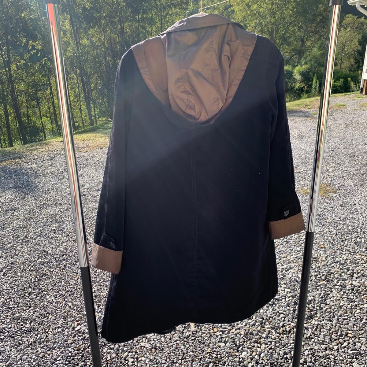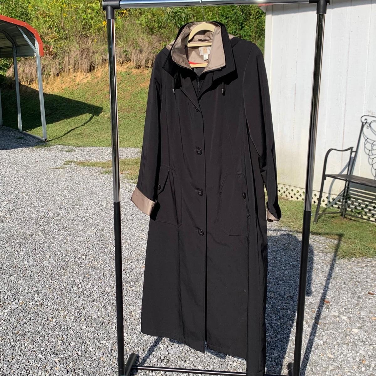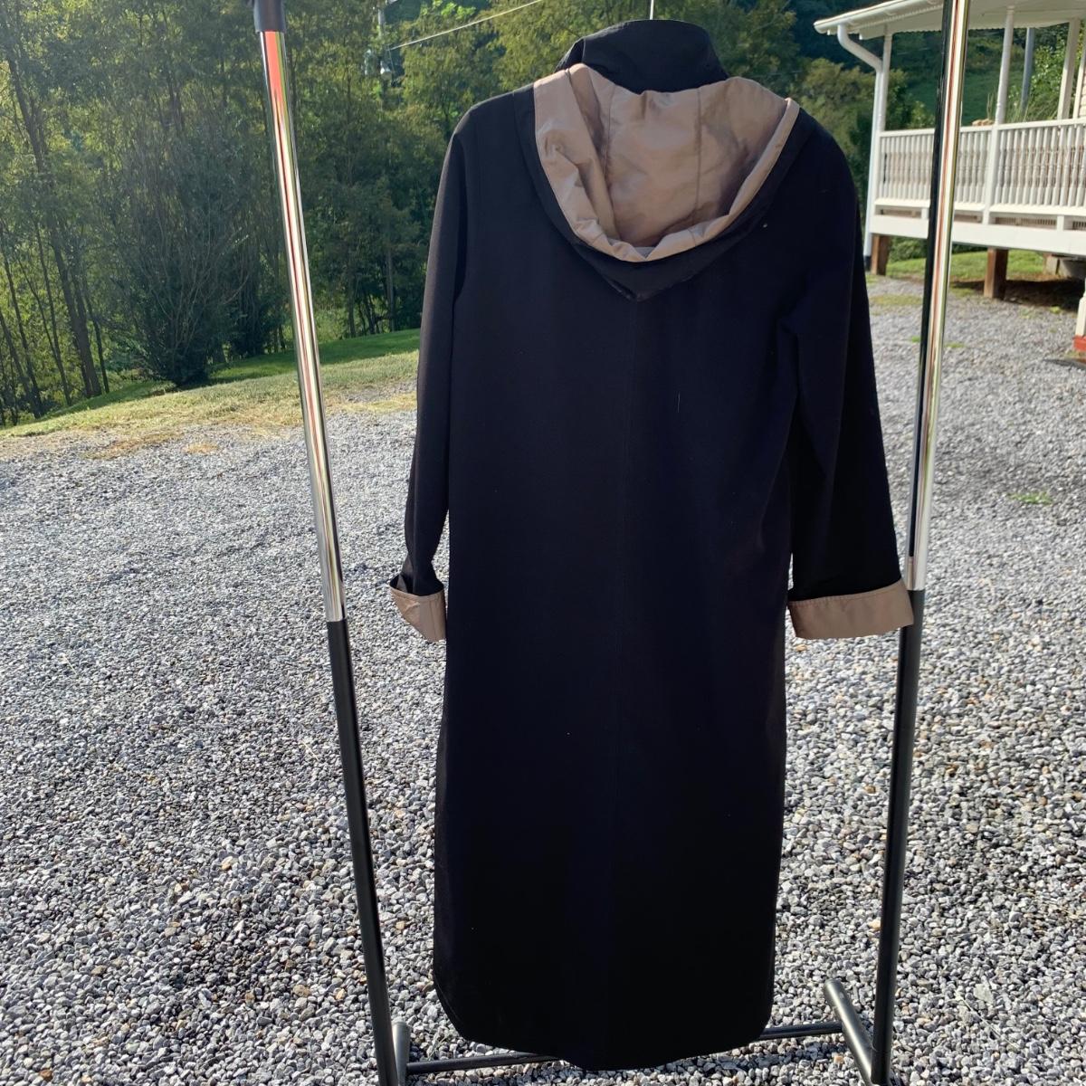 Seven women’s coats, sizes S and M. They range from shorter and lightweight styles to ankle length and heavyweight styles. All but one has a hood. Some have removable hoods. The tan/green and black/bronze Gallery jackets have a removable inner liner. Please see photos for inventory and details. Hangers are not included.