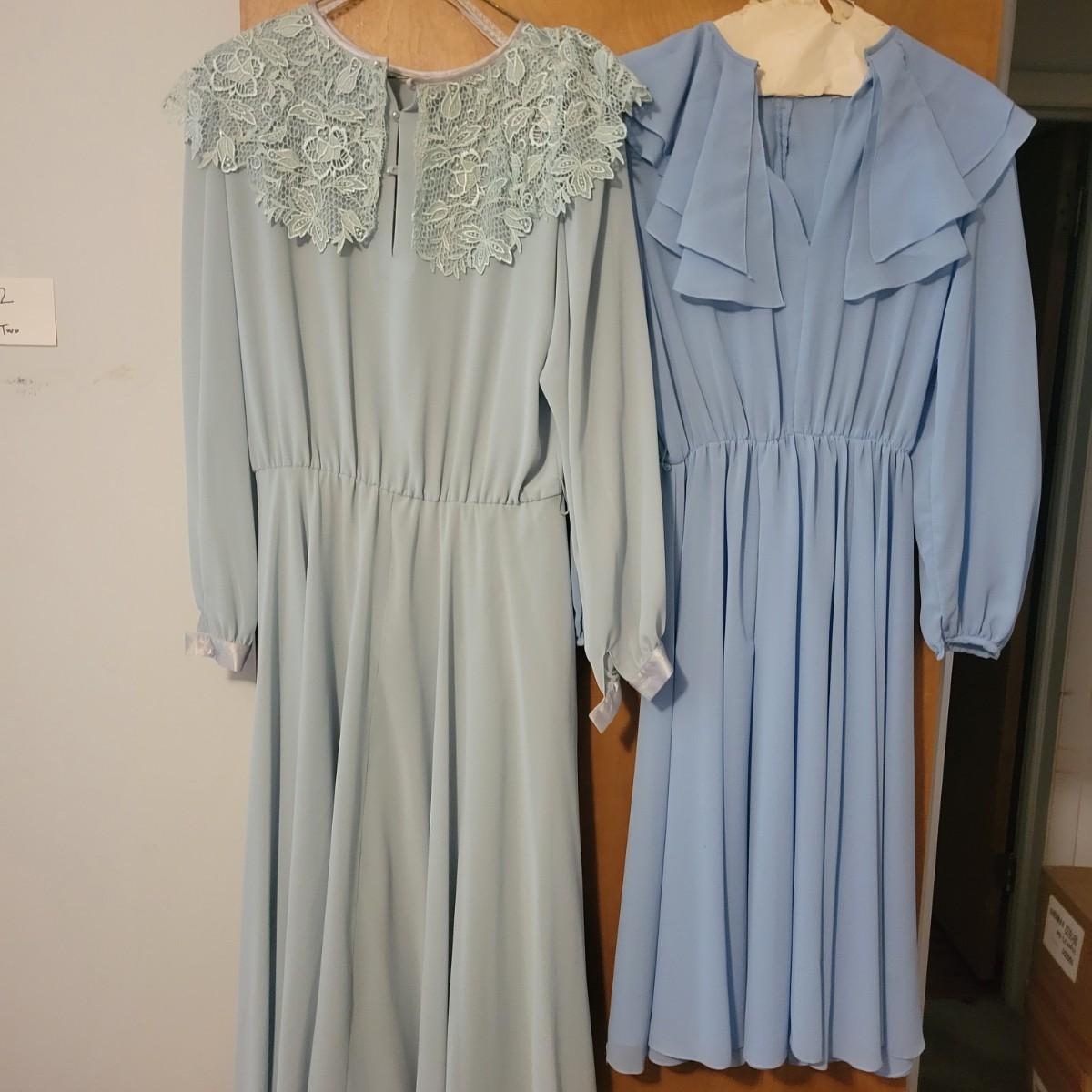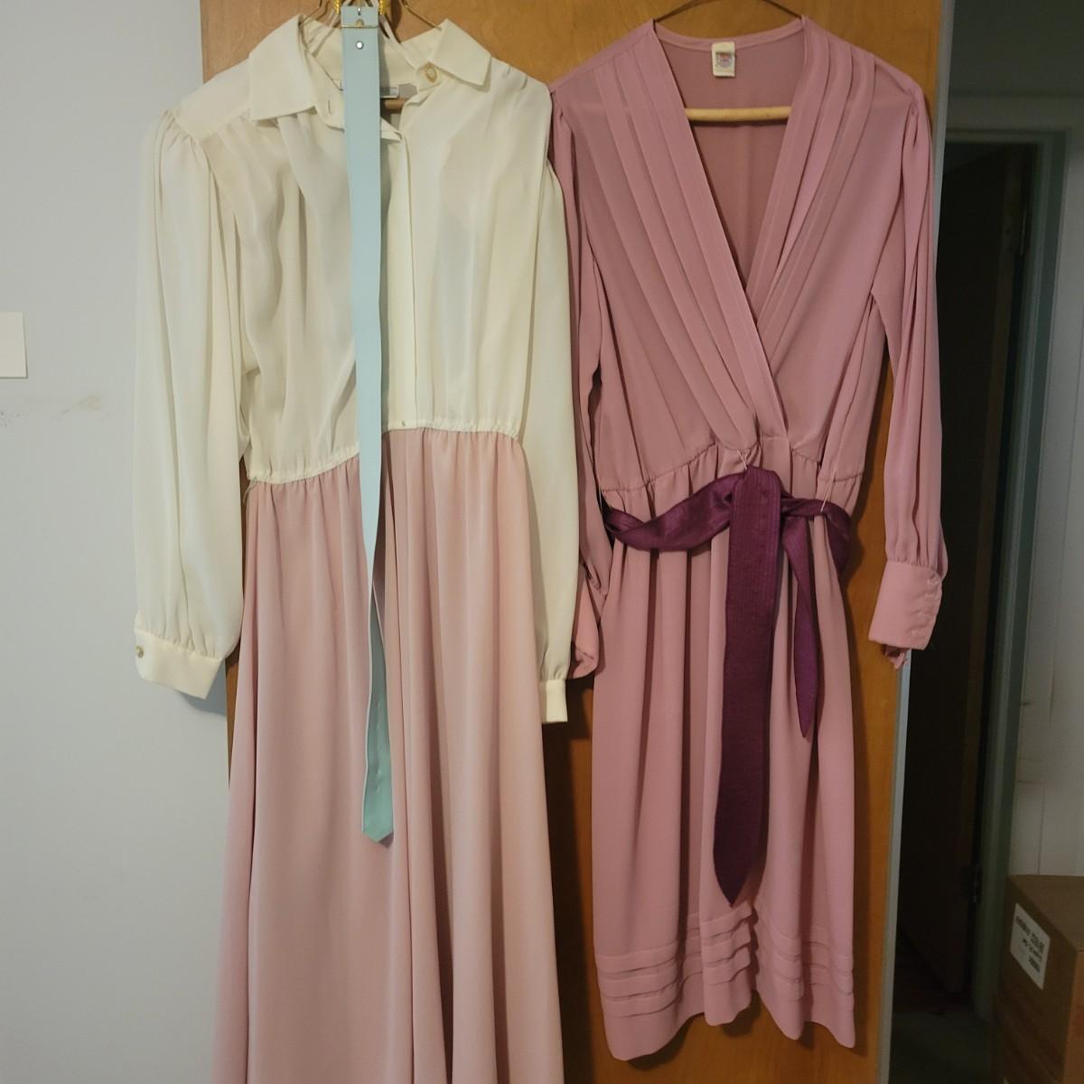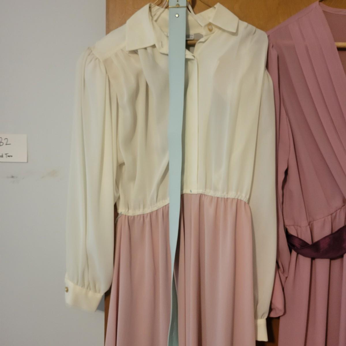 An assortment of women's dresses in good condition ranging in sizes from 12 to 16. One piece appears to be handmade and has no tag. Shipping available