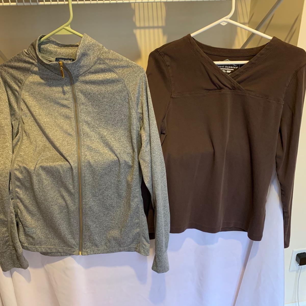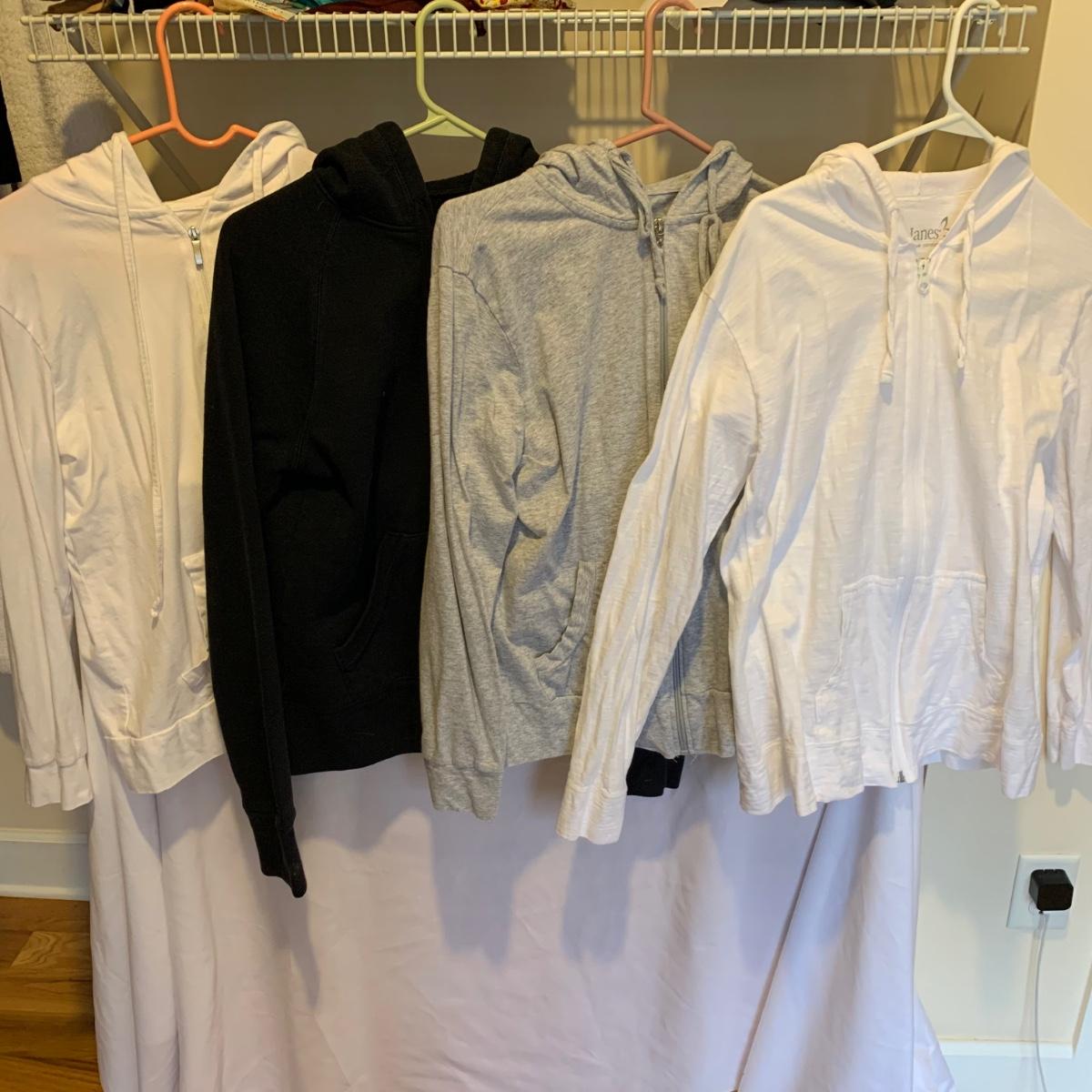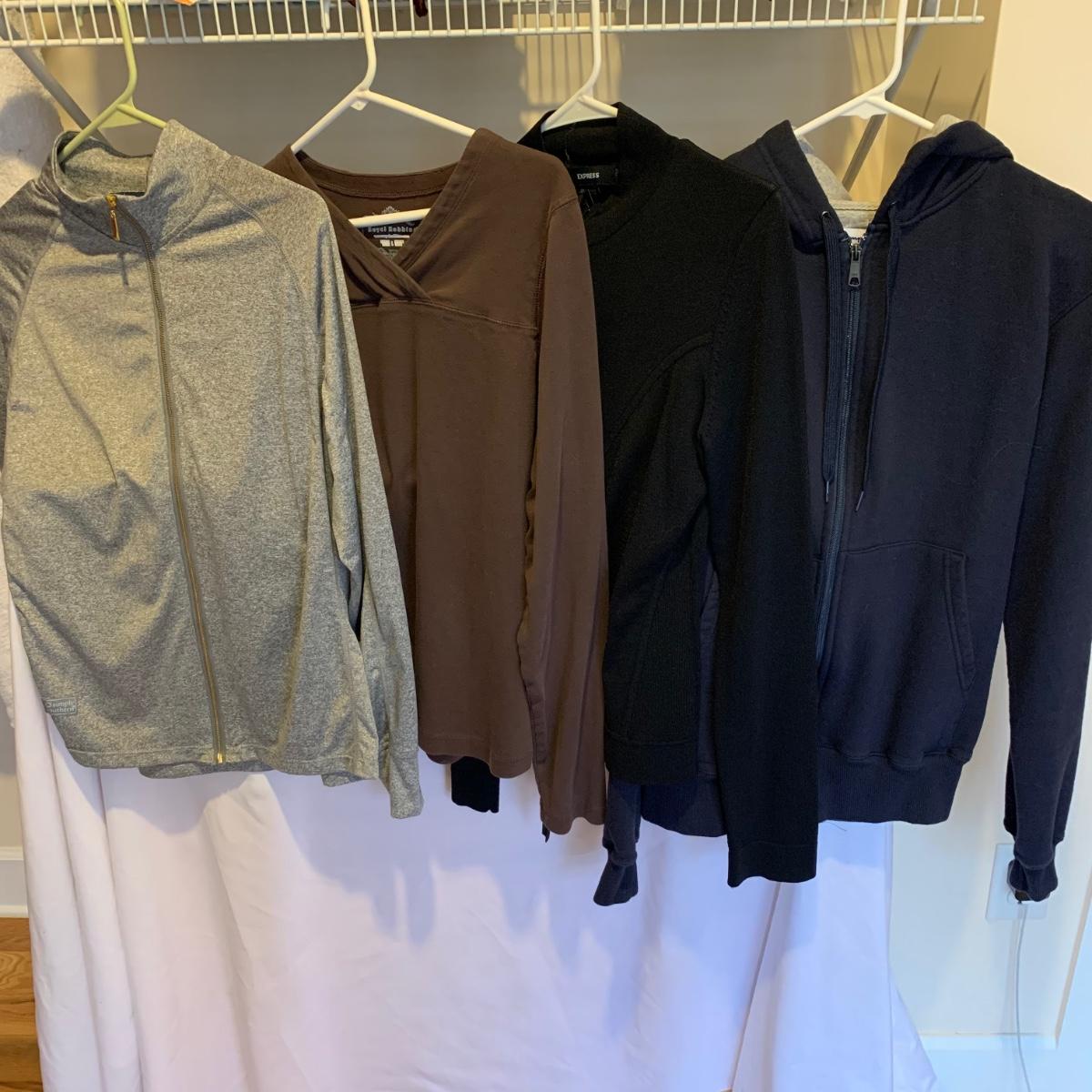 This lot includes a variety of exercise clothing including a mix of zip ups, sweatshirts, windbreakers, pants, and more. The brands included are Patagonia, Adidas, Columbia, Nike, Simply Southern, and more. Sizes range from women’s Small to Large but most are medium. The Patagonia rain jacket, Nike zip up, and the Adidas sweatpants all appear to be in great condition with no signs of wear. Some of the sweatshirts have stains on them (see photos). Shipping available.