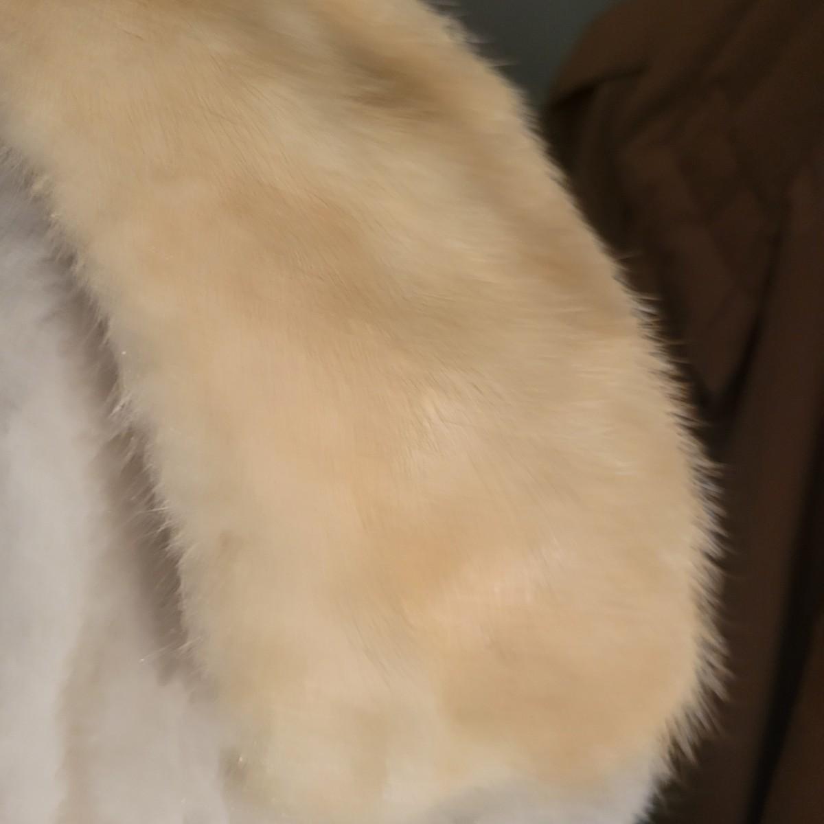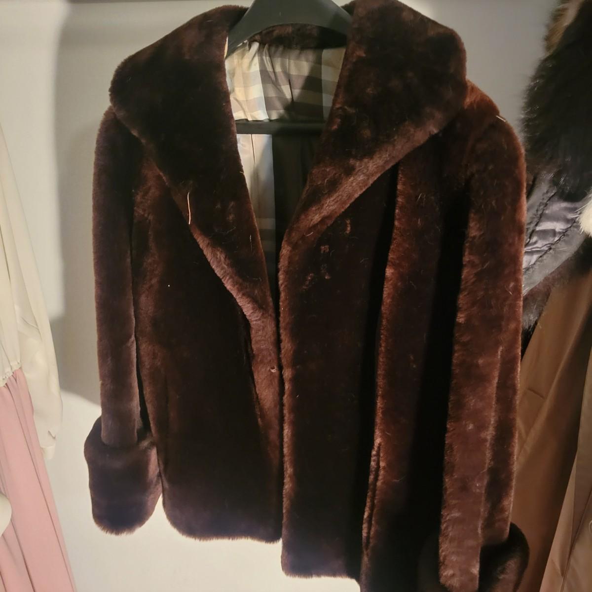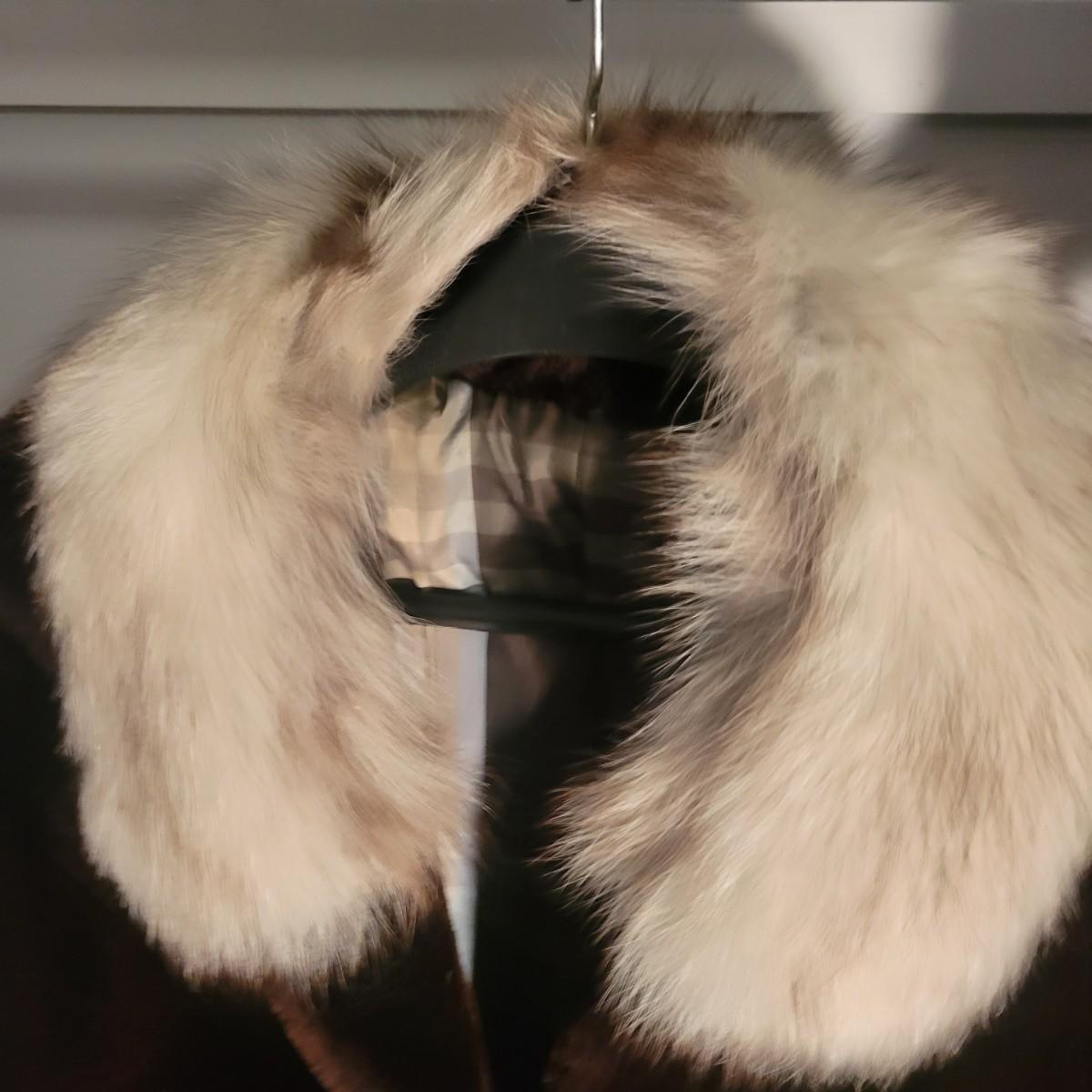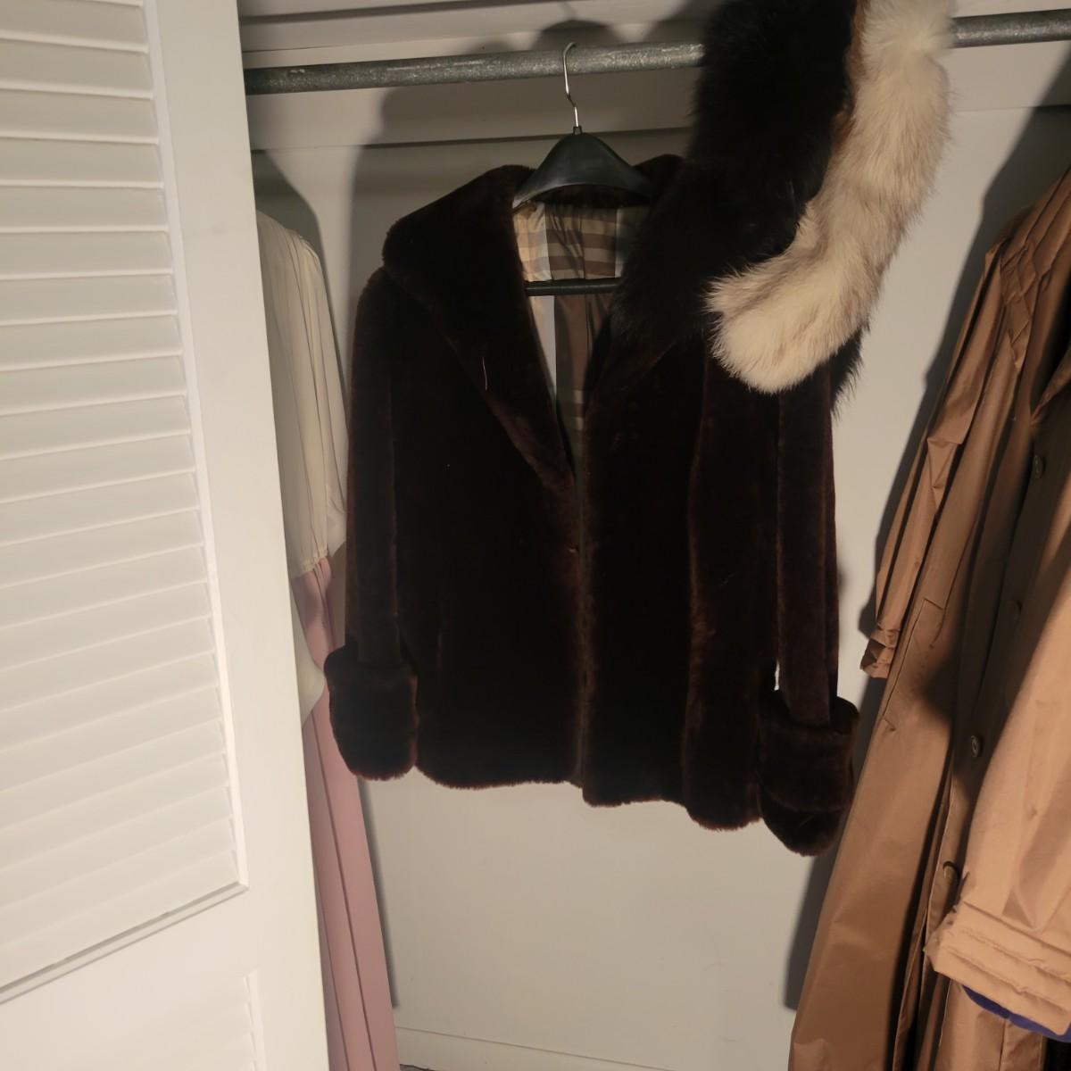 A pair of women's faux fur coats in excellent condition. Also included is three real fur neck wraps. Neither coat has tags or sizes. White coat measures 20" at the shoulder and is 50" in length. Brown jacket measures 19" at the shoulders and 28" in length. Shipping available