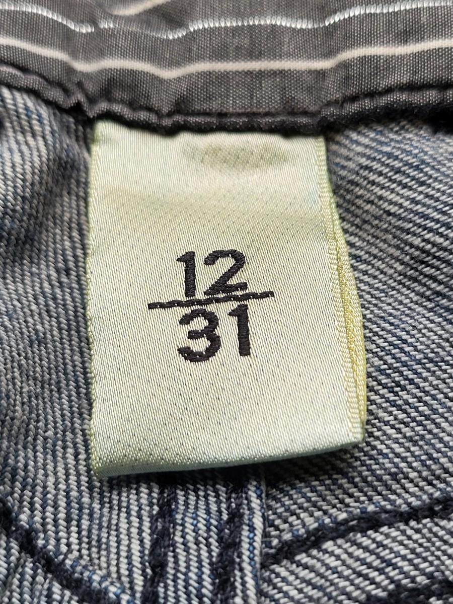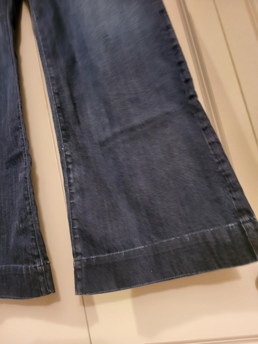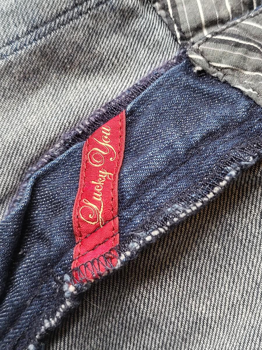 The Lucky Brand Dungarees Co, Women's size 12. Waist 31". Inseam 32" blue jeans. Bottom flair is 11.25" wide. Excellent condition.