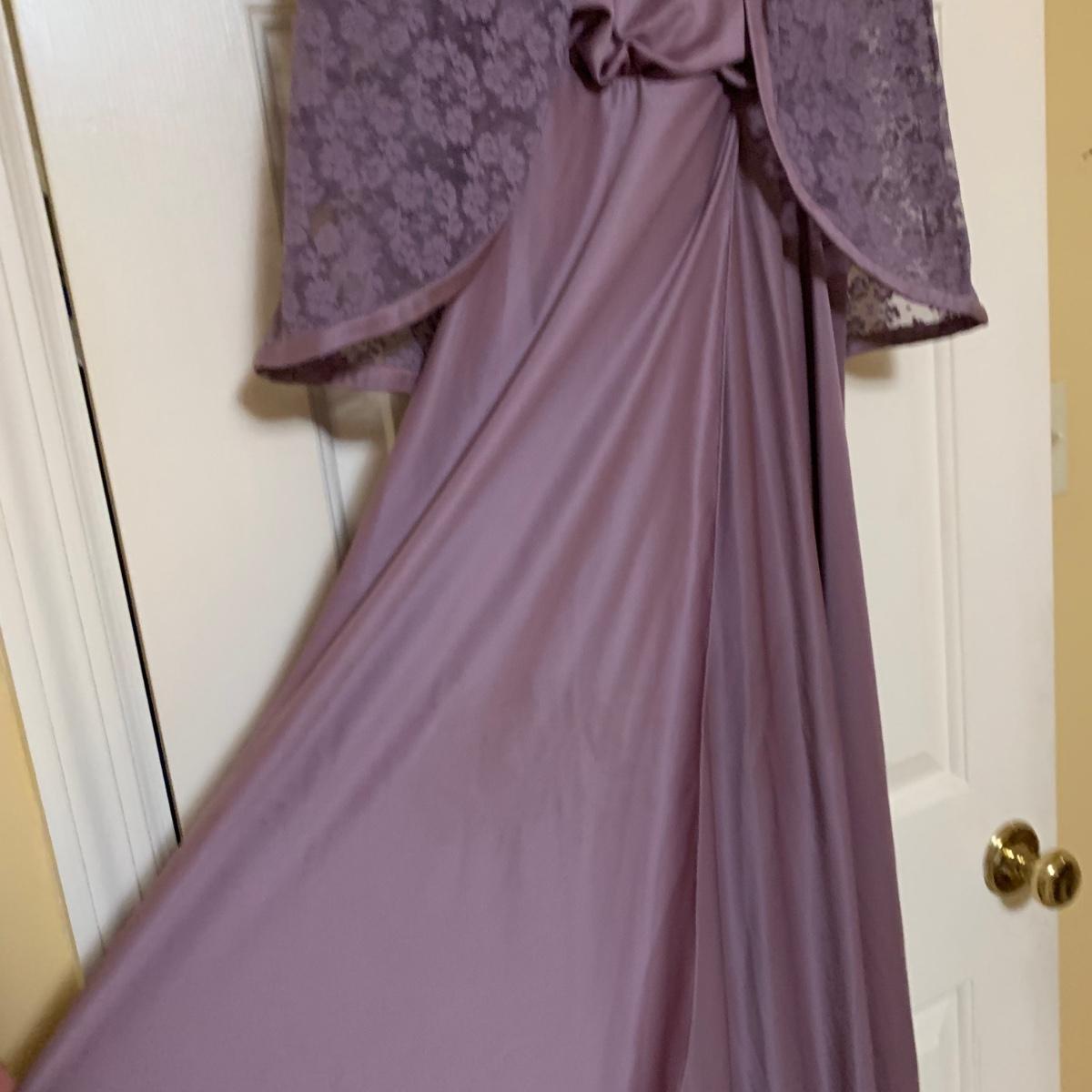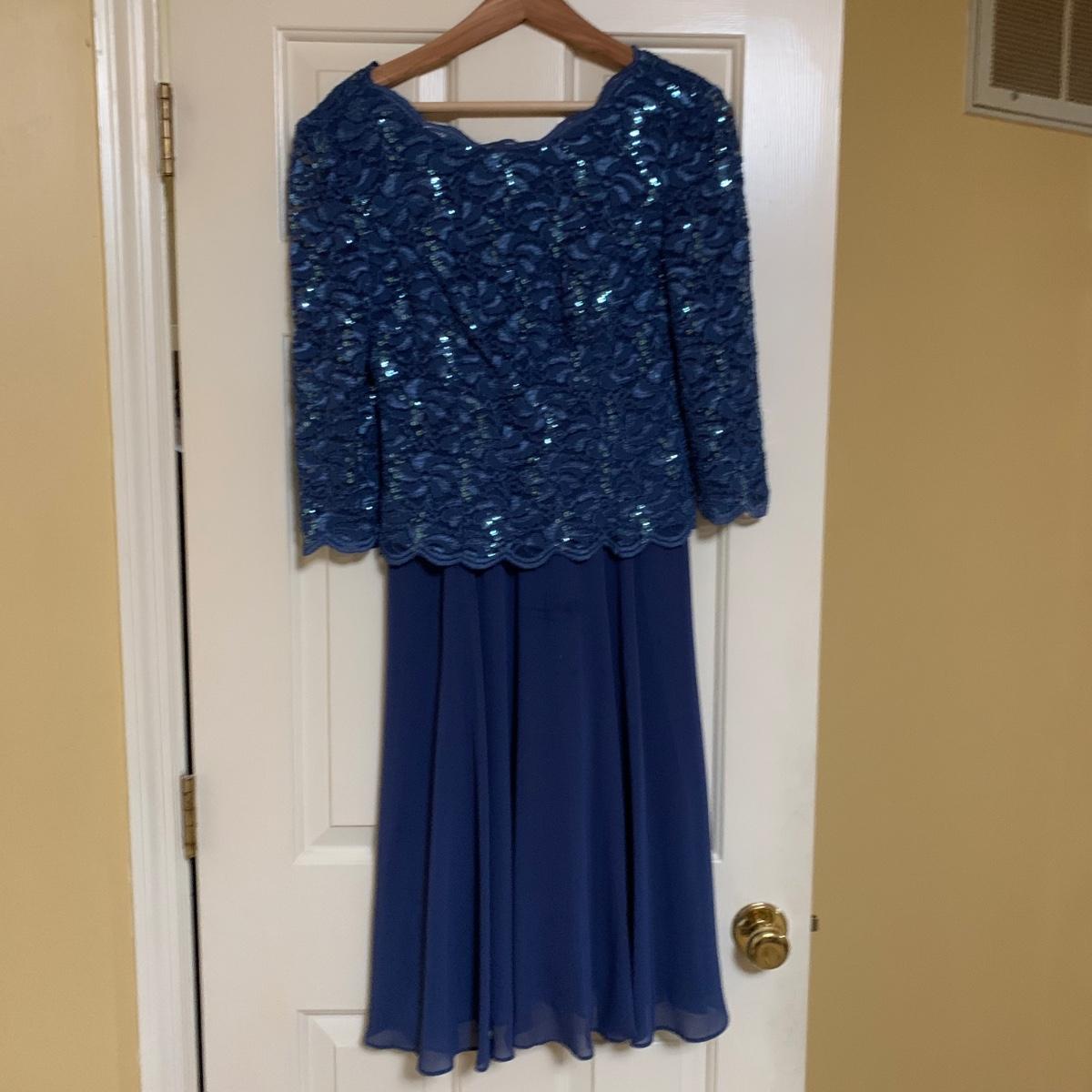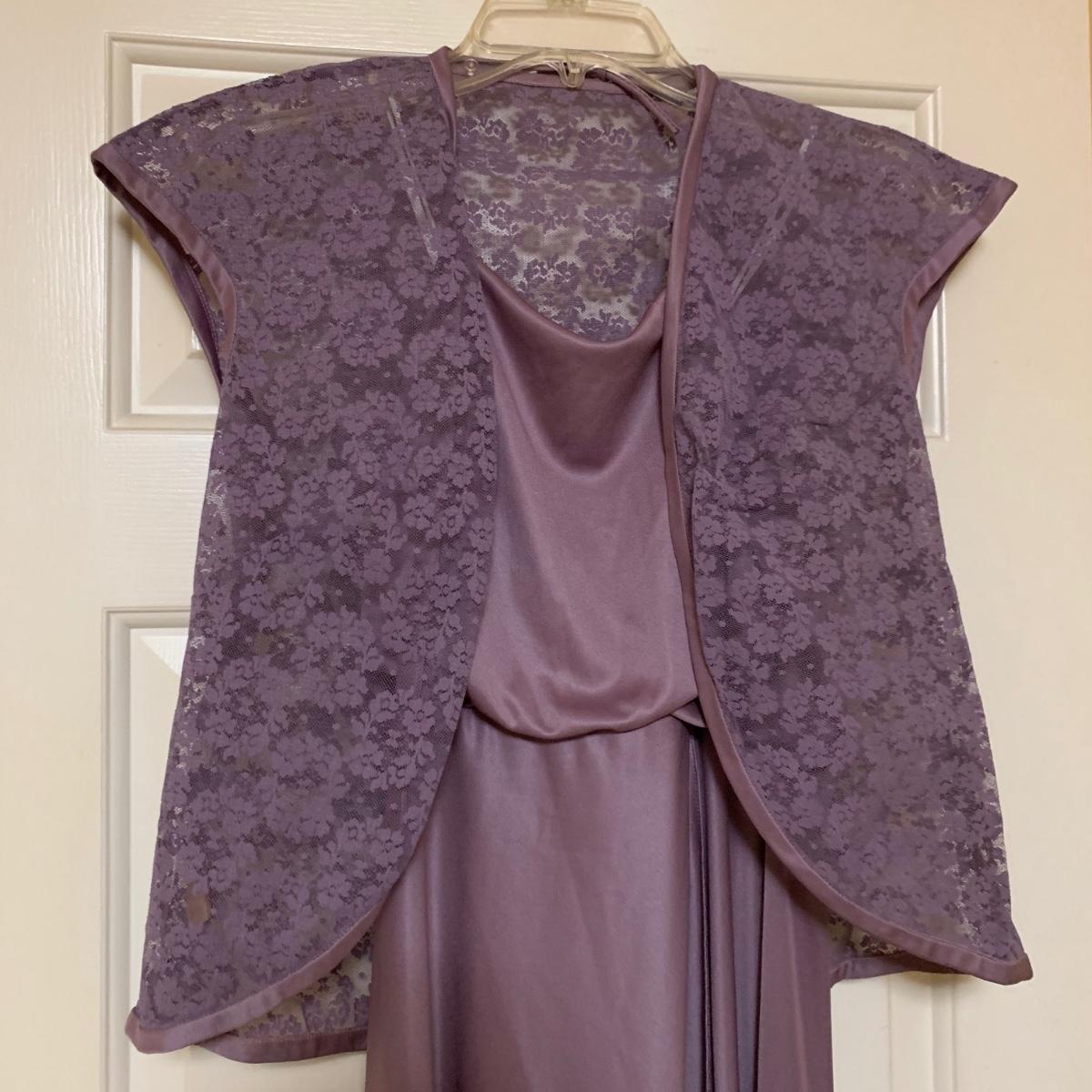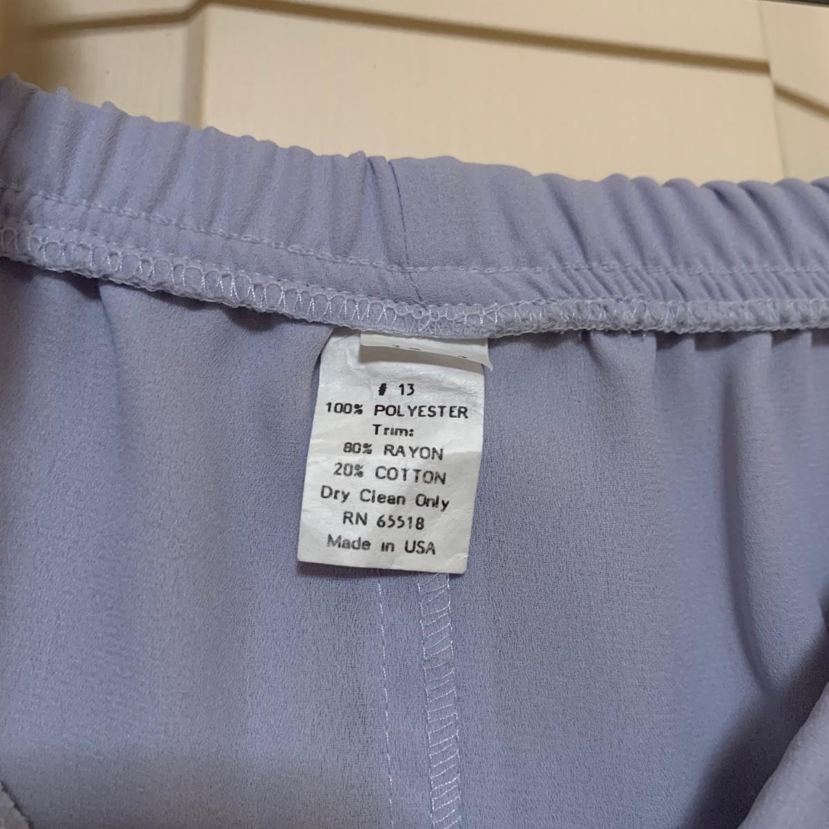 13 outfits plus one sparkly jacket. Sizes range from 10-14, mostly petite. There are two elegant dresses, six jacket with dress or skirt sets, and three jacket with pants sets. Brands include Talbots, Patra, Danny & Nicole, Karin Stevens, Evan-Picone, & more. The long purple dress needs some repairs. Any other blemishes are noted in the pictures. Wood hangers are not included.