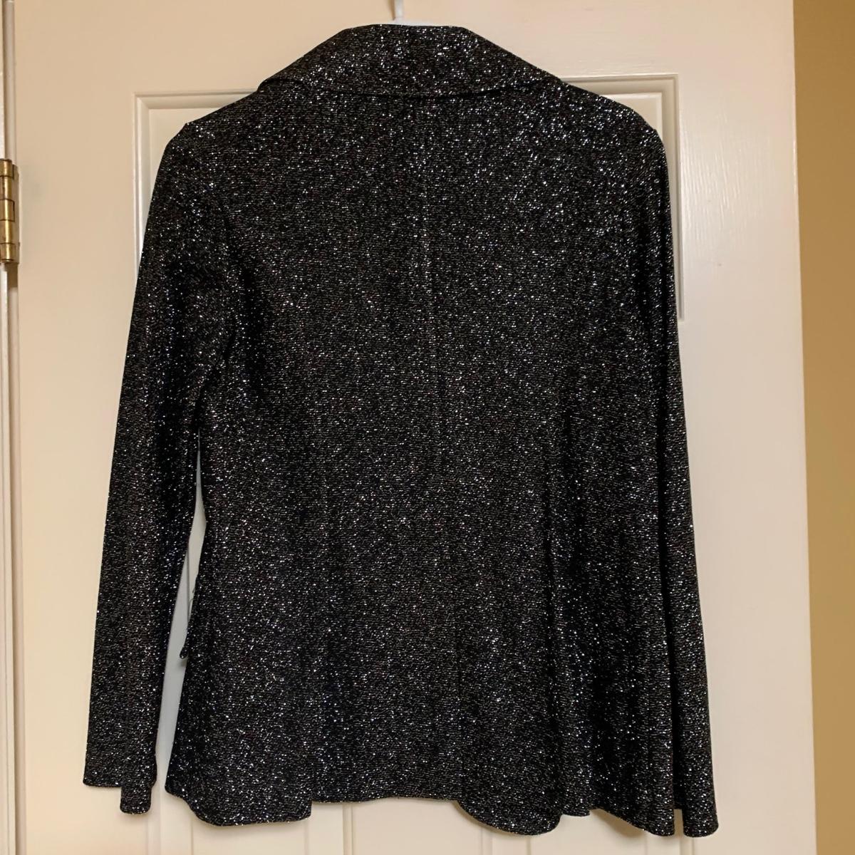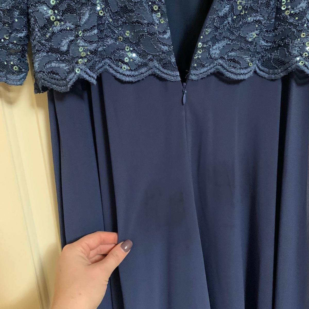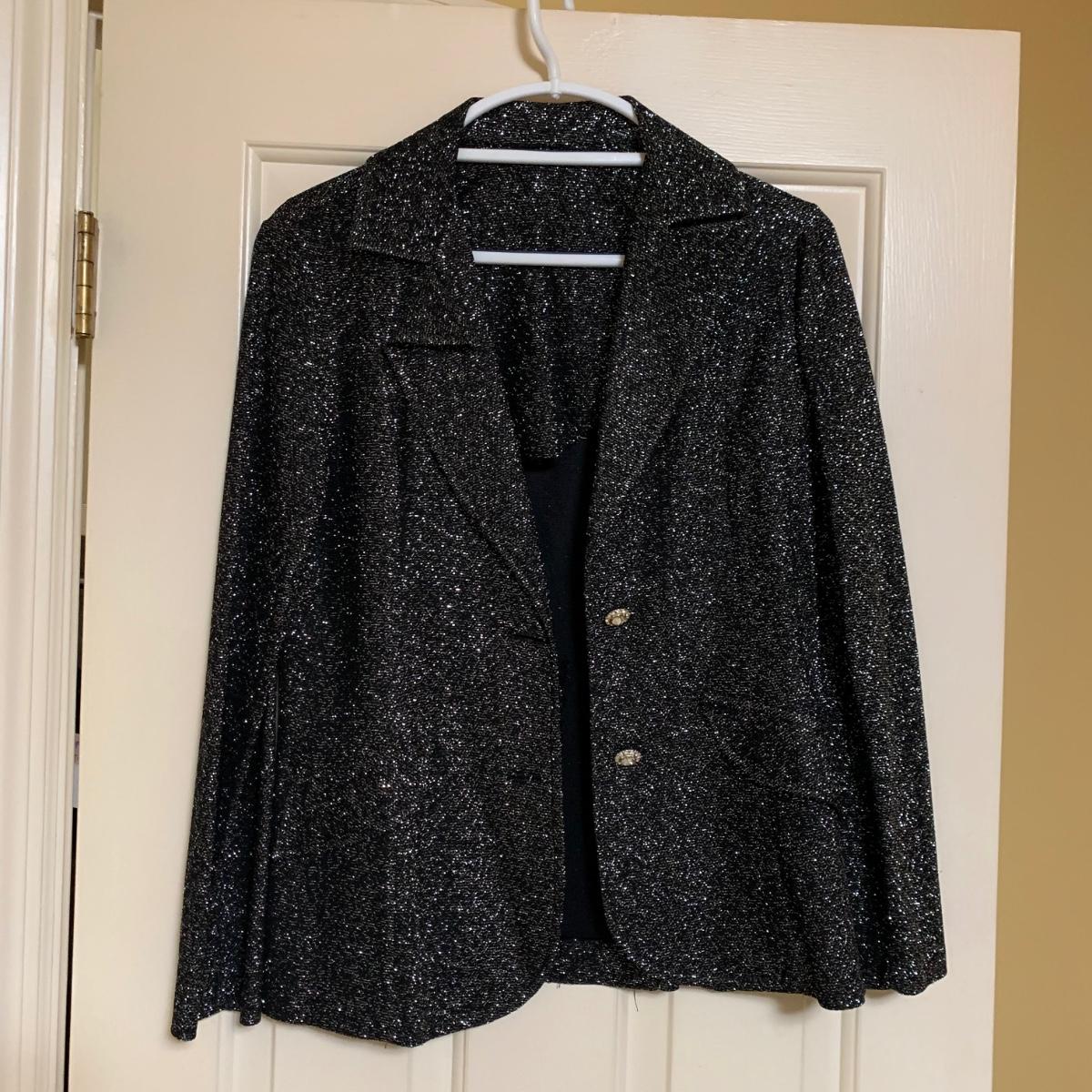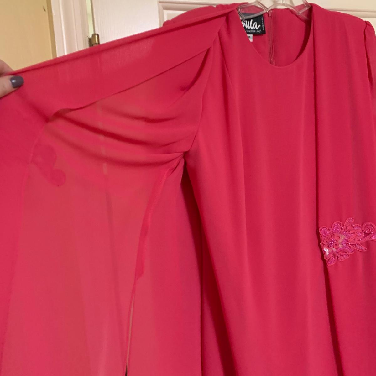 13 outfits plus one sparkly jacket. Sizes range from 10-14, mostly petite. There are two elegant dresses, six jacket with dress or skirt sets, and three jacket with pants sets. Brands include Talbots, Patra, Danny & Nicole, Karin Stevens, Evan-Picone, & more. The long purple dress needs some repairs. Any other blemishes are noted in the pictures. Wood hangers are not included.