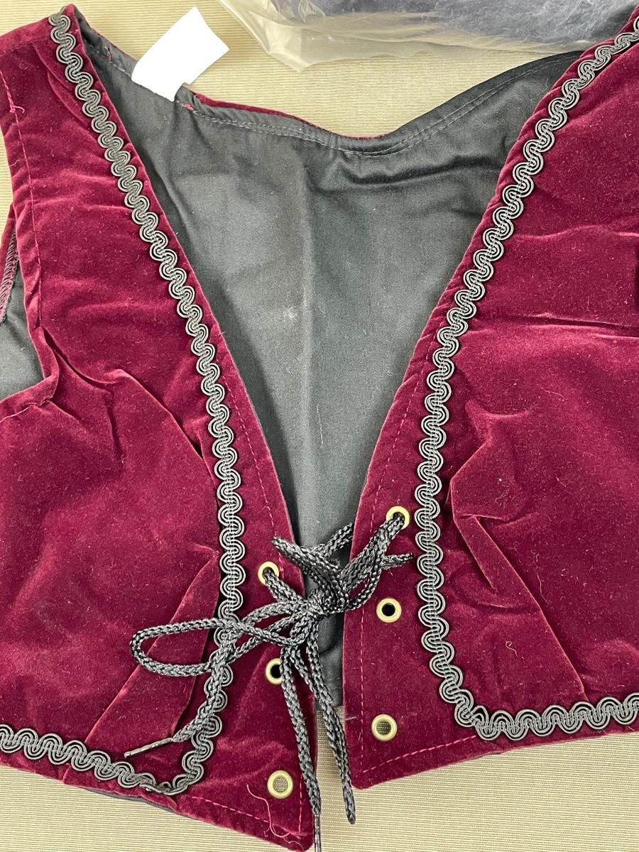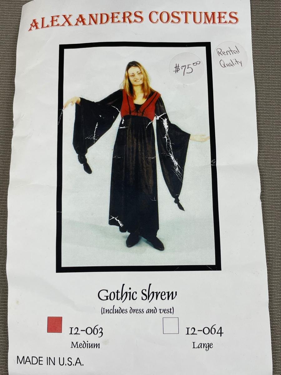 Quality fabric. Dress will fit up to size 18W, corset is size medium. New in package. Came from storage unit and may need to be aired out.