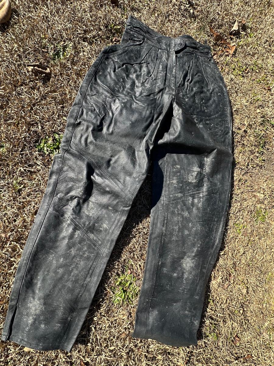 WOMEN'S HIGH WAISTED LEATHER PANTS, STYLE WORKS, AS PICTURED NEEDS Cleaning