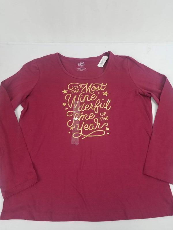 Women's Holiday Shirt, Long Sleeve Size Large, Maroon - New
