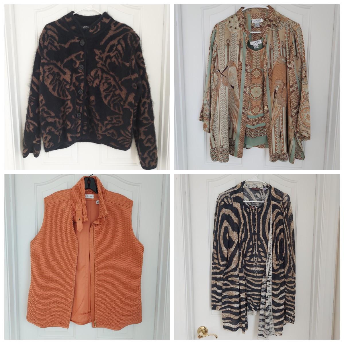 Lot includes 15+ pieces of Women's clothing in dressier styles. Jackets and sweaters in various sizes. Please see photos for details. Shipping available