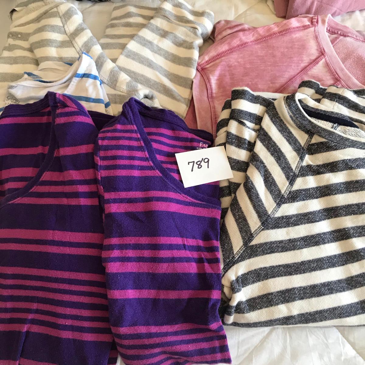 On clothing: New, some with tags! Please see photos for quantity, colors, size, and condition. Please, also most items are Large or XL in women's clothing.
