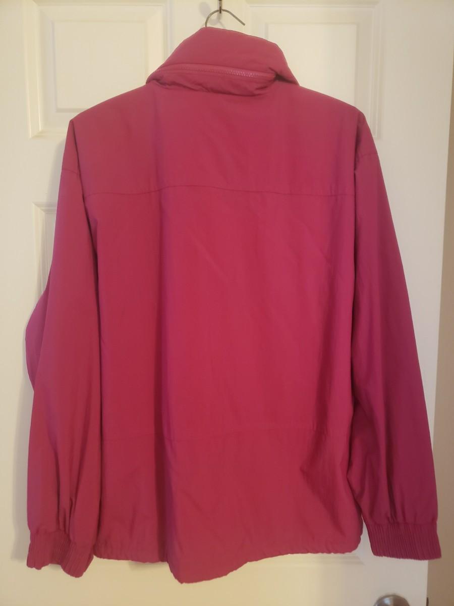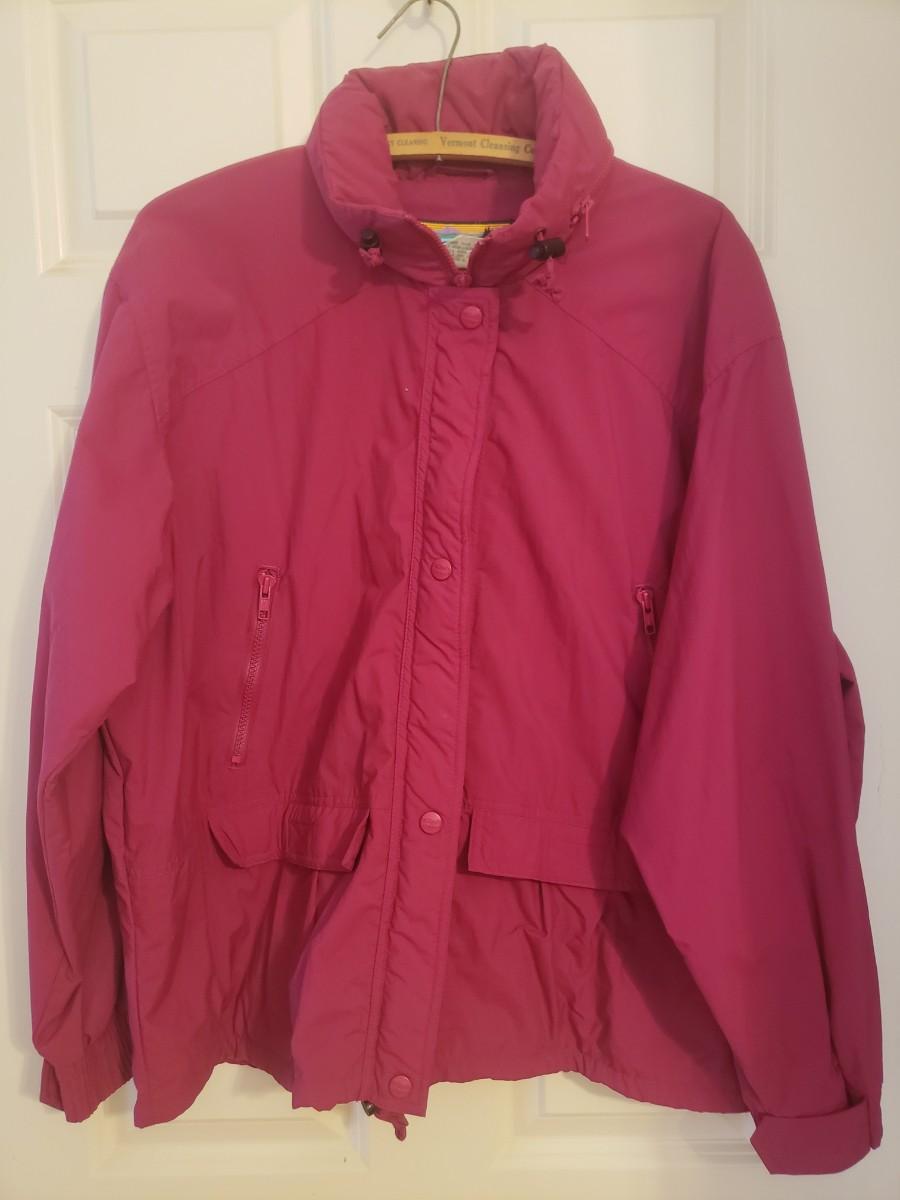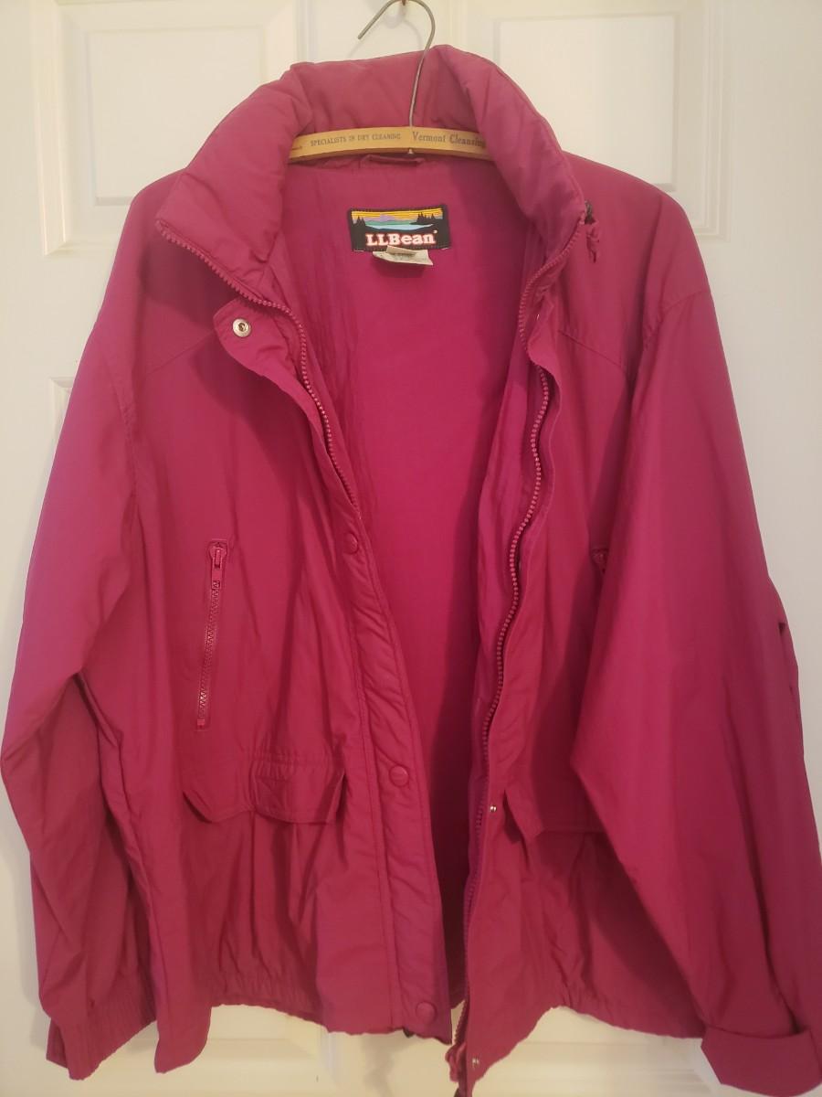 L L Bean Women's jacket. Dark pink/magenta color with front zippered & snap closure. Size XL.