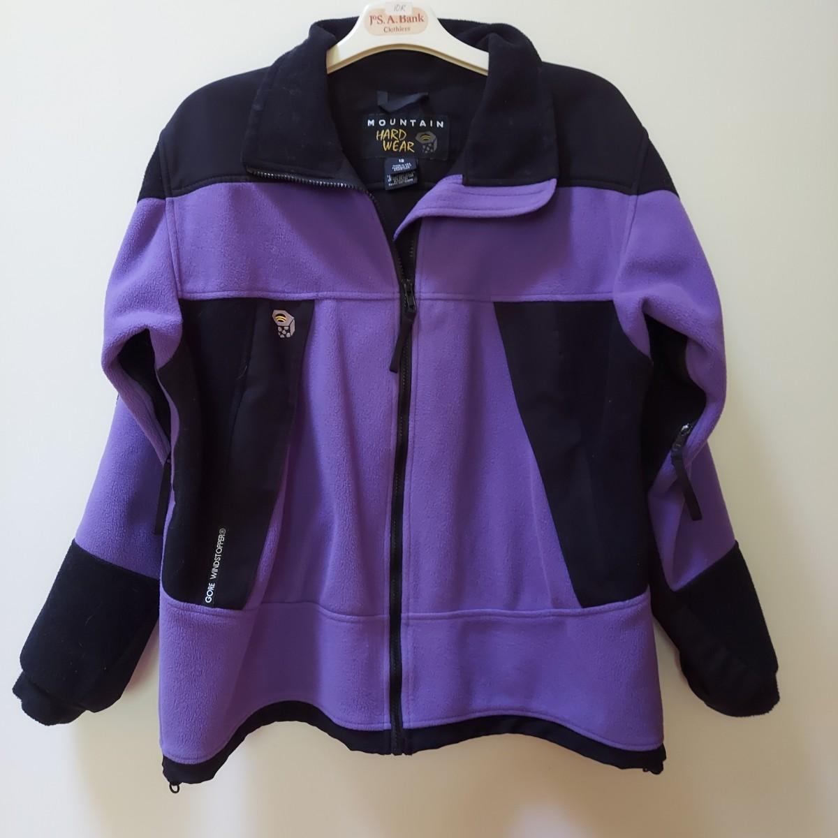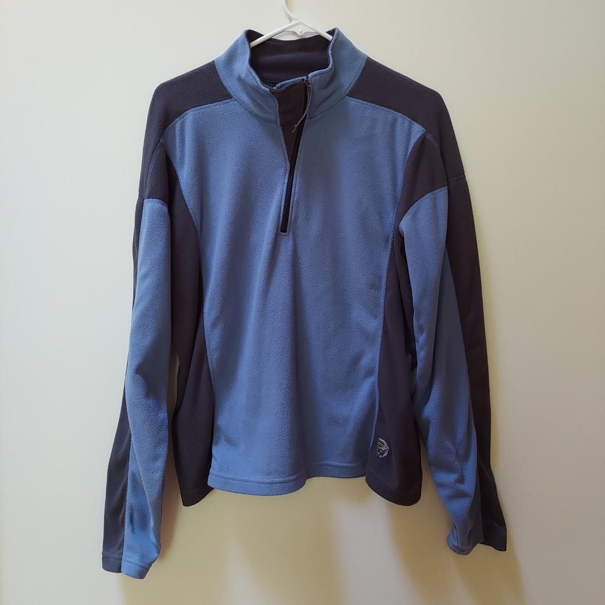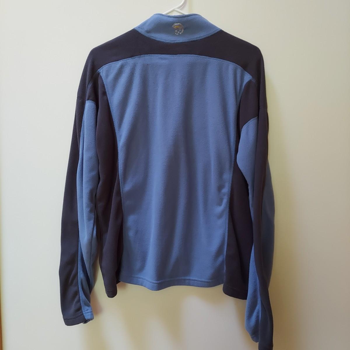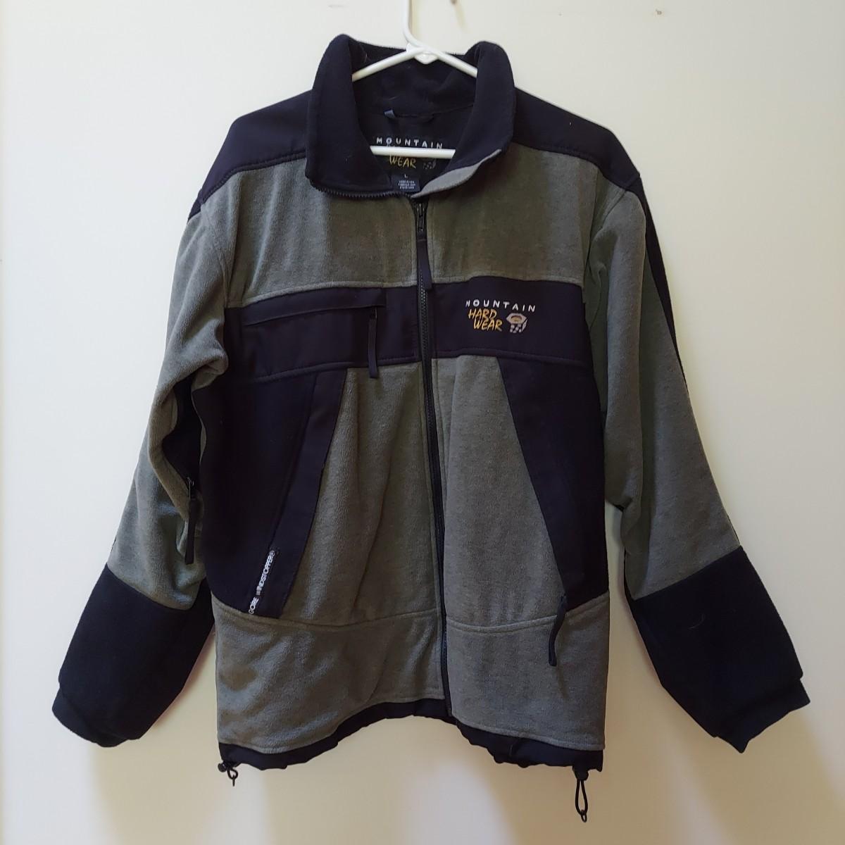 Four pieces of Mountain Hardware clothing in size Large, with one item being size M. Lot includes two fleece jackets, a fleece vest and a fleece pullover. Some surface debris like cat hair on some items. Please see photos for details. Shipping available