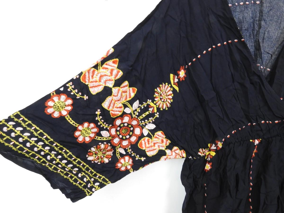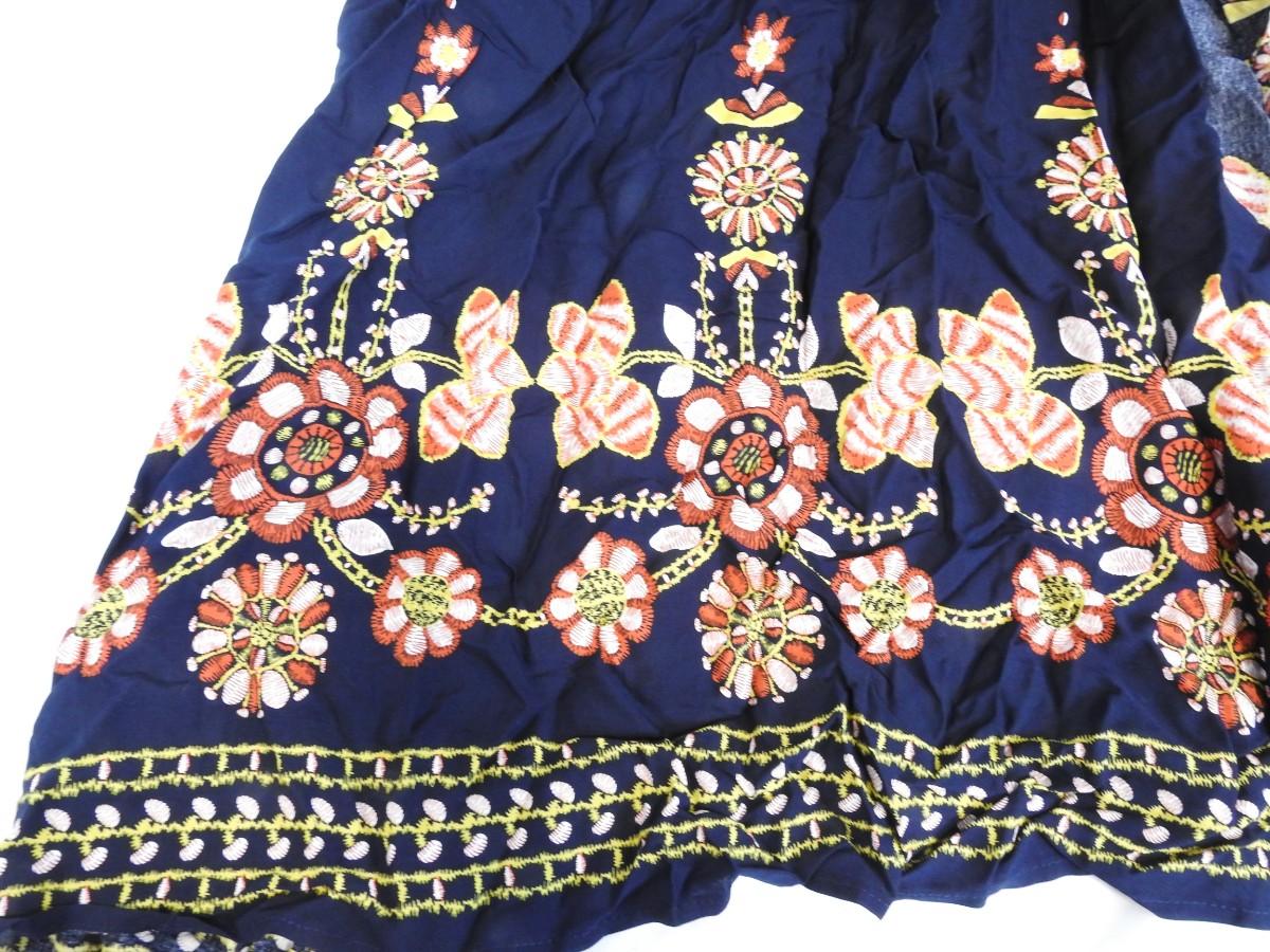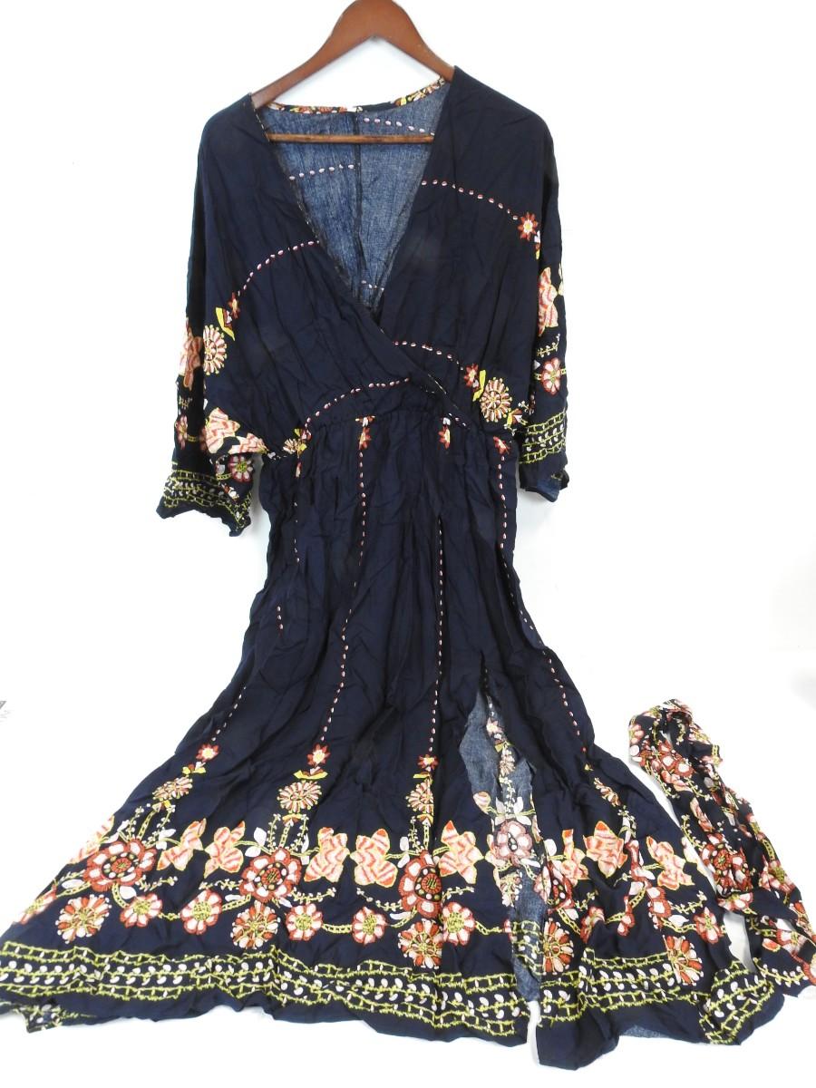 Women's Navy Blue Dress with 80" Tie-On Belt. Embroidery Print, Marked 5XL, Looks Smaller. Waist 32"-52" - New
