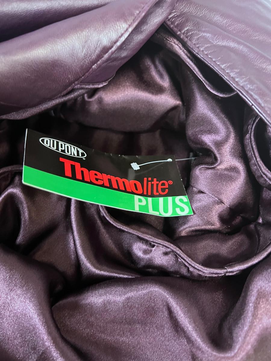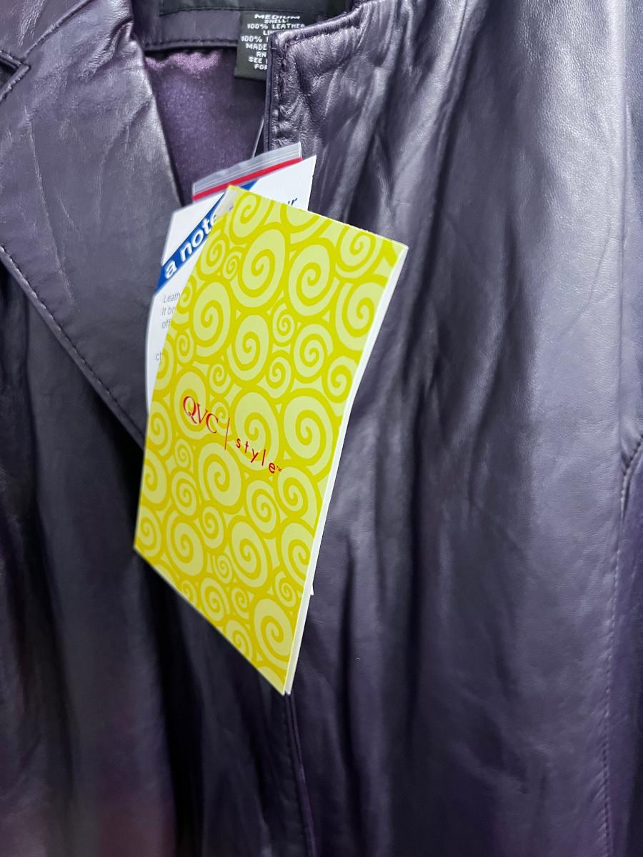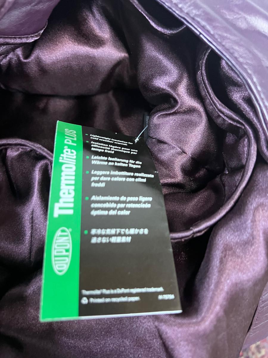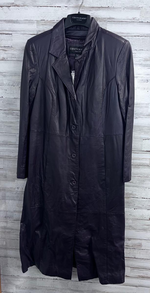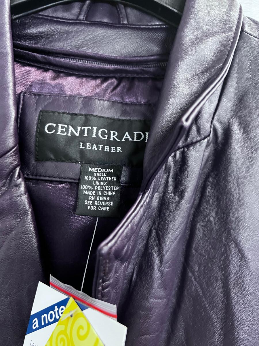 NICE. Never Worn. MEDIUM Size. NEW WITH TAG! Has a zip out liner. Dark Purple. Real Leather made by Centigrade.