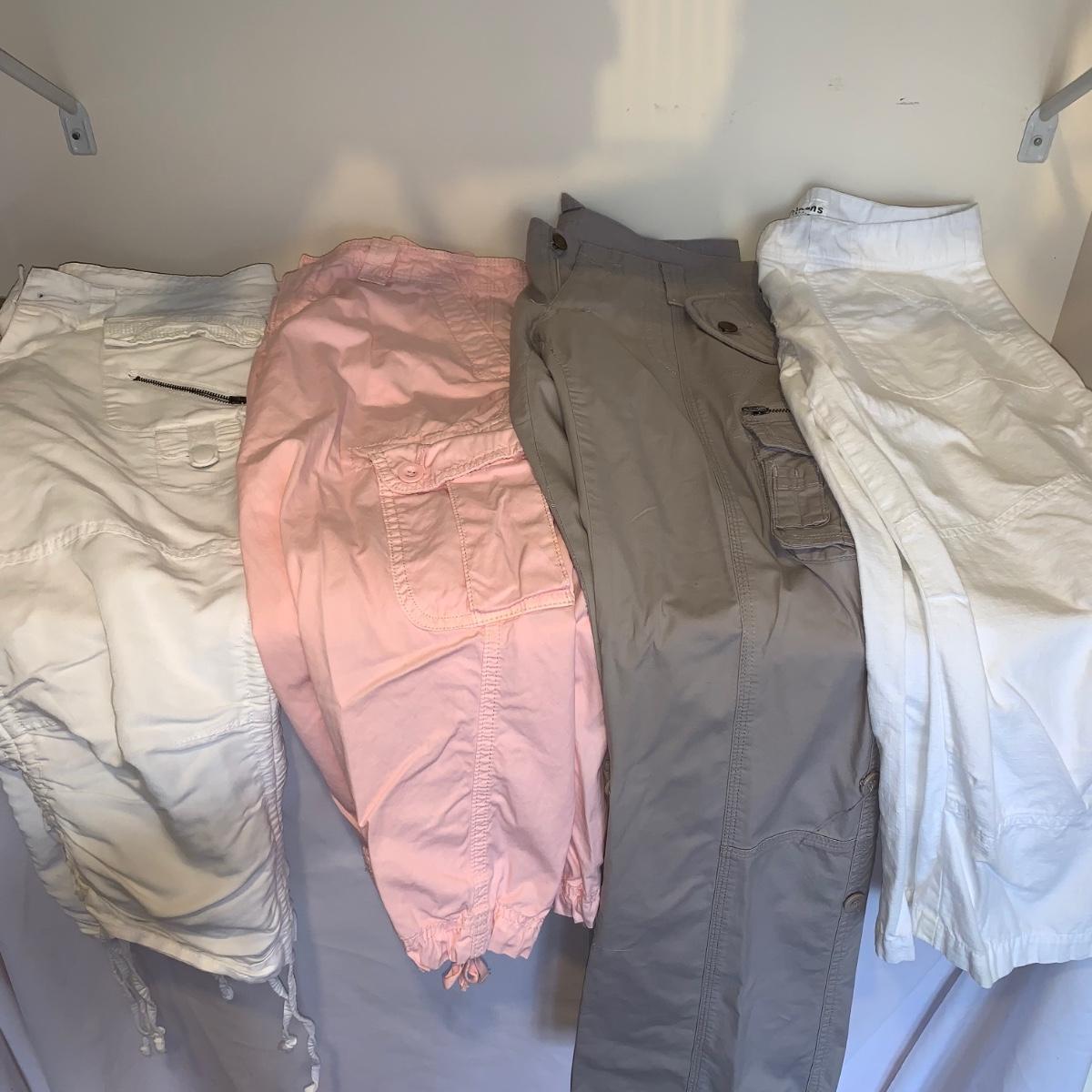 This lot includes a wide variety of women’s jeans, cargo pants, slacks, and more. Included brands is Lucky Brand, London Jeans, Jones New York, Banana Republic, and more. Sizes range from 4-12. Shipping available.
