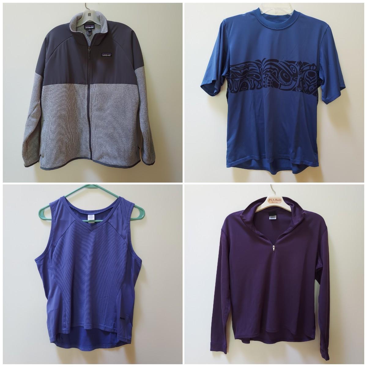 Lot includes 10+ pieces of Patagonia clothing in various Women's sizes for layering. Blue Hooded sweater has some pilling on the front. Please see photos for sizes and details. Shipping available