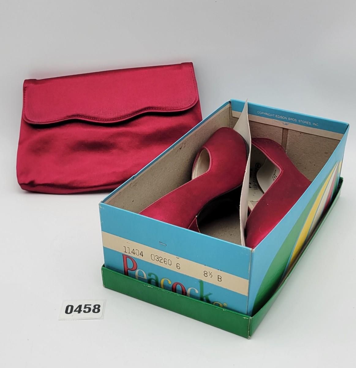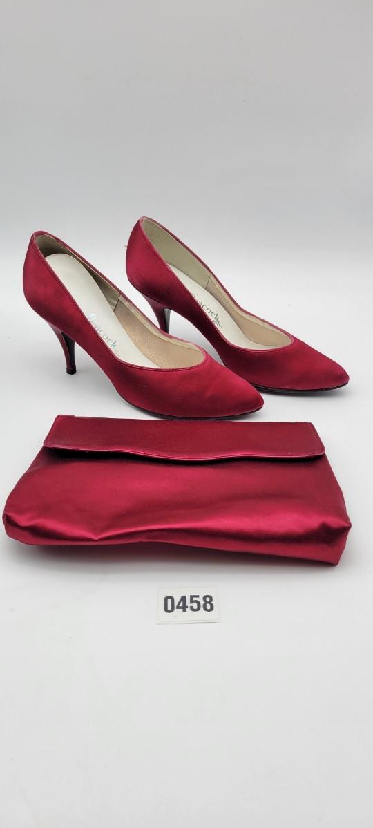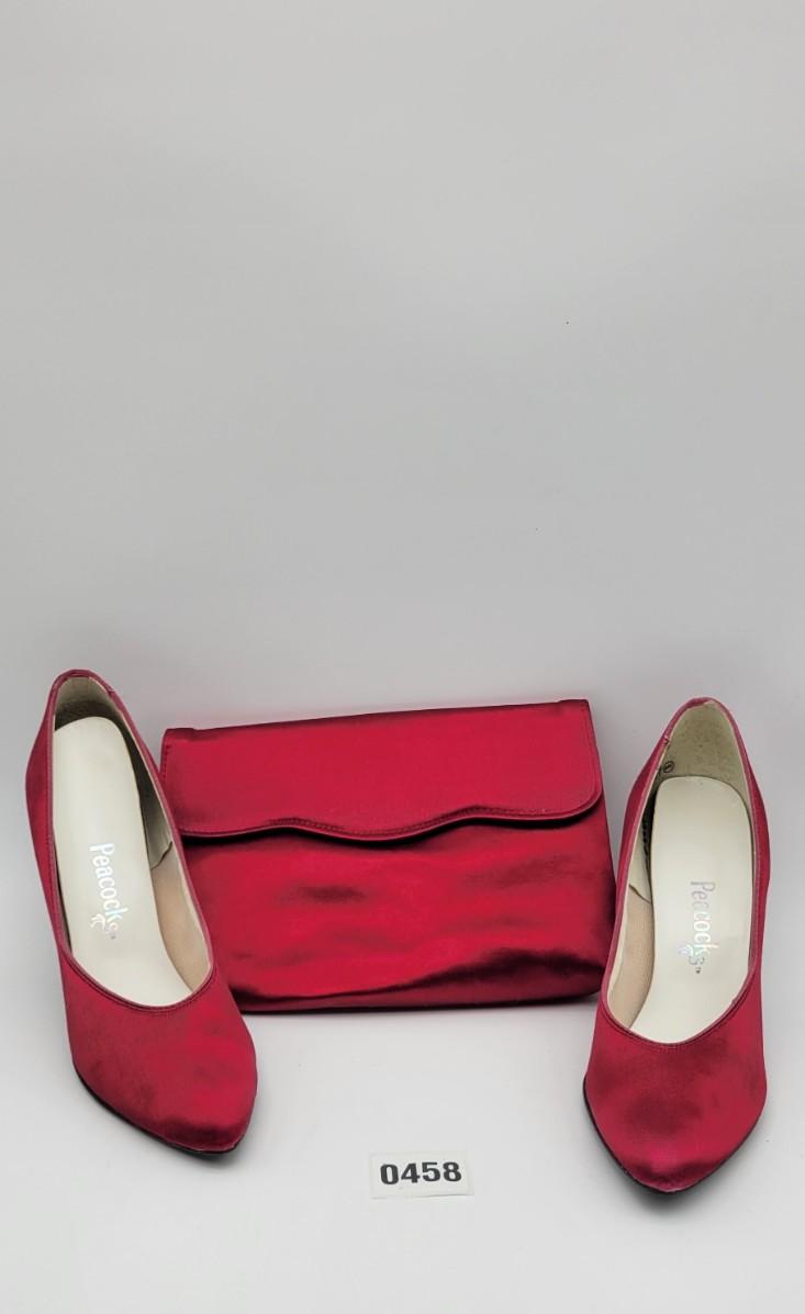 Nice with little wear shown on soles. These are paired with a red clutch to match.