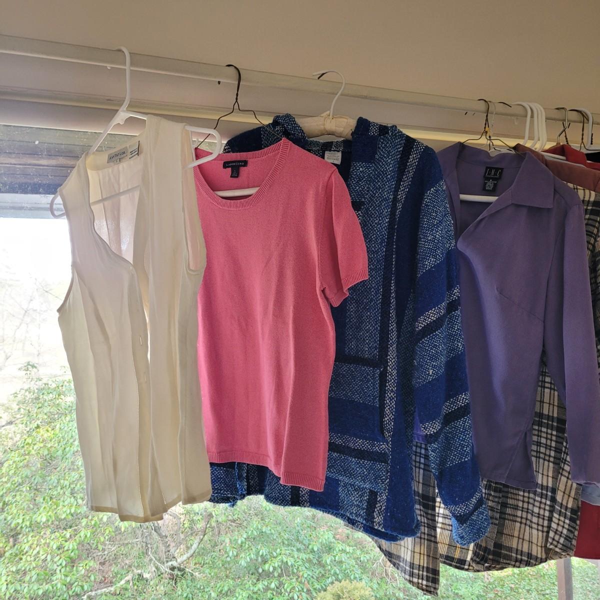This lot of women’s petite small and medium coats, jackets and tops includes Orvis, J.Jill, Nordica, J McLaughlin, Karen Klein and more. Shipping available.