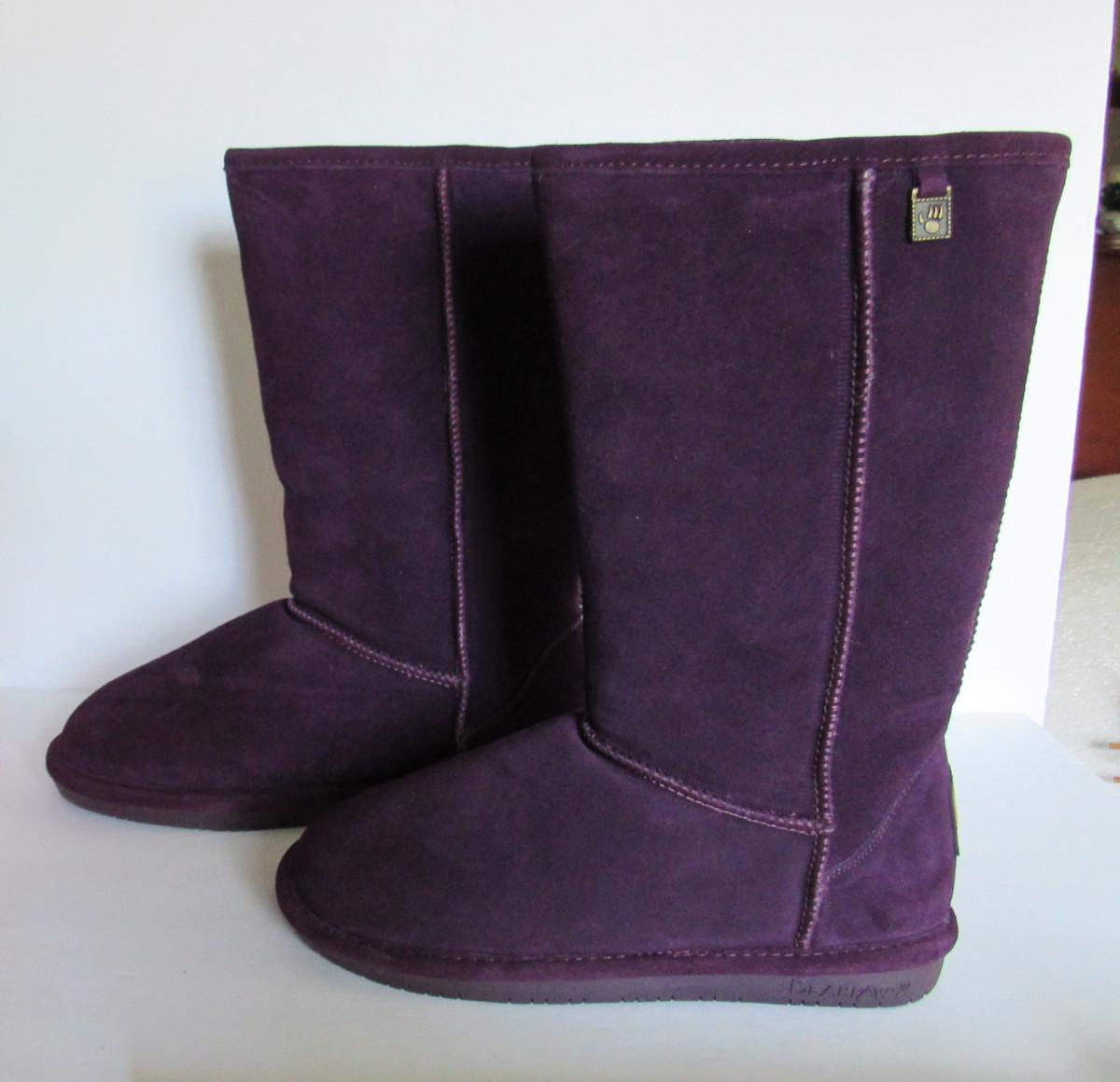 Women's Plum Colored Suede Boots, Bearpaw, 9, Unused