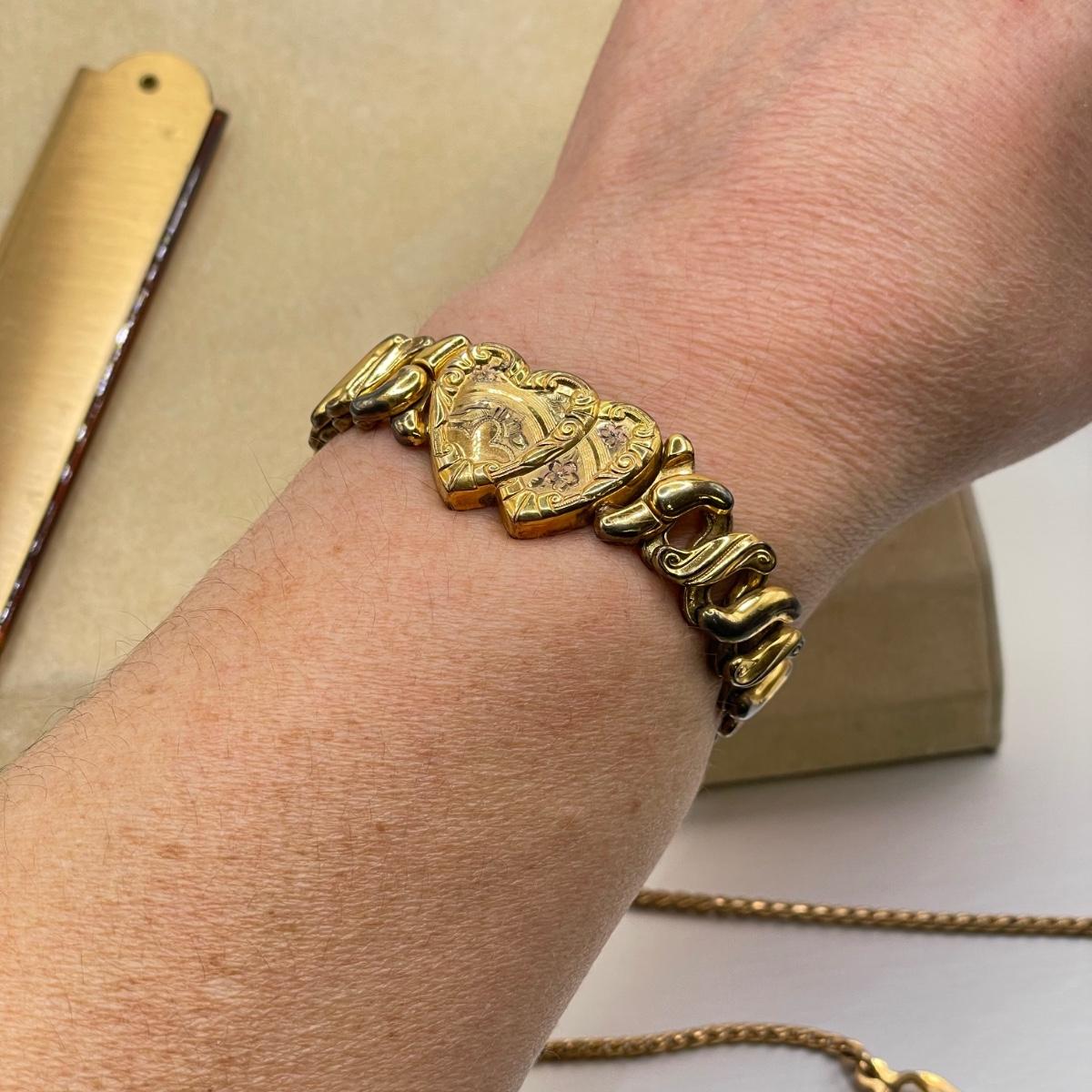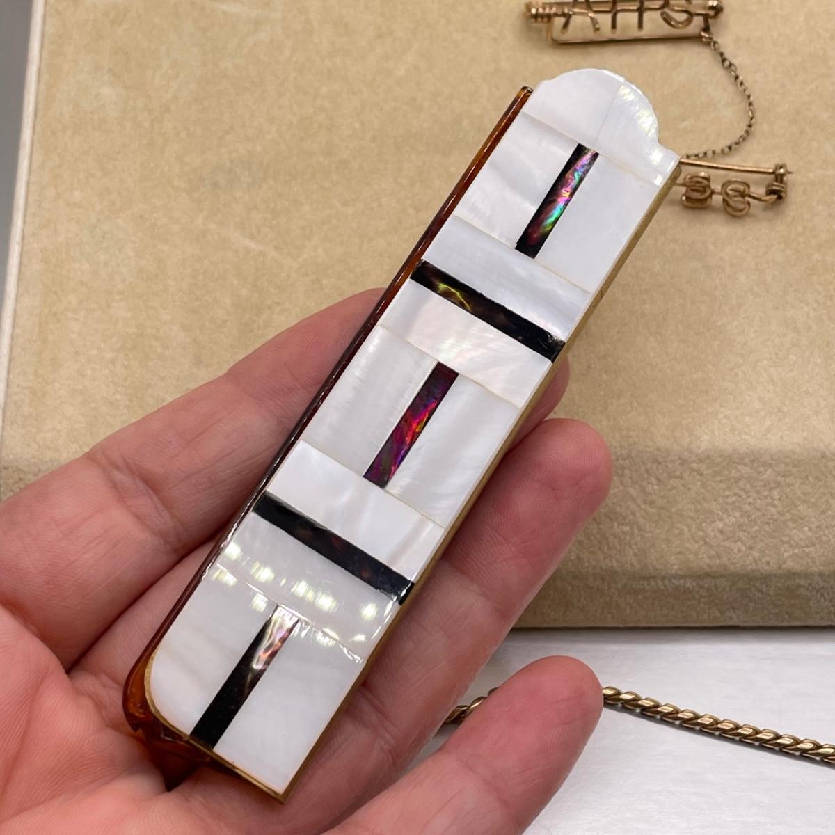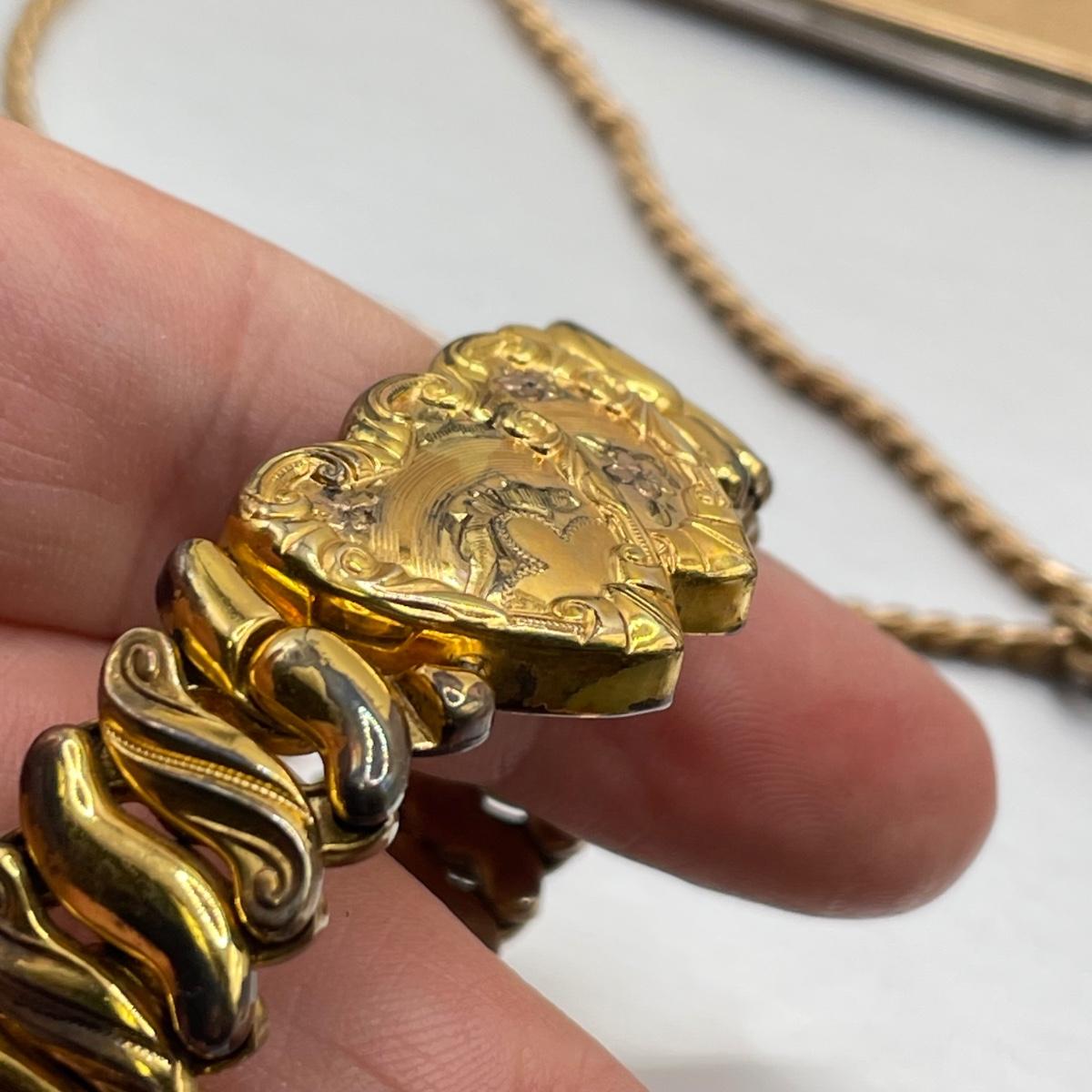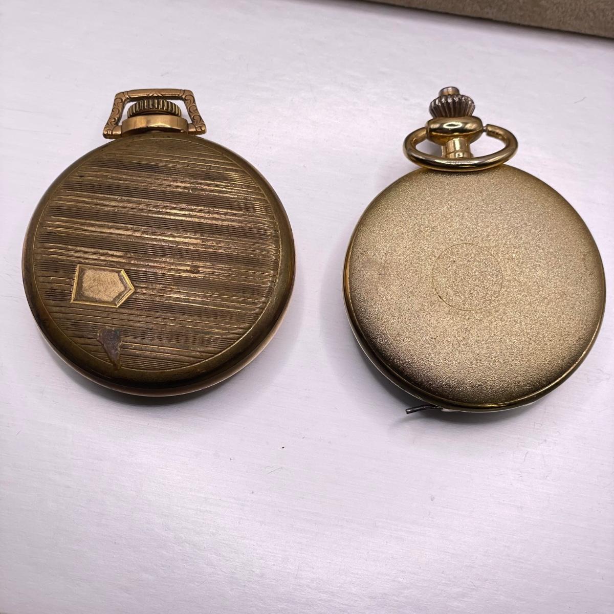 A fun selection for your pocket! Lot includes three pocket knives, one has an unmarked chain. The largest of the three did not immediately open, but it appears to have one blade. Lot includes a turtle-shell-like folding comb, a double pin “AHS” and “1938”, two pocket watches and an elastic metal bracelet. Some of the finish has worn away from the bracelet. The newer of the two pocket watches with the bear seems to have its hinge pulling out. Neither of the watches are currently working. See images. All sales are final. No returns or refunds. Please bid accordingly. Shipping available.