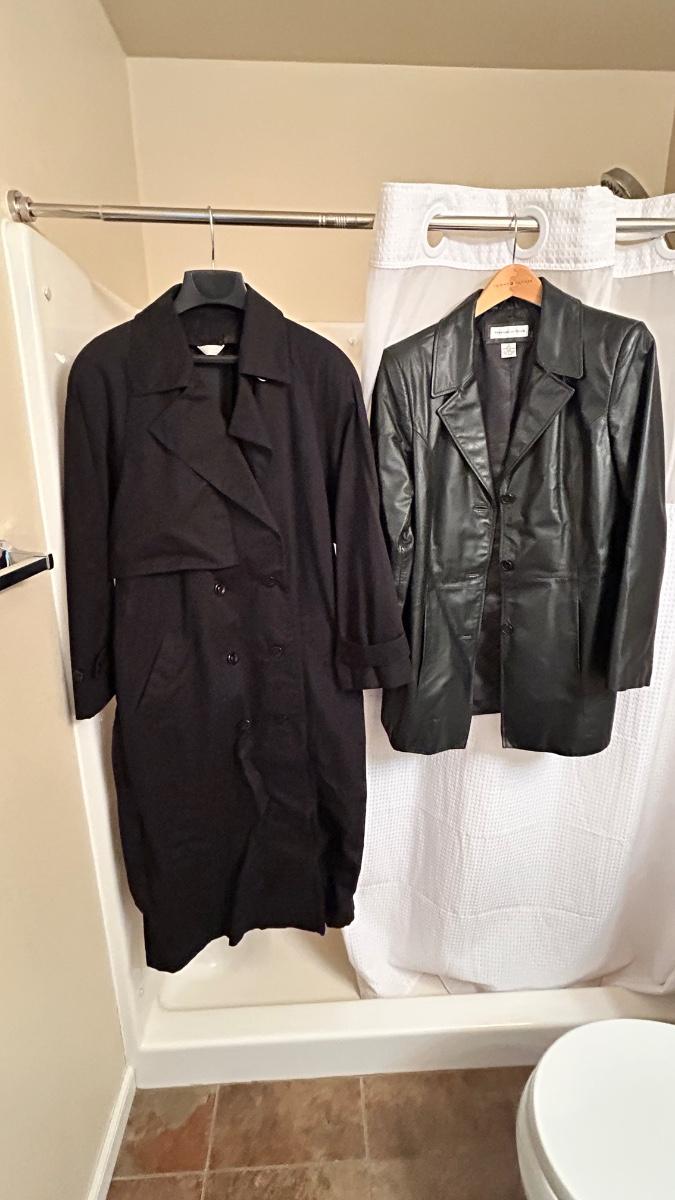 WOMENS PRESTON & YORK LEATHER BLAZER AND NEW YORK HARBOR RAIN COAT