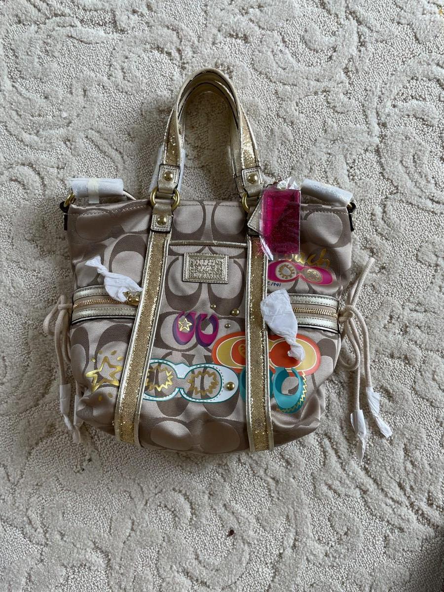Women's Purse /Coach Poppy Monogrammed Bag with Gold Glittery Handles