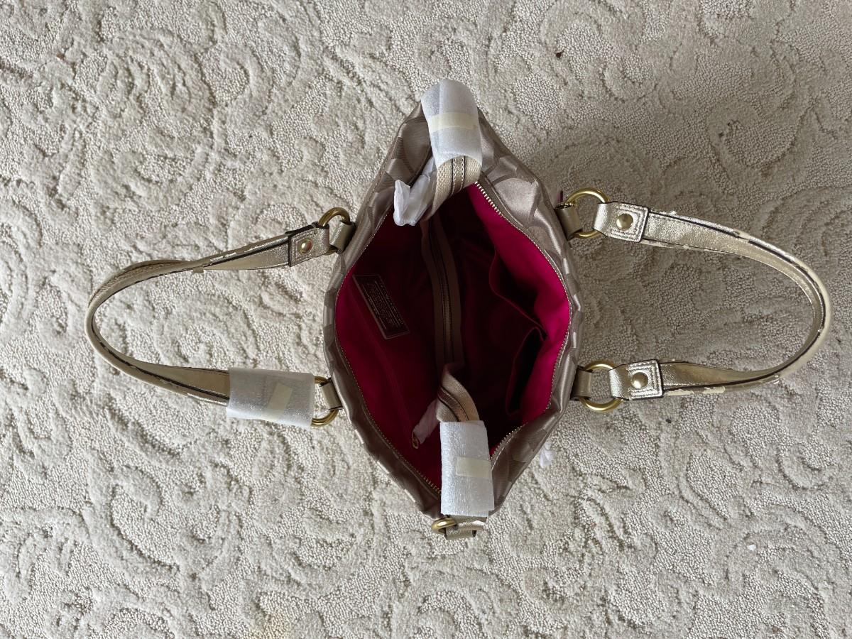 Coach Poppy Monogrammed Bag with Gold Glittery Handles