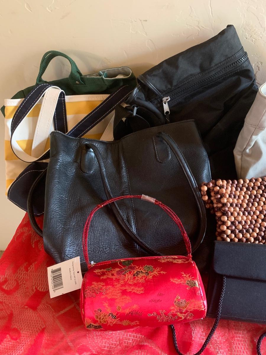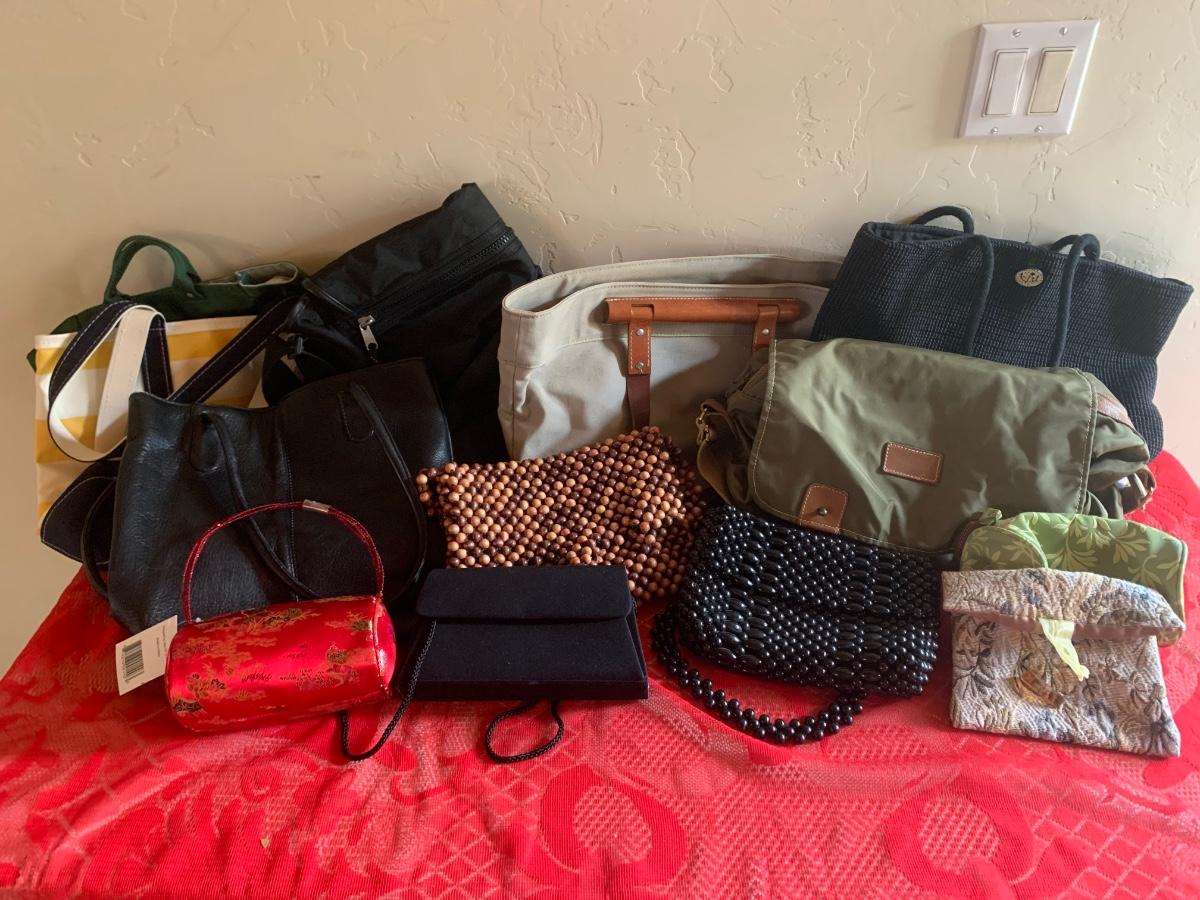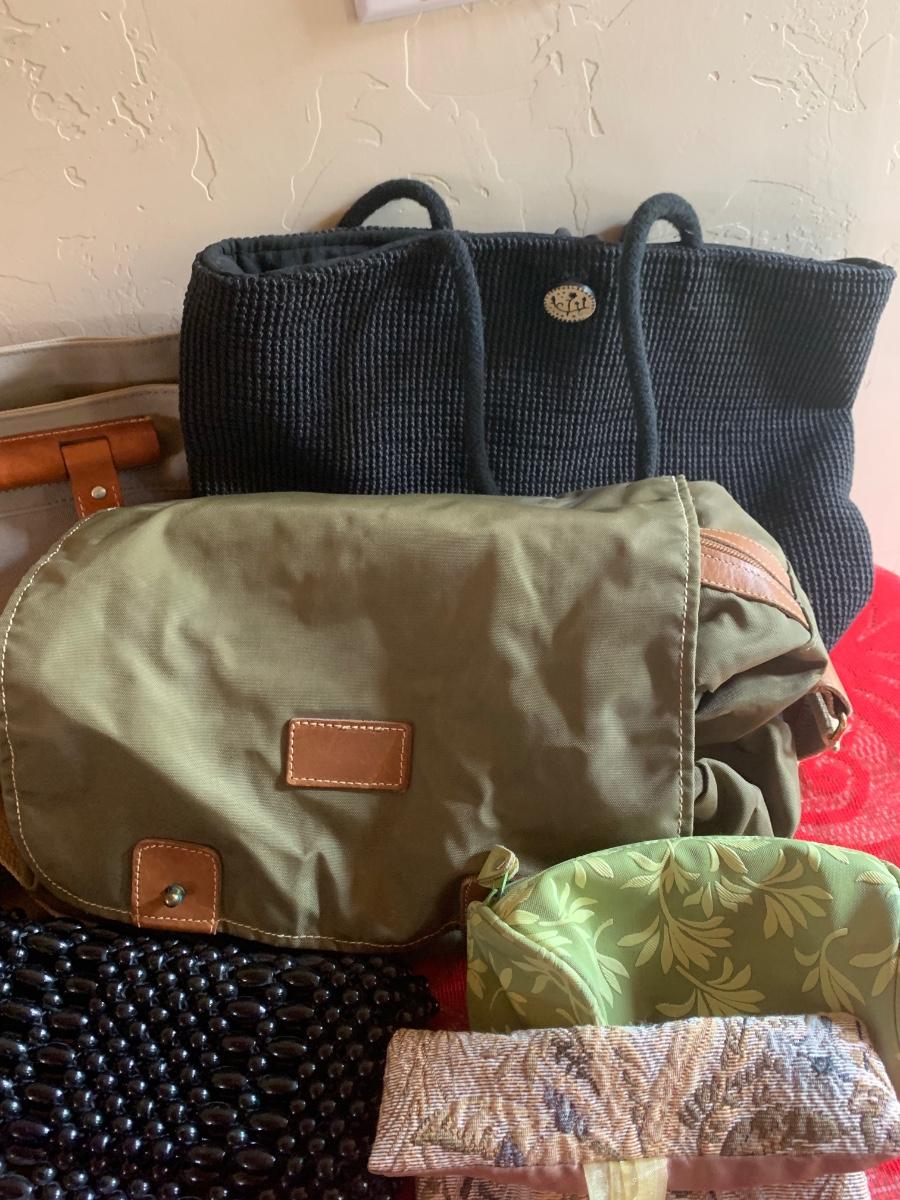 An assortment of women’s purses including brands like Gap, Banana Republic, York, “its in the bag” by Ritter, Hobo International Made in Columbia and more. All in good condition