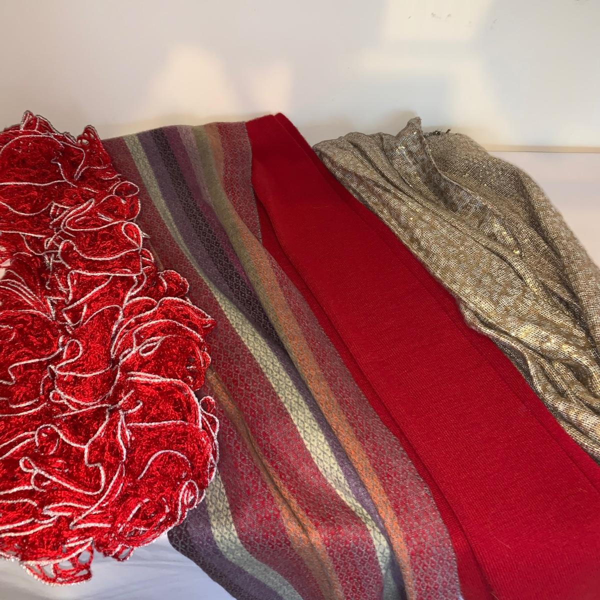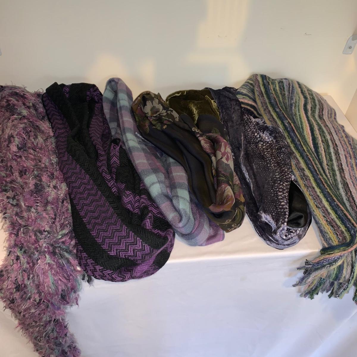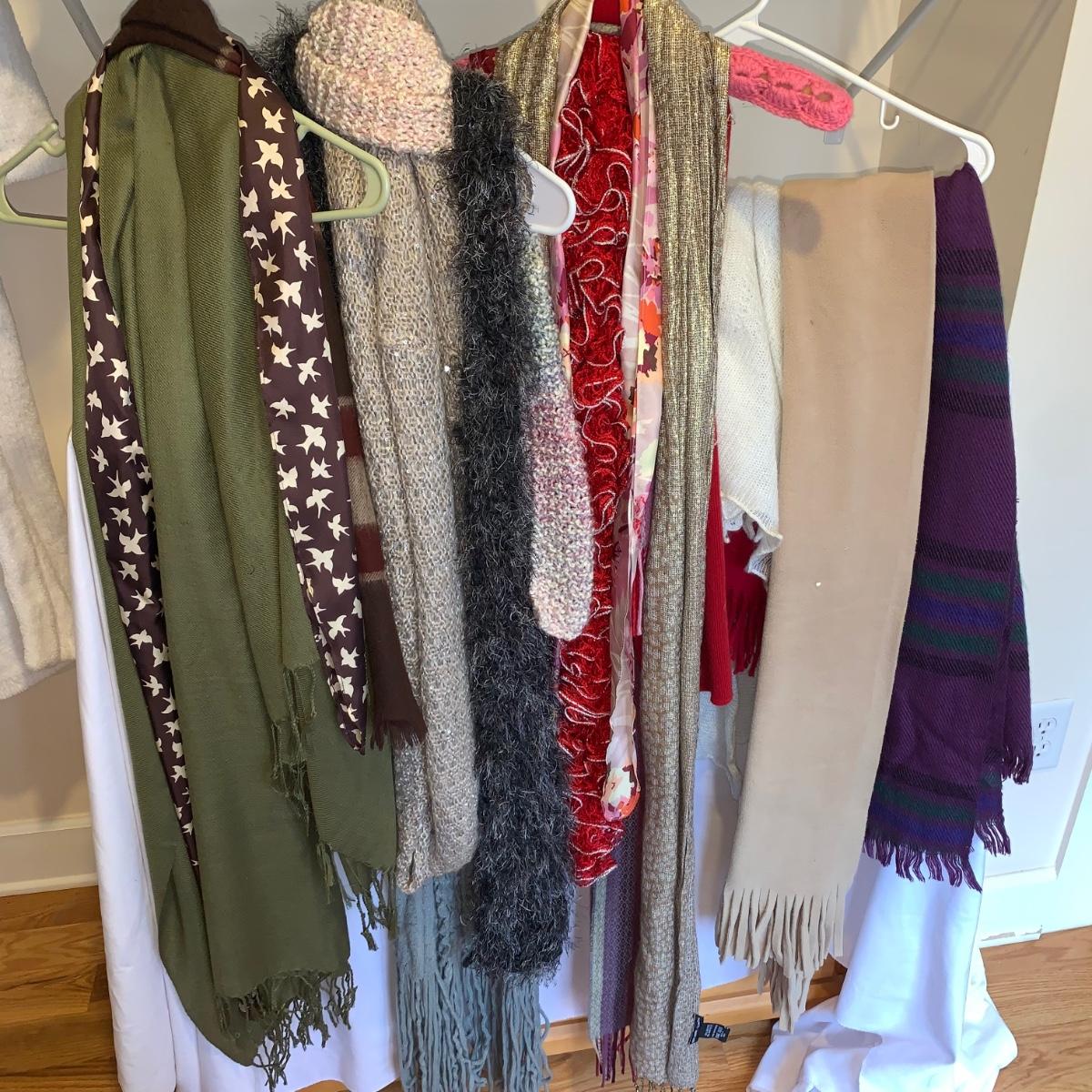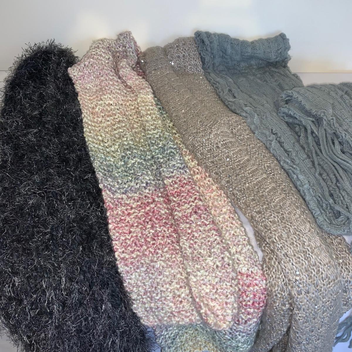 This lot includes 23 women’s scarves. The scarves include a mix of knit and wool materials. Included brands are Jessica Simpson, J Crew, Cejon, Old Navy, and more. The scarves measure about 26in x 72in. Shipping available.