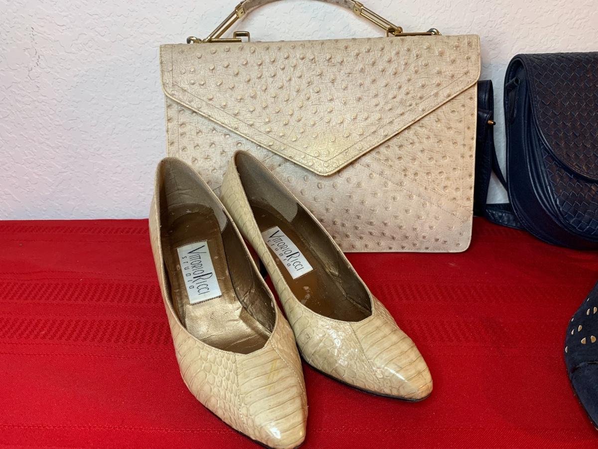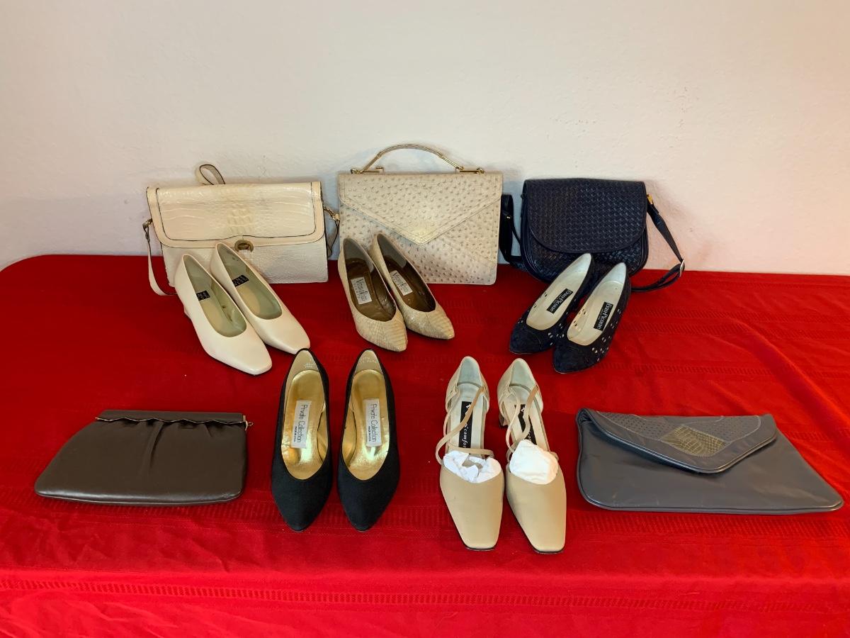 Assortment of women’s shoes and purses. Shoe brands include nine west, Vittorio Ricci, Private Collection and Evan Picone. All in good to great condition, some with normal wear. Purse brands include Saks 5th, Brio, Joanna Fashion and more! Purses range from fair to good condition.
